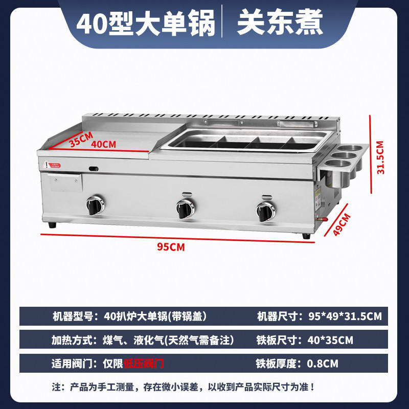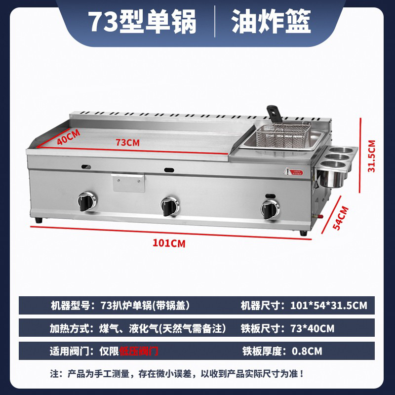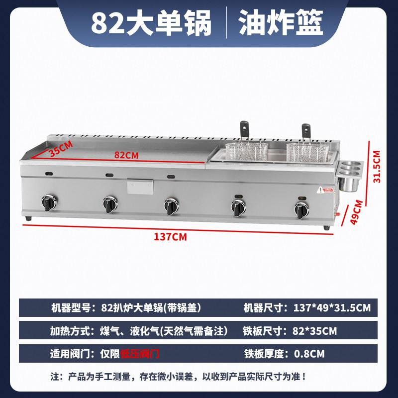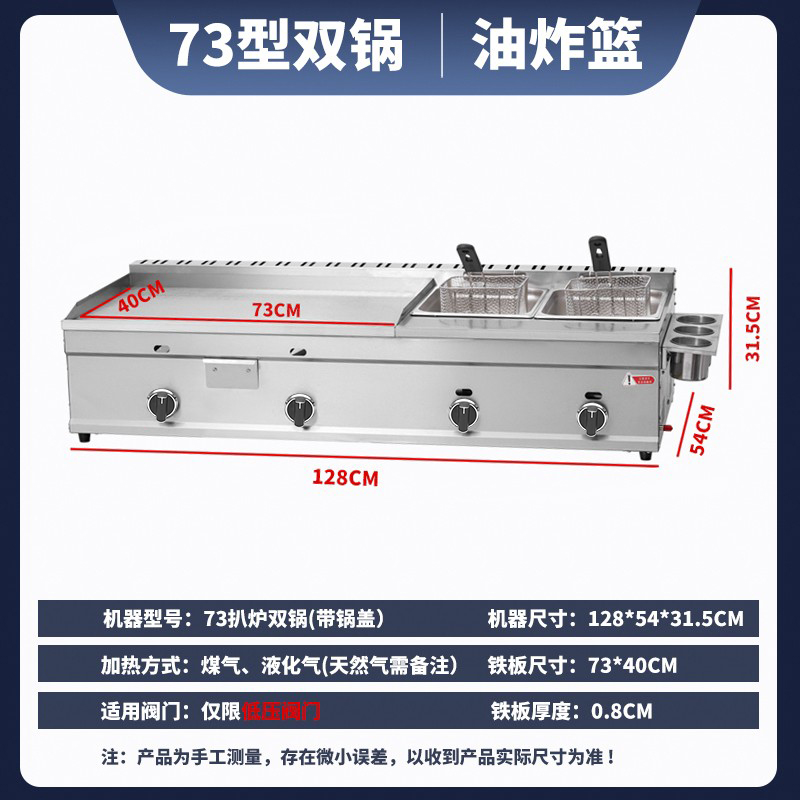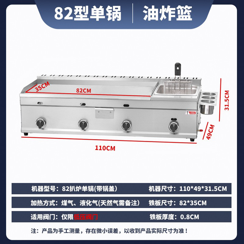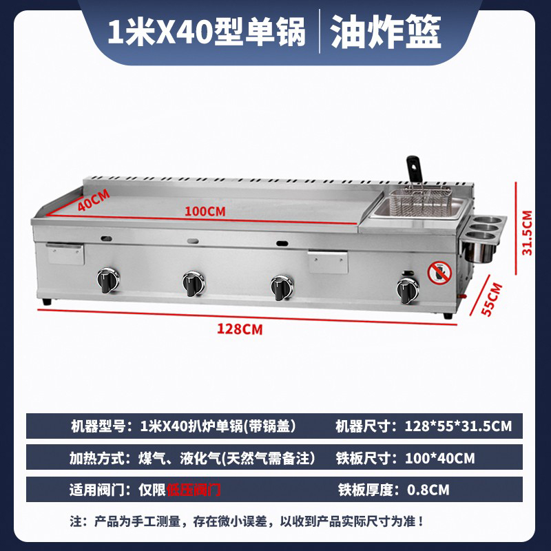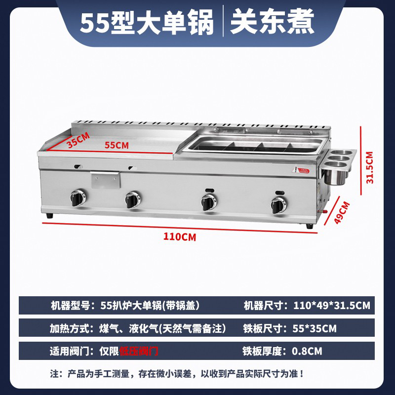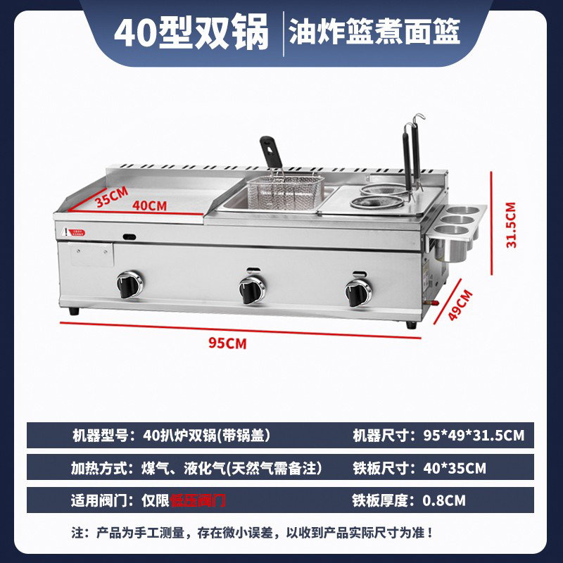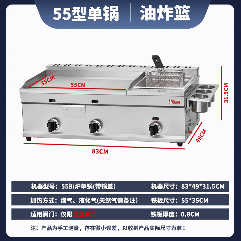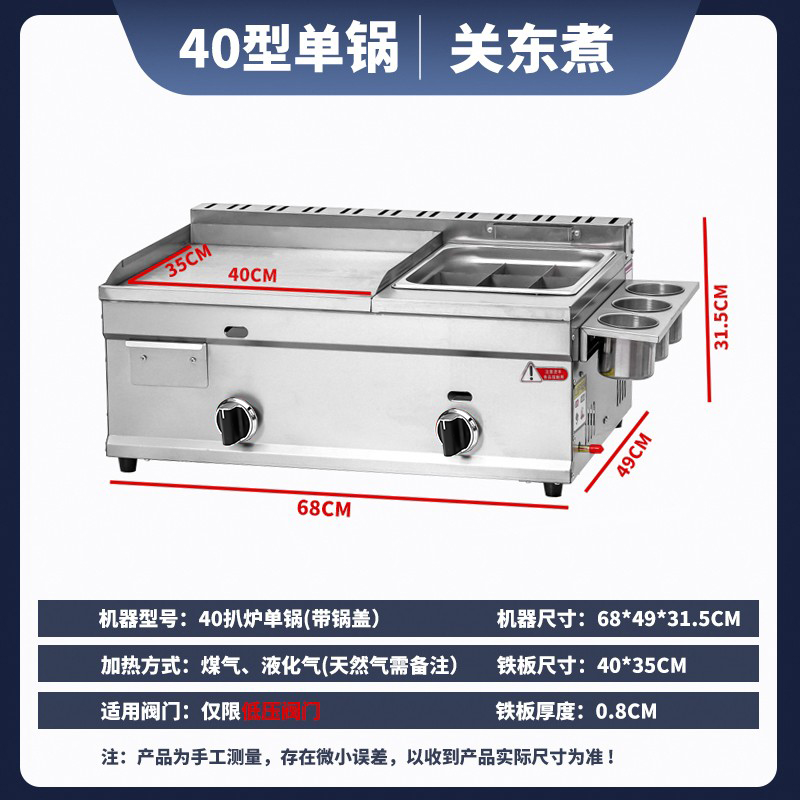 상업용 가스 스테이크 프라이어 결합 된 기계 스낵 스톨 장비 가스 테판 야키 핸드 헬드 케이크 베이킹 콜드 국수 기계