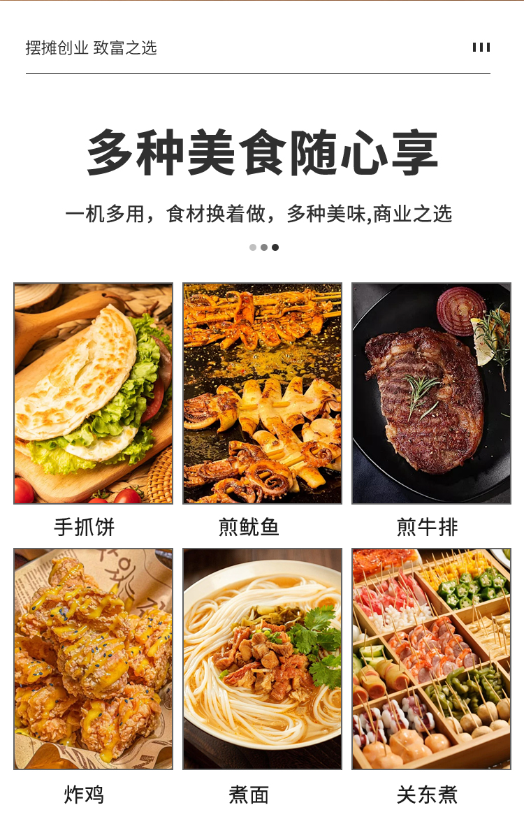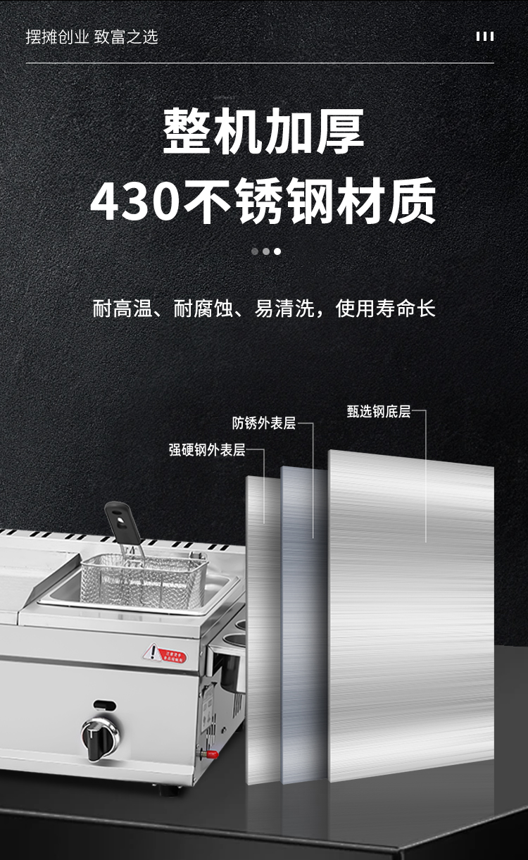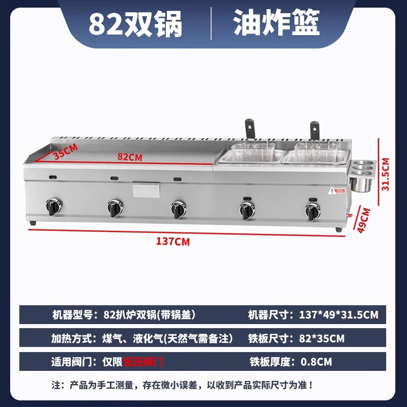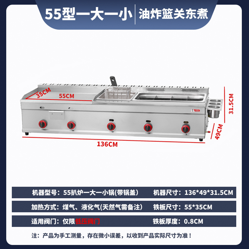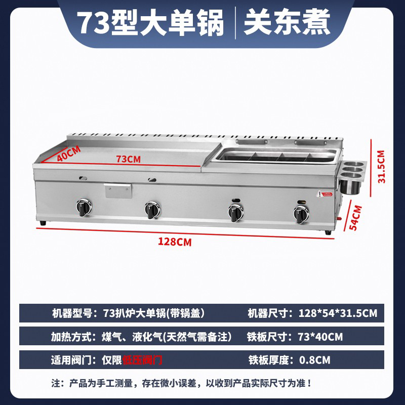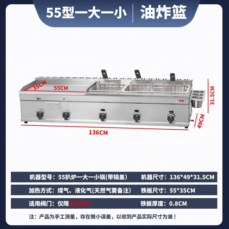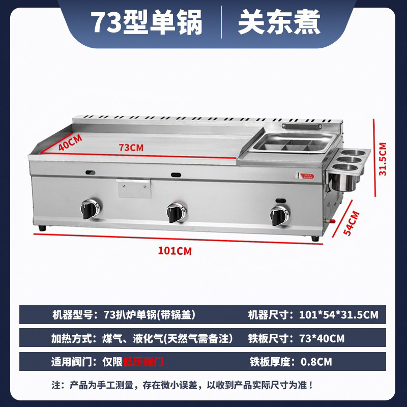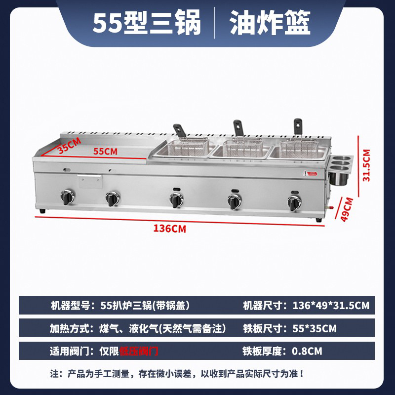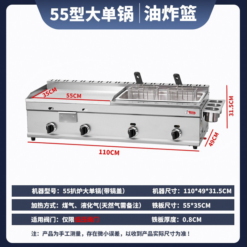 상업용 가스 스테이크 프라이어 결합 된 기계 스낵 스톨 장비 가스 테판 야키 핸드 헬드 케이크 베이킹 콜드 국수 기계