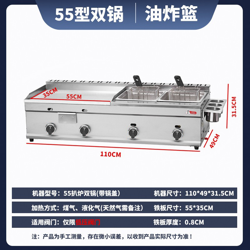 상업용 가스 스테이크 프라이어 결합 된 기계 스낵 스톨 장비 가스 테판 야키 핸드 헬드 케이크 베이킹 콜드 국수 기계스토어 가기