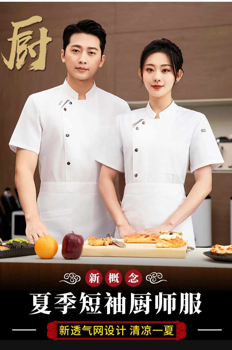셰프 의류 여름 새로운 주방 주방 하이 엔드 작업복 호텔 유니폼 남녀 반팔 요리사 작업 옷