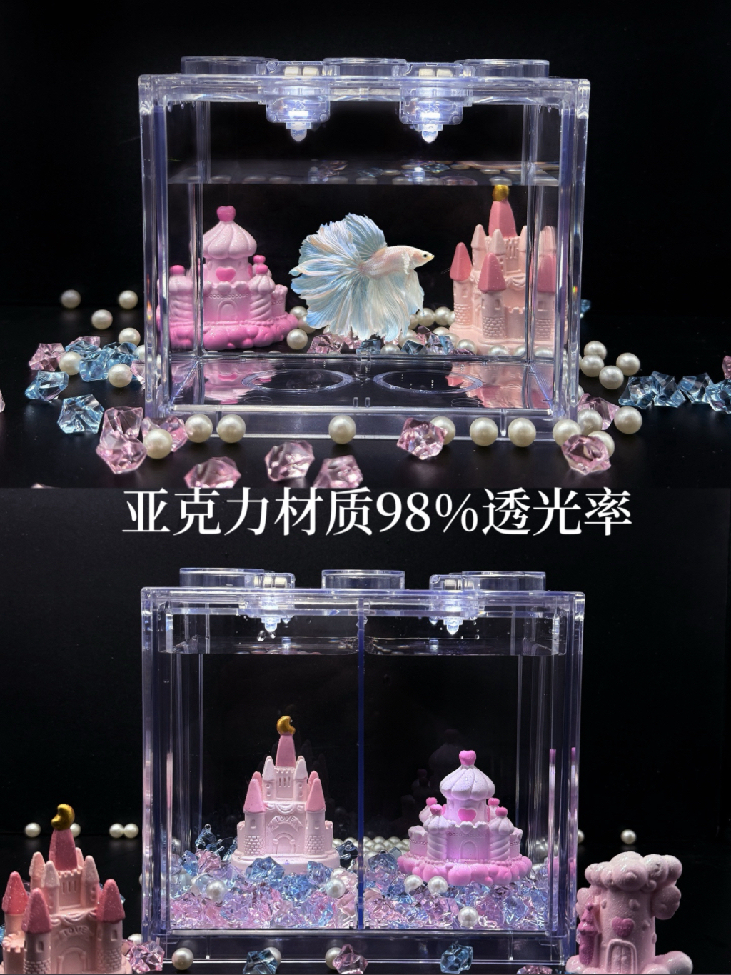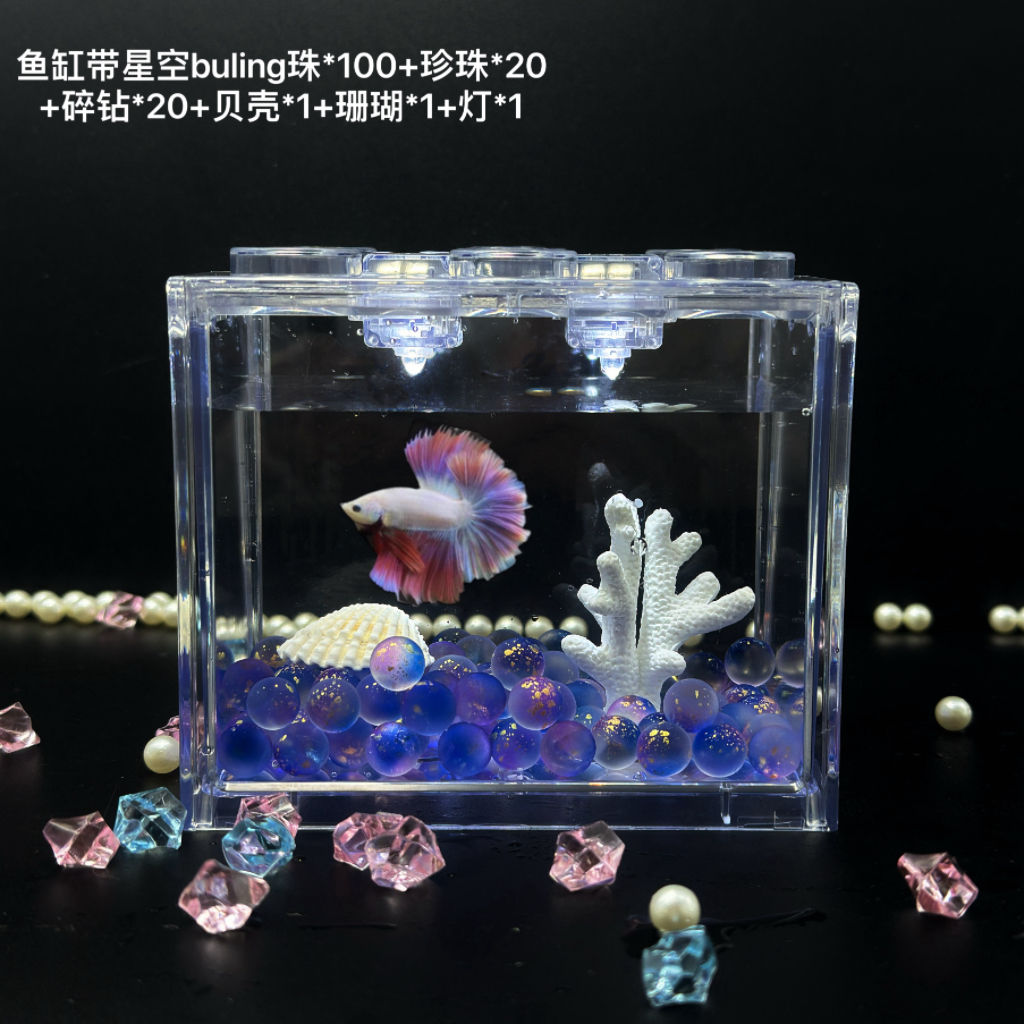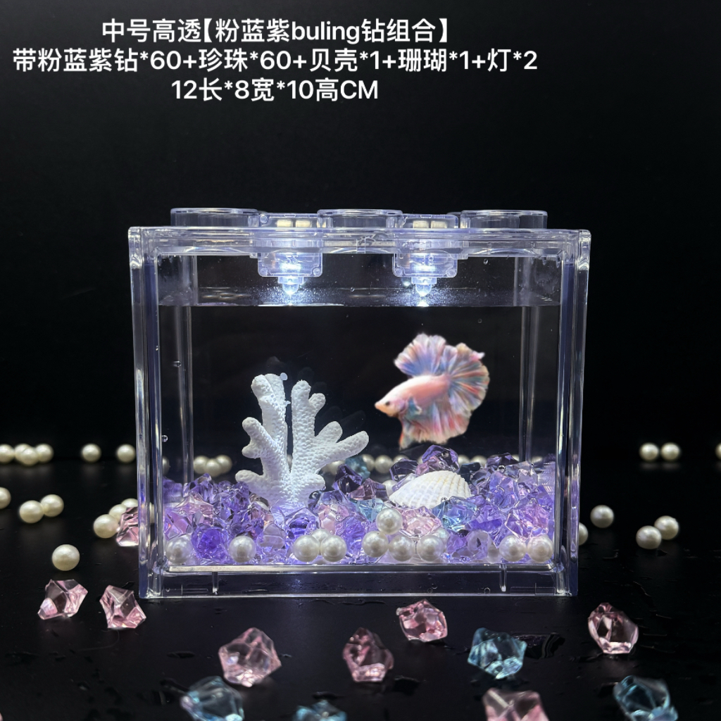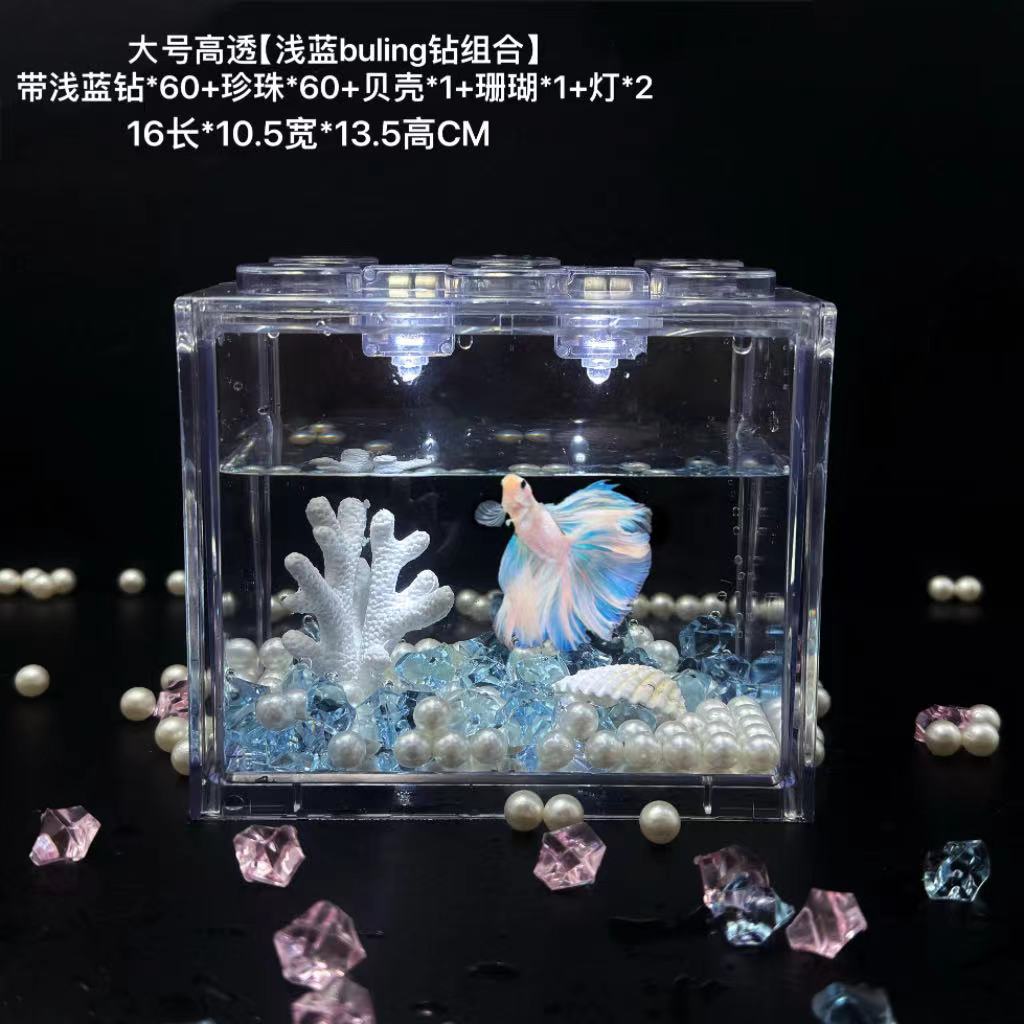Dou Yu Fish Tank 거실 작은 2024 새로운 스타일 조경 장식품 아크릴 슈퍼 화이트 데스크탑 빌딩 블록 거북이 탱크스토어 가기