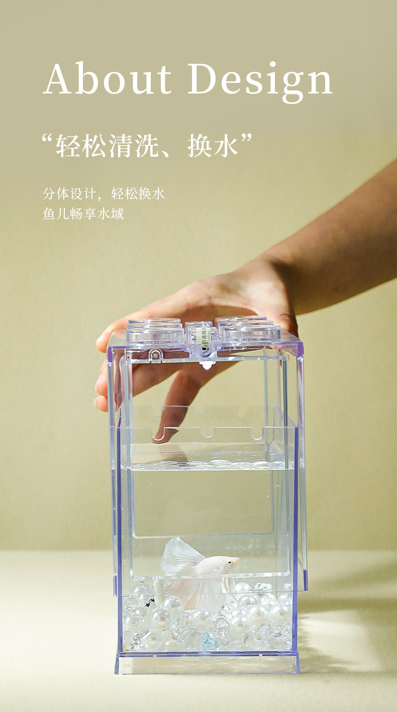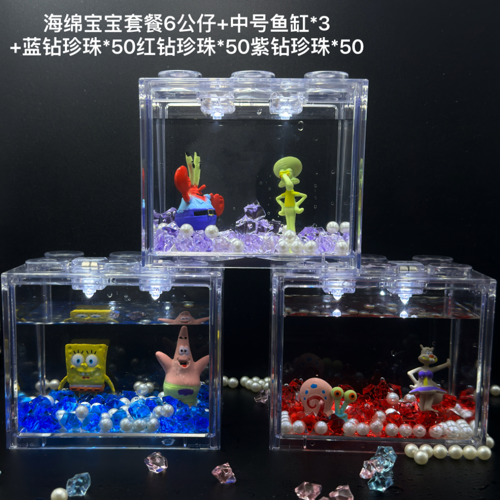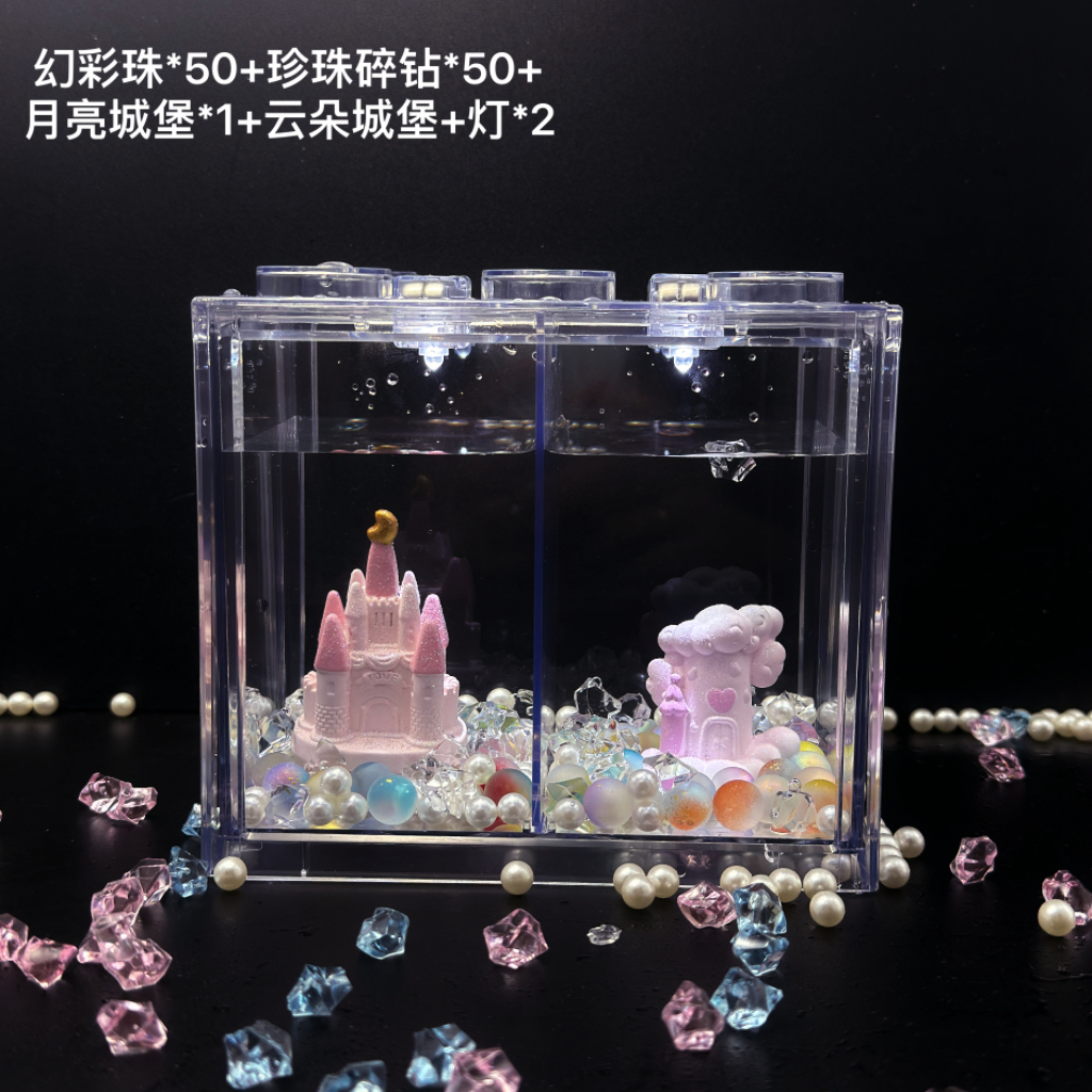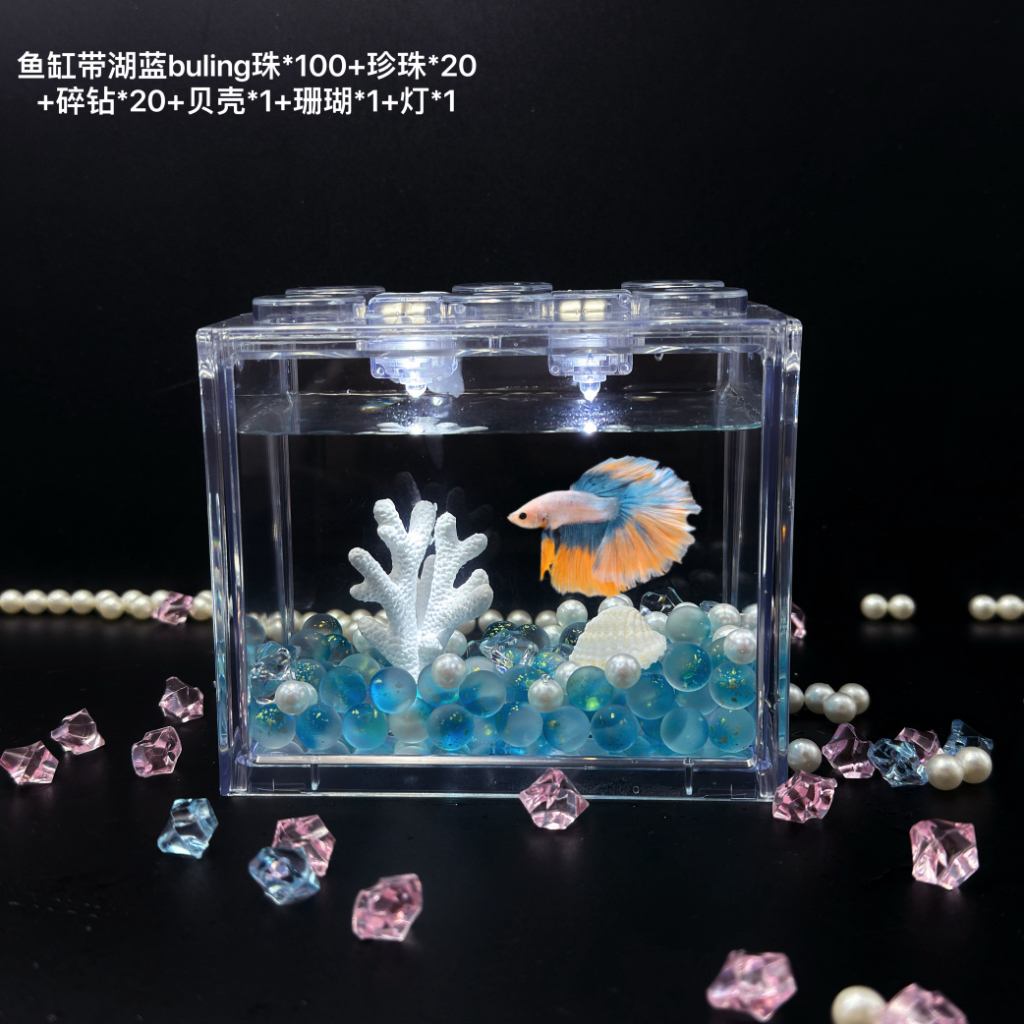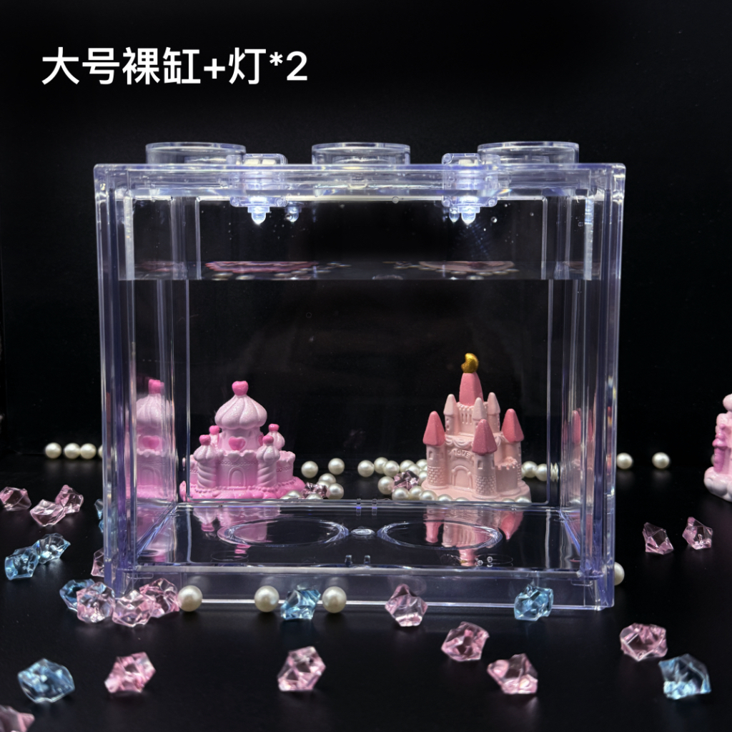 Dou Yu Fish Tank 거실 작은 2024 새로운 스타일 조경 장식품 아크릴 슈퍼 화이트 데스크탑 빌딩 블록 거북이 탱크