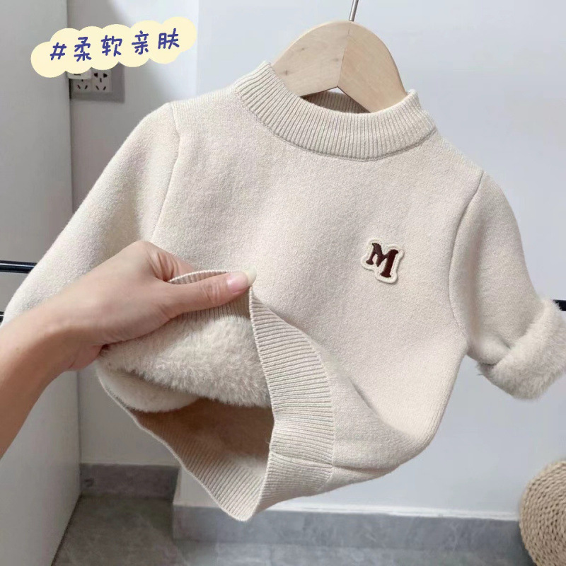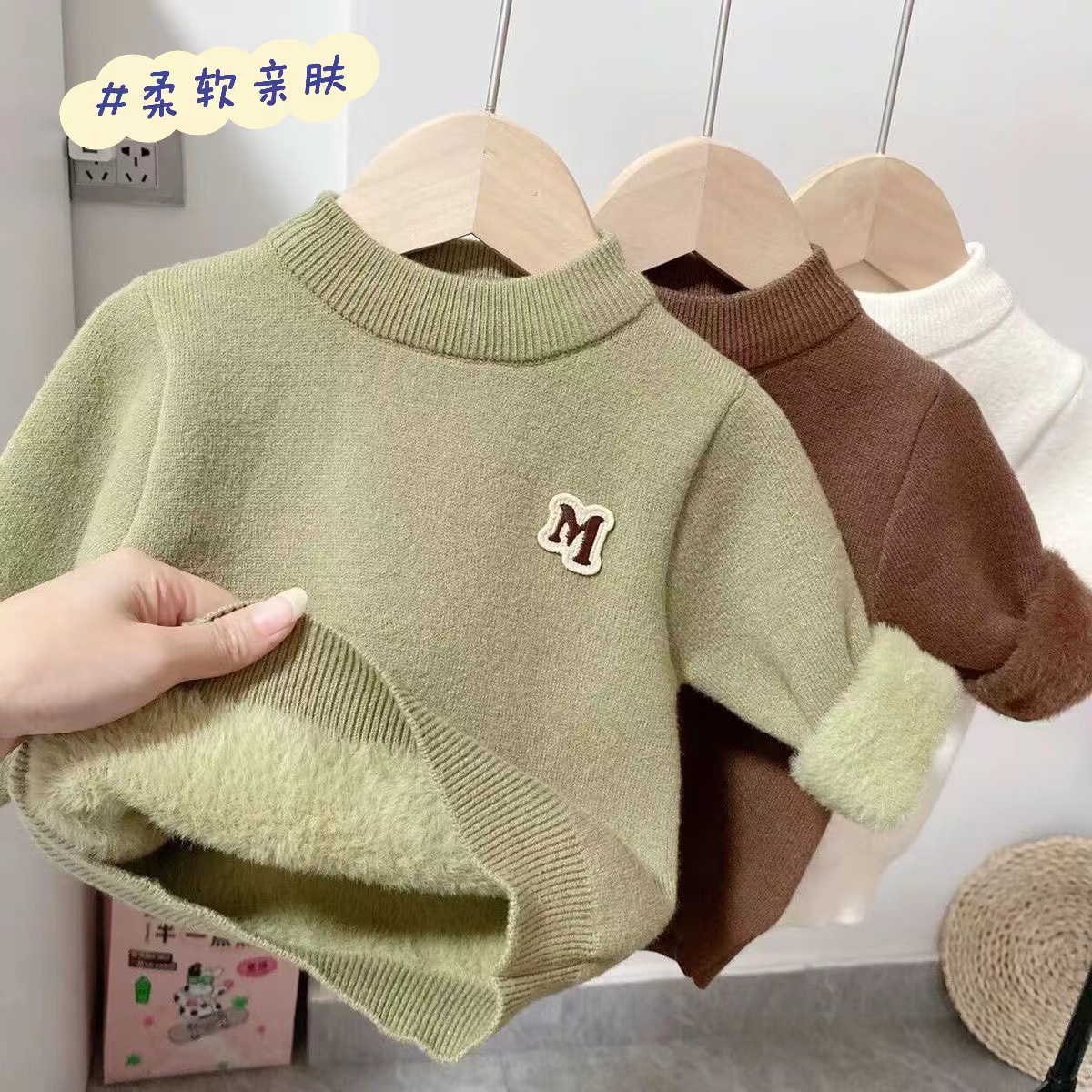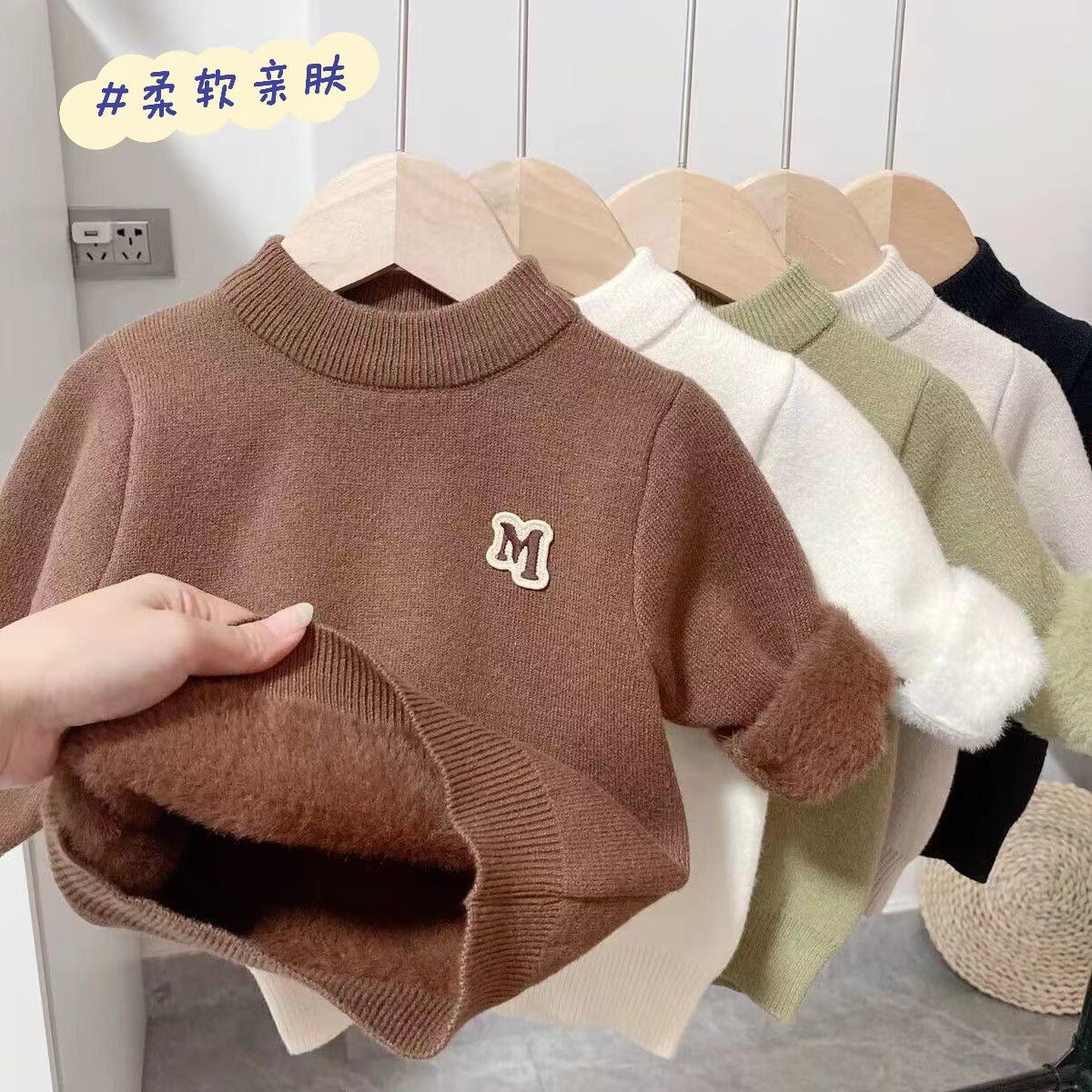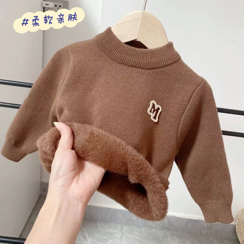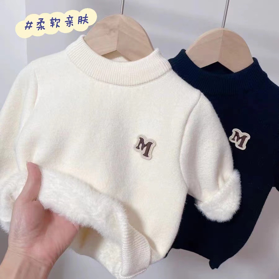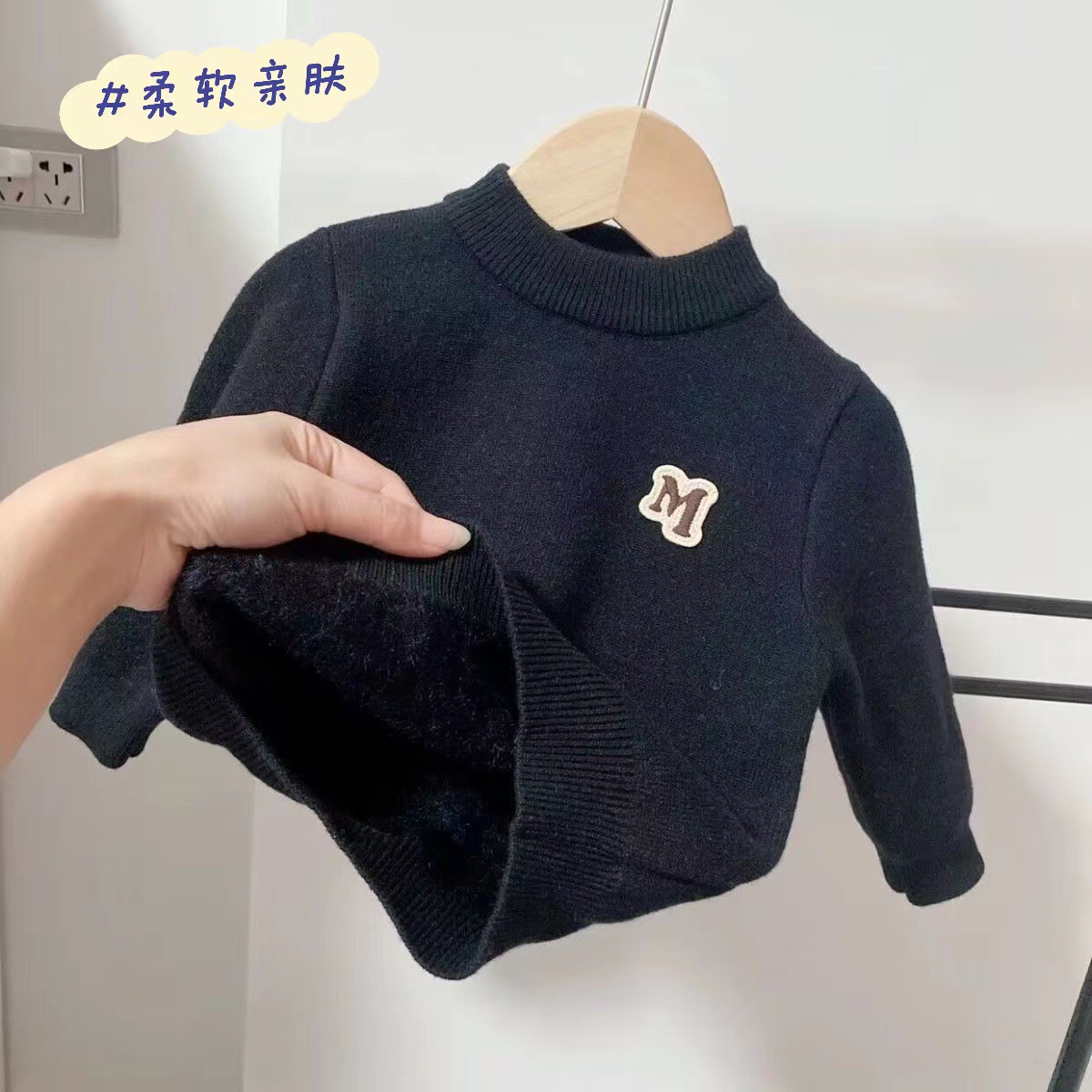소년의 원피스 캐시미어 스웨터 가을과 겨울 아동베이스 셔츠 크루 넥 아기의 내복 새 기모 두꺼운 니트 스웨터