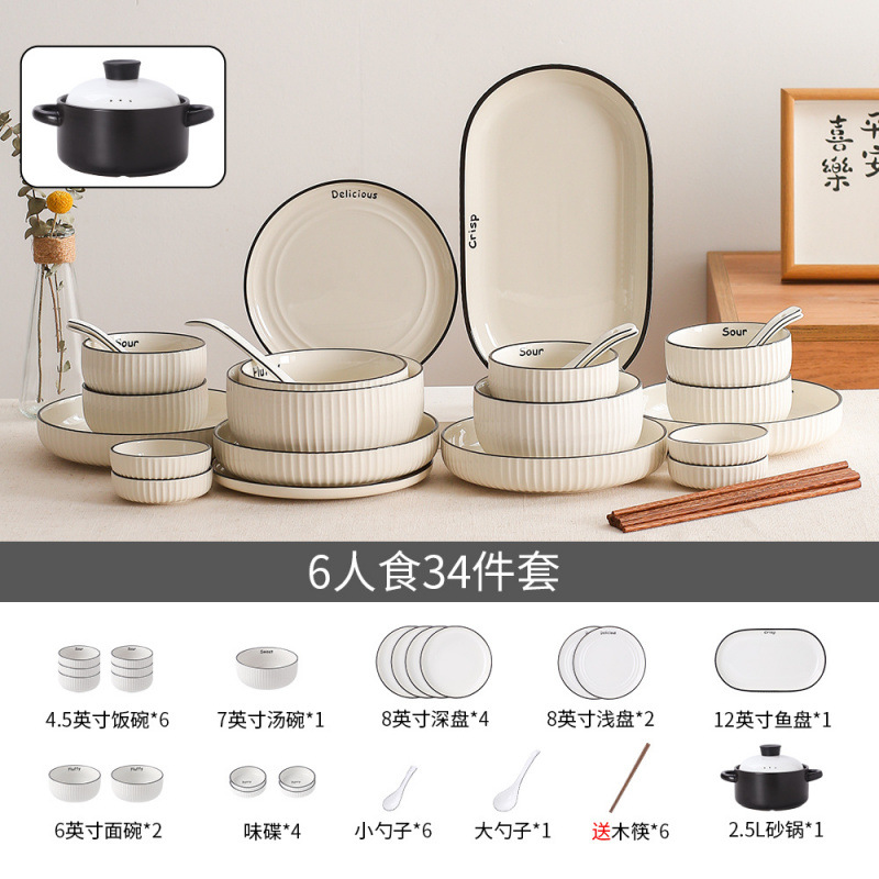 북유럽 요리 및 접시는 높은 색 가치 요리와 요리 생선 요리 세라믹 식기류는 유약 컬러 플레이트 접시 큰 수프 그릇을 세트.