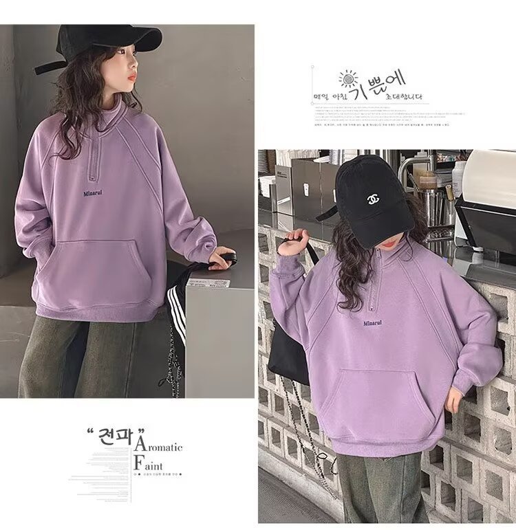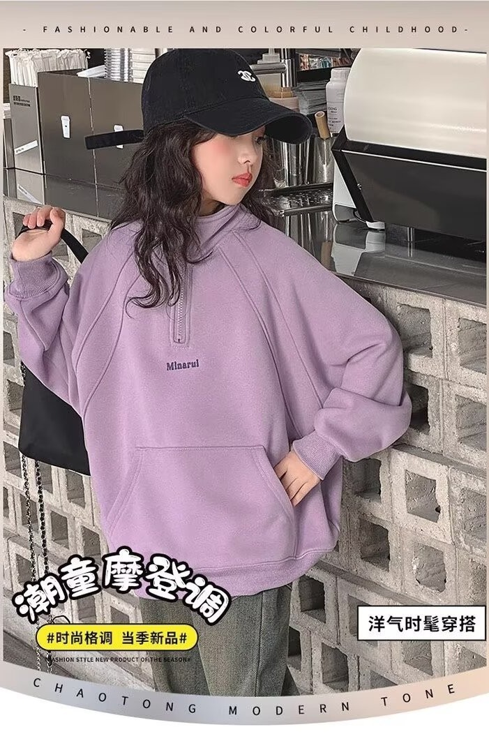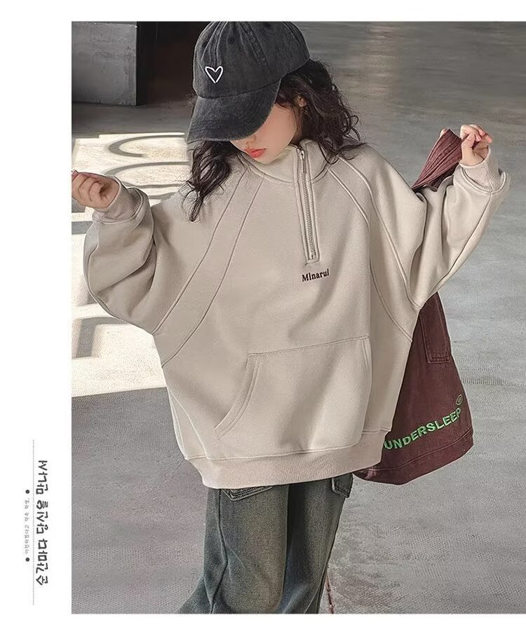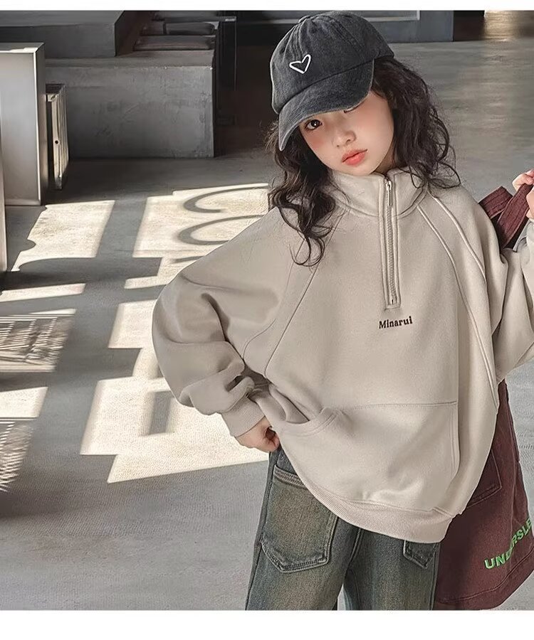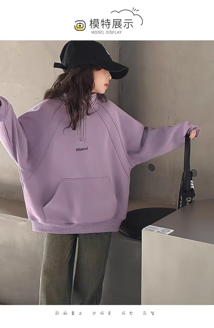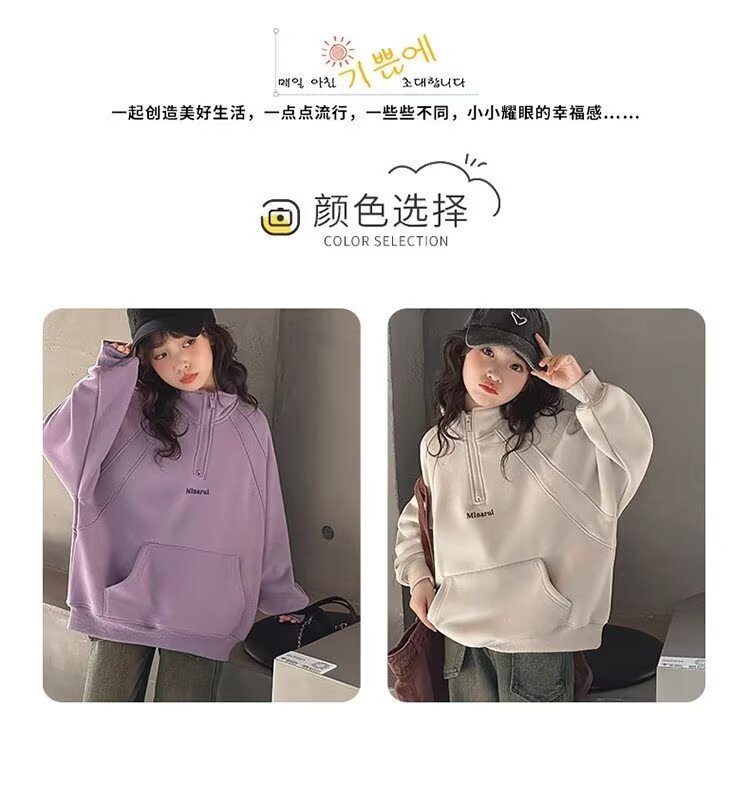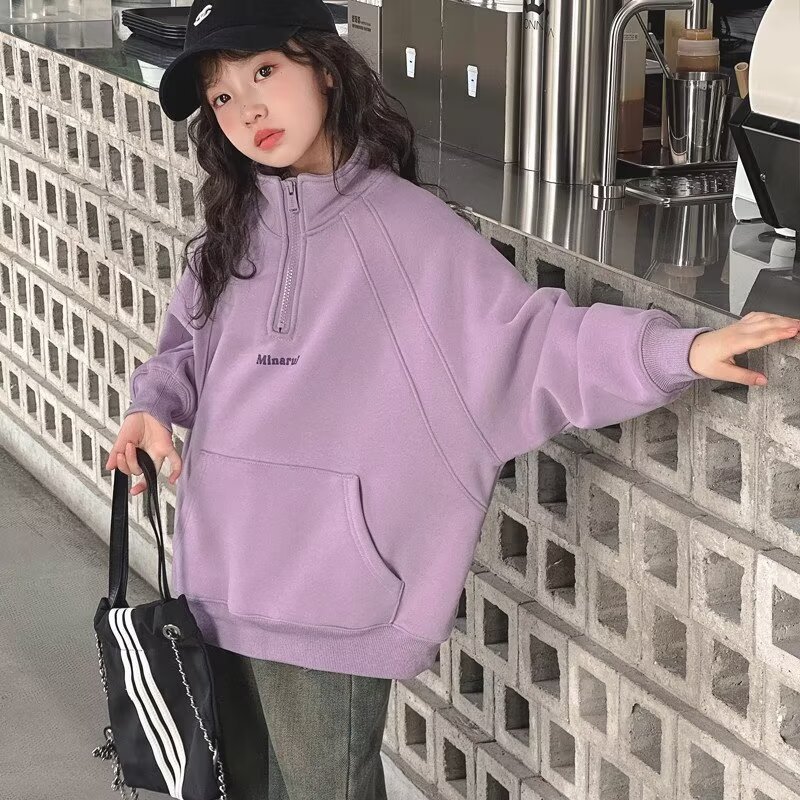 소녀의 땀 봄과 가을 2024 새로운 어린이 반 지퍼 목걸이 소녀 가을 느슨한 캐주얼 탑스토어 가기