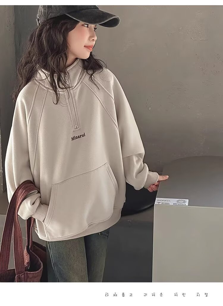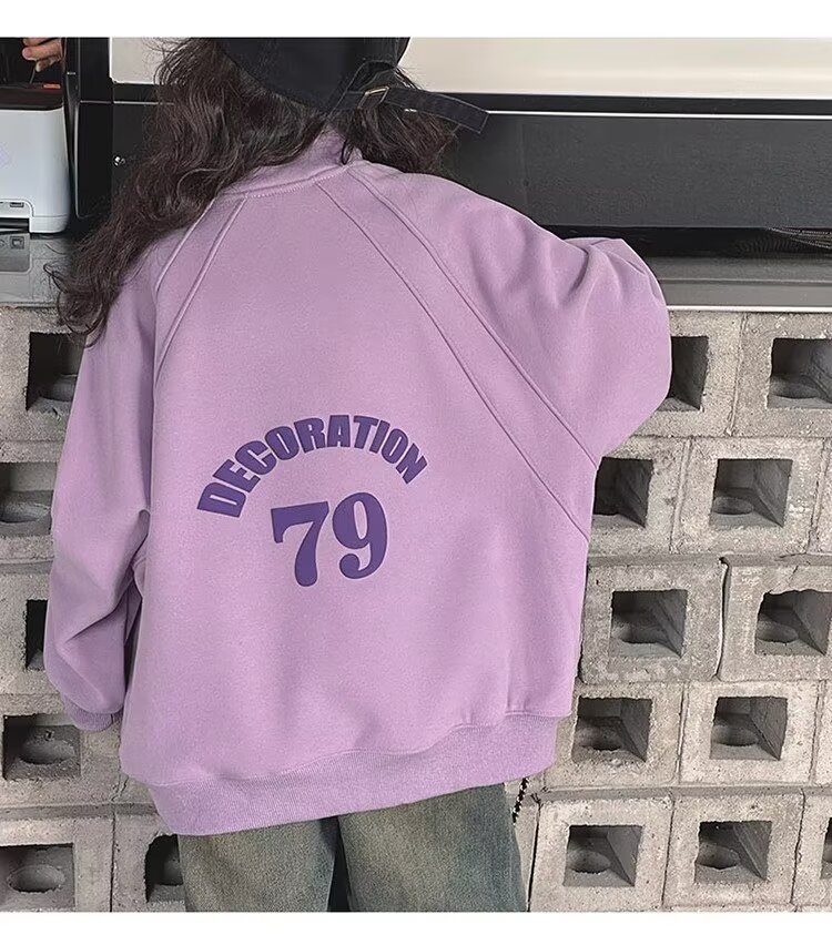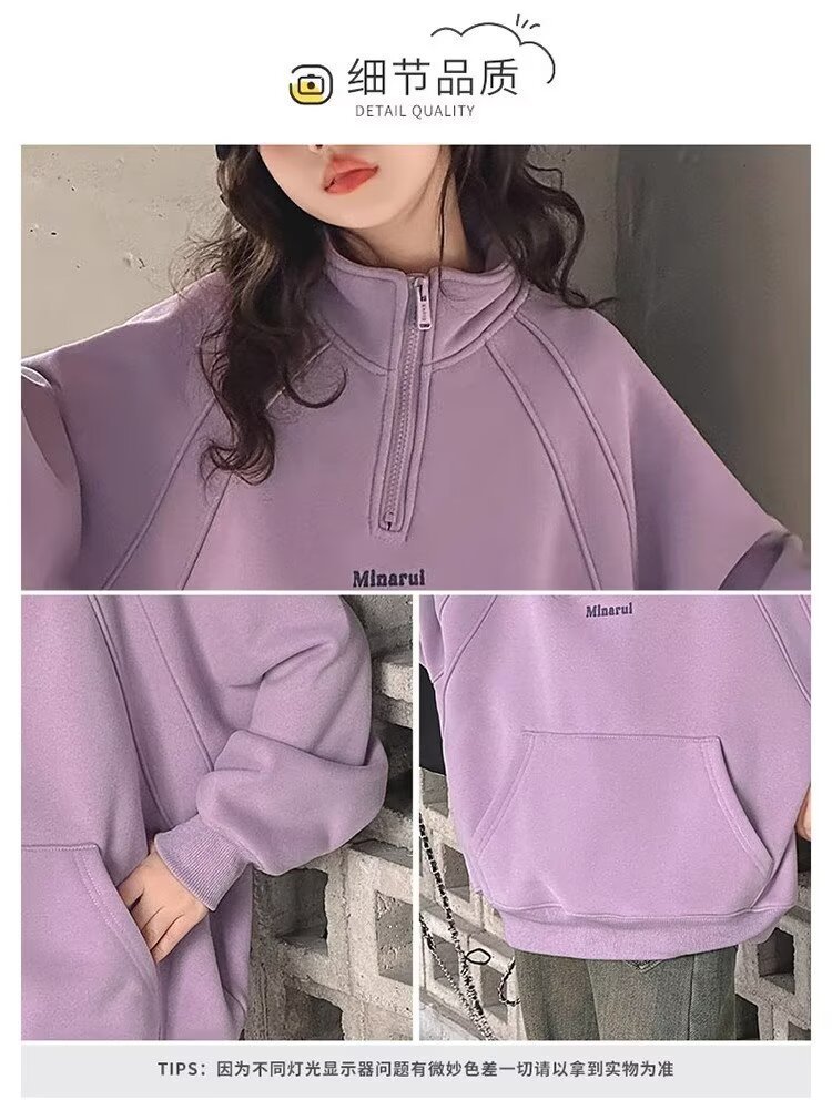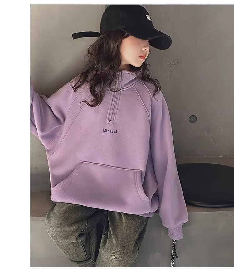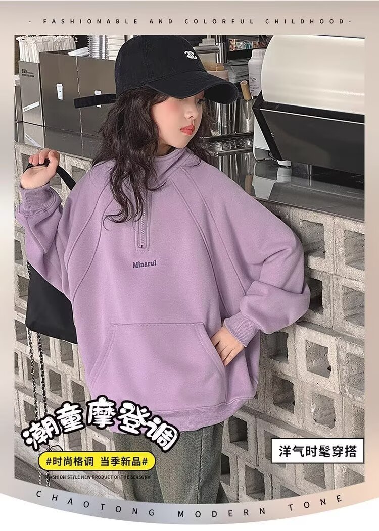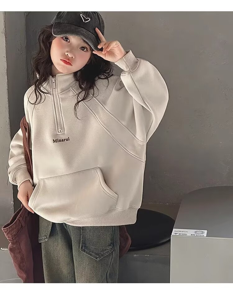 소녀의 땀 봄과 가을 2024 새로운 어린이 반 지퍼 목걸이 소녀 가을 느슨한 캐주얼 탑스토어 가기