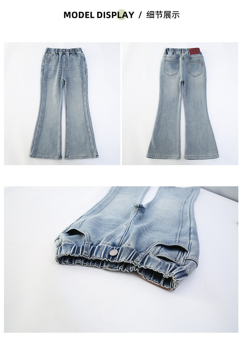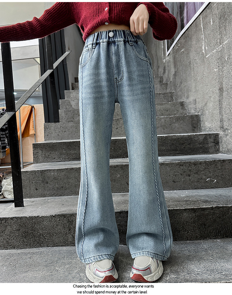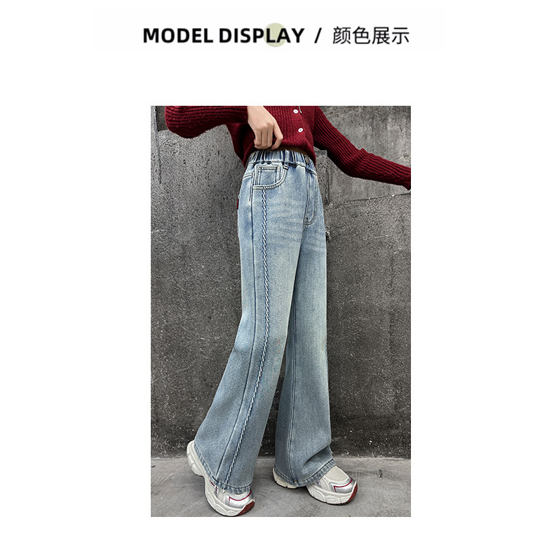소녀 청바지 봄 2025 새로운 어린이 한국 스타일 넓은 다리 바지 어린 소녀 바지 큰 어린이 캐주얼 트럼펫 트렌디스토어 가기