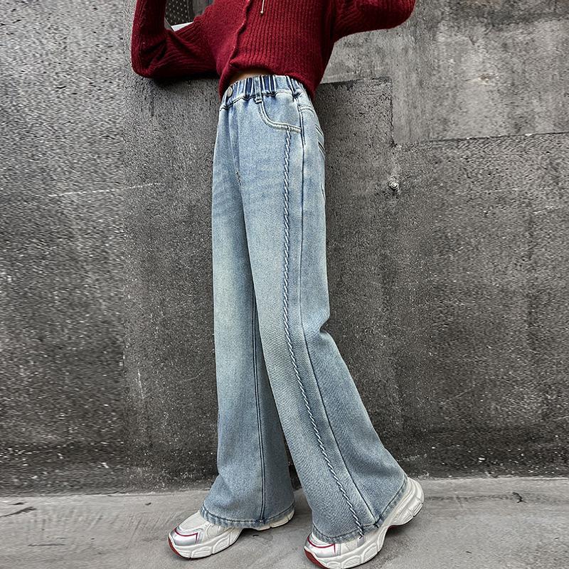 소녀 청바지 봄 2025 새로운 어린이 한국 스타일 넓은 다리 바지 어린 소녀 바지 큰 어린이 캐주얼 트럼펫 트렌디