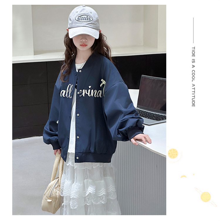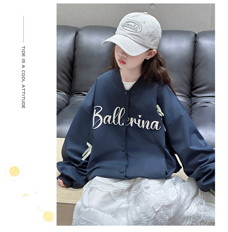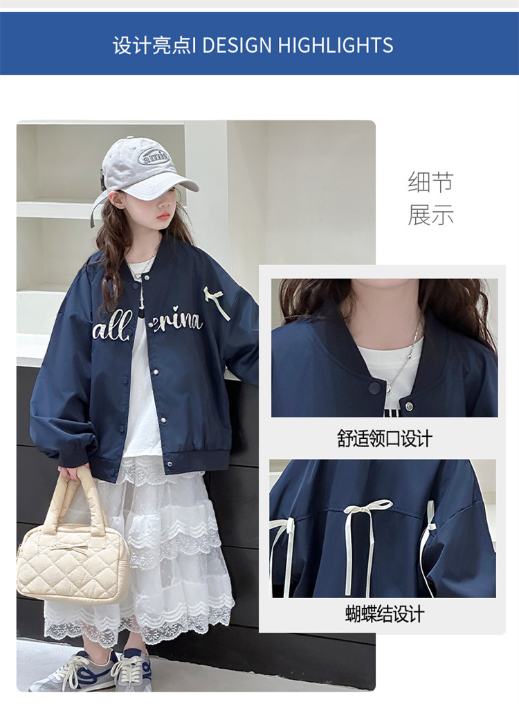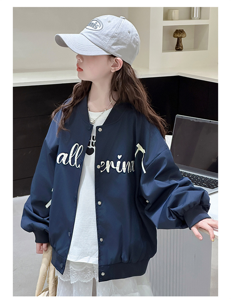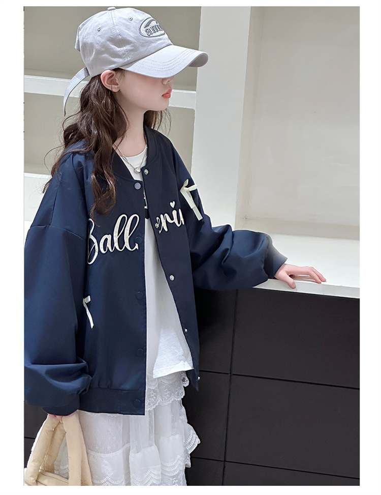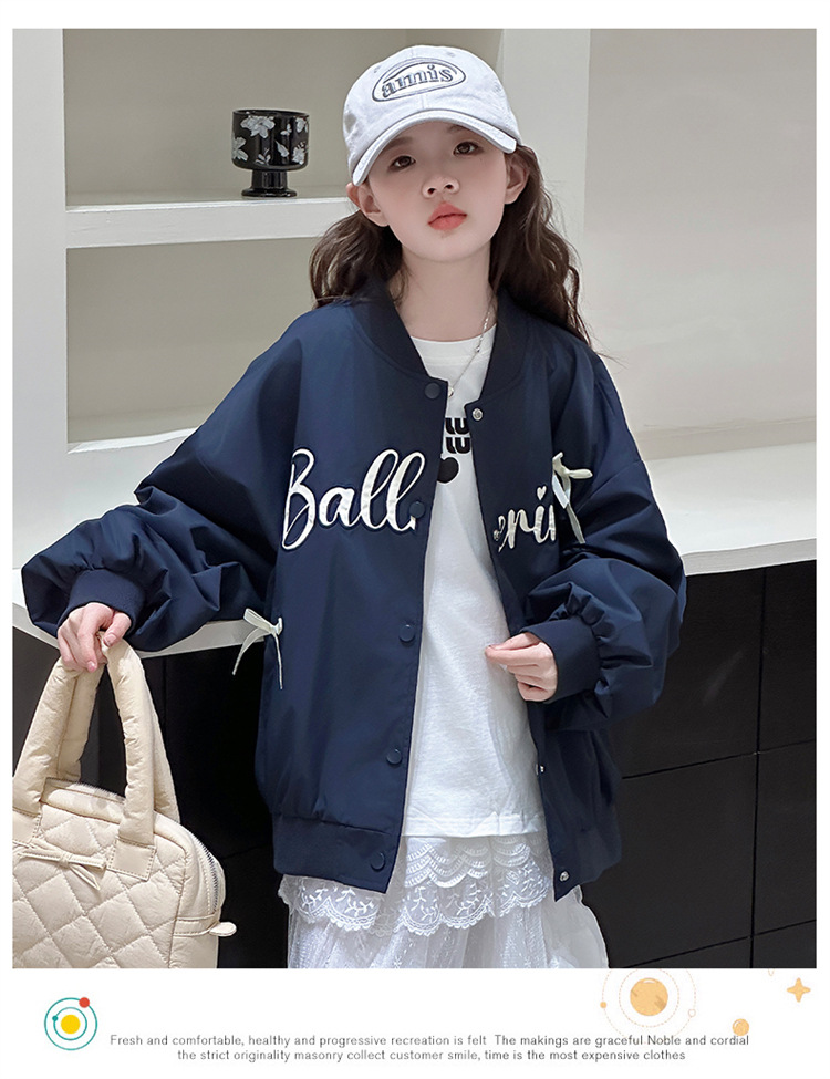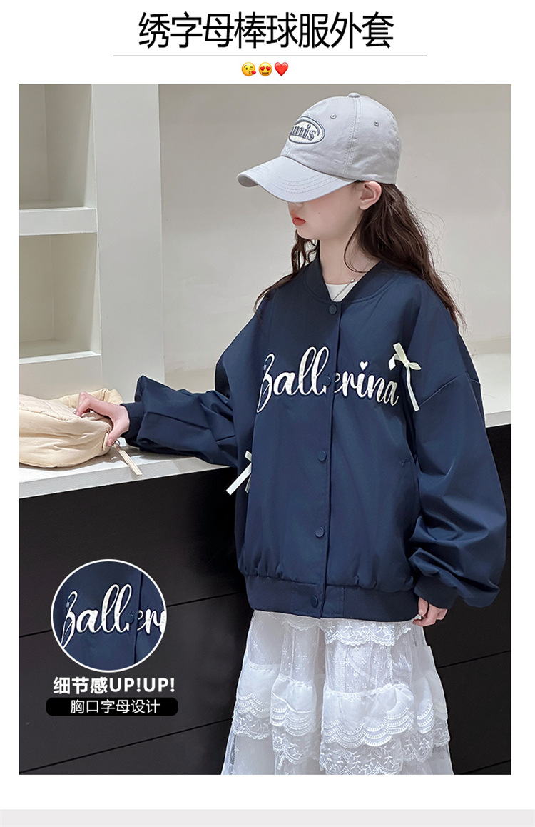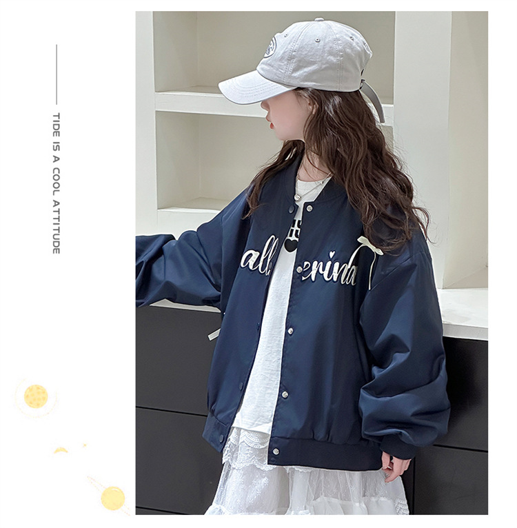 여아용 재킷 봄 가을 2025 신상 여아용 네이비 블루 야구 재킷 어린이 패션 자수 재킷 가을 의류