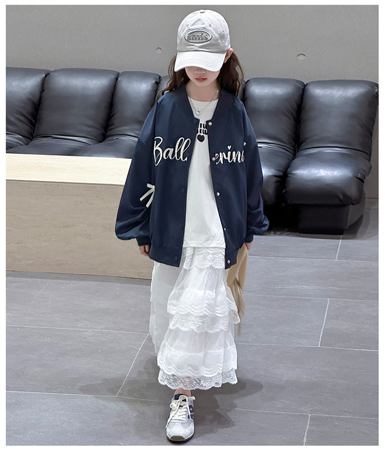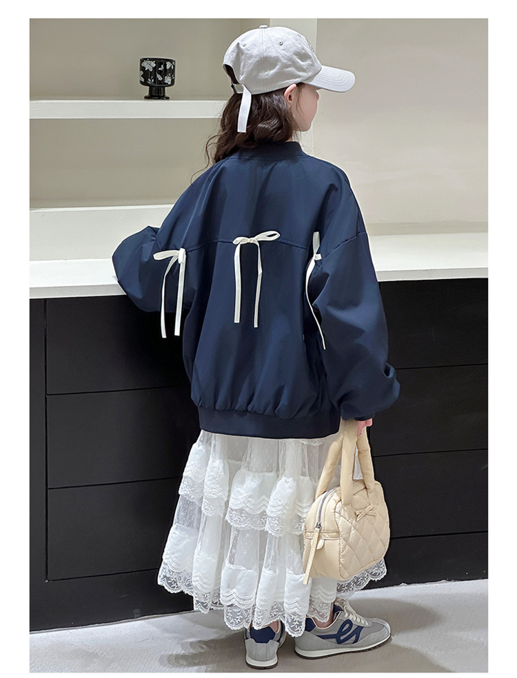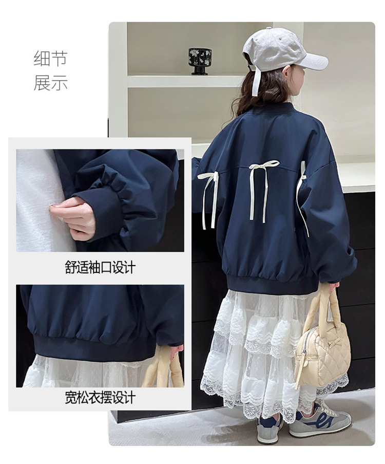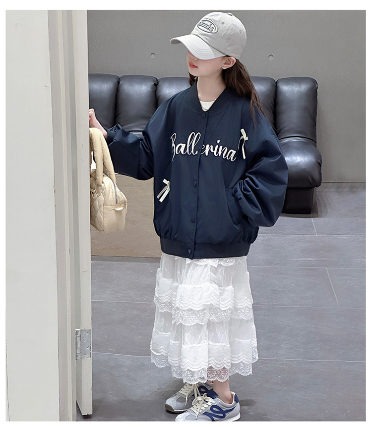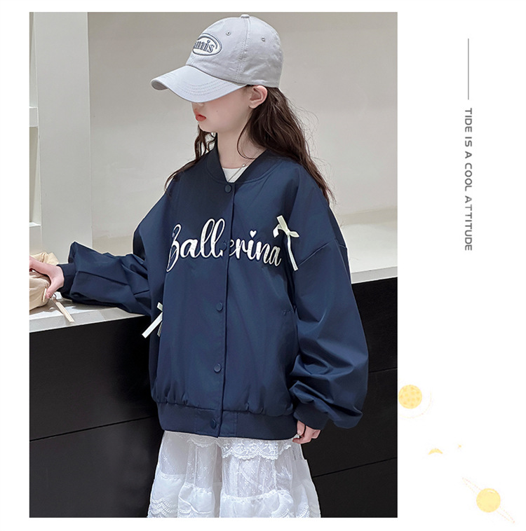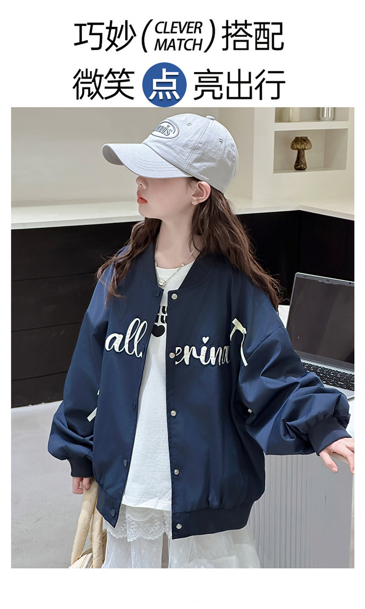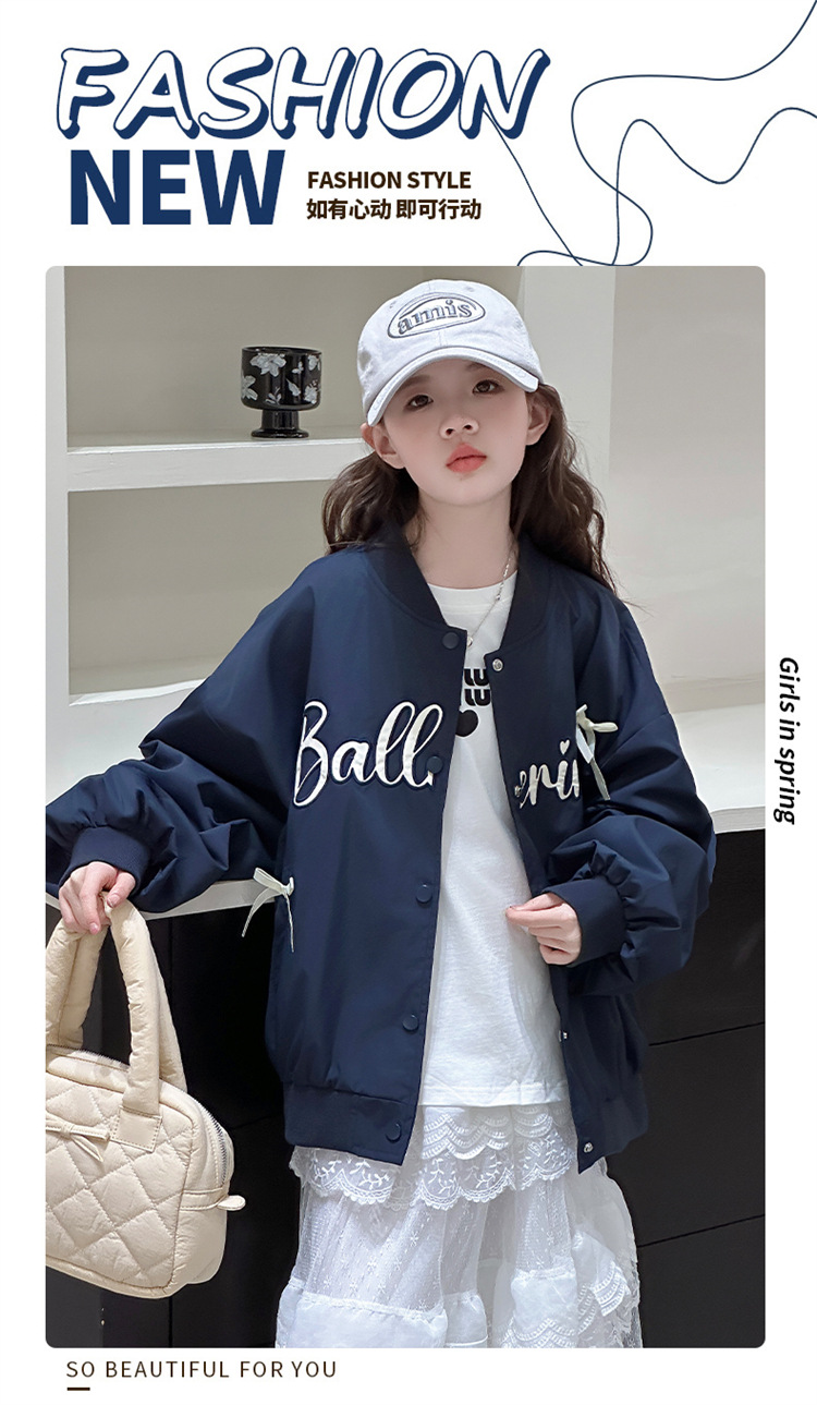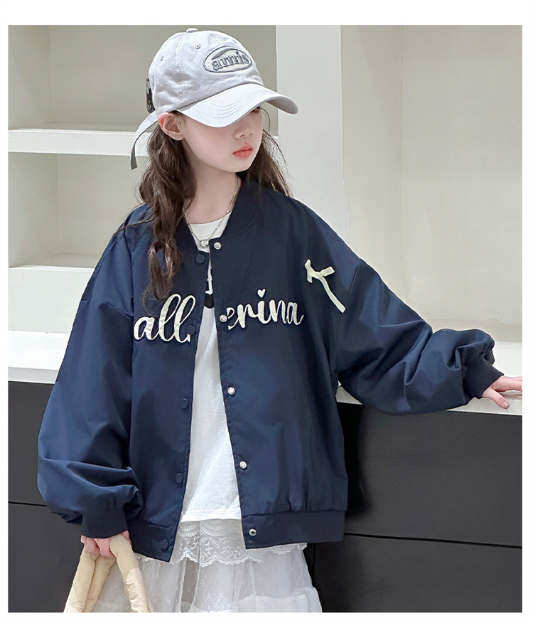 여아용 재킷 봄 가을 2025 신상 여아용 네이비 블루 야구 재킷 어린이 패션 자수 재킷 가을 의류