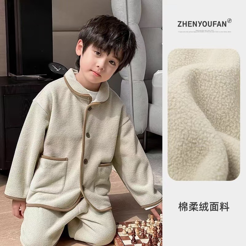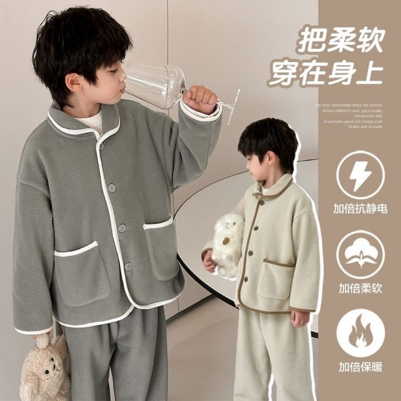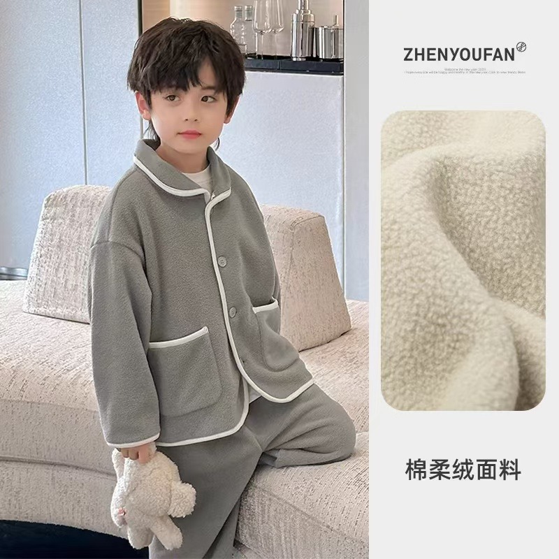 아동복 소년 잠옷 2024 년 봄과 가을 새 어린이 가정 옷 세트 소년 긴 소매 가을과 겨울 기모 중 · 대형 어린이스토어 가기