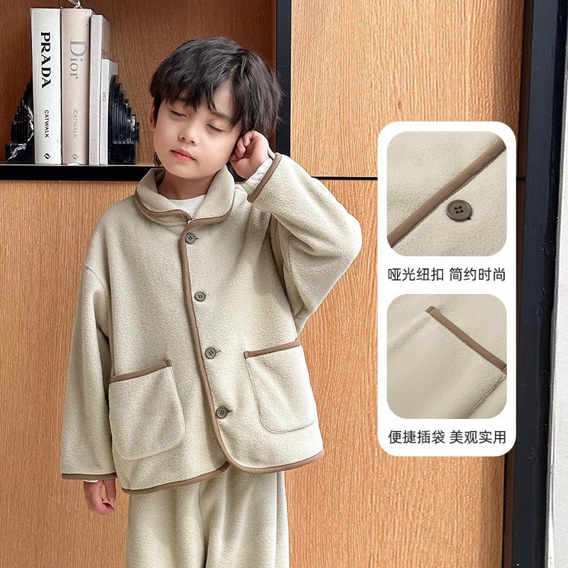아동복 소년 잠옷 2024 년 봄과 가을 새 어린이 가정 옷 세트 소년 긴 소매 가을과 겨울 기모 중 · 대형 어린이