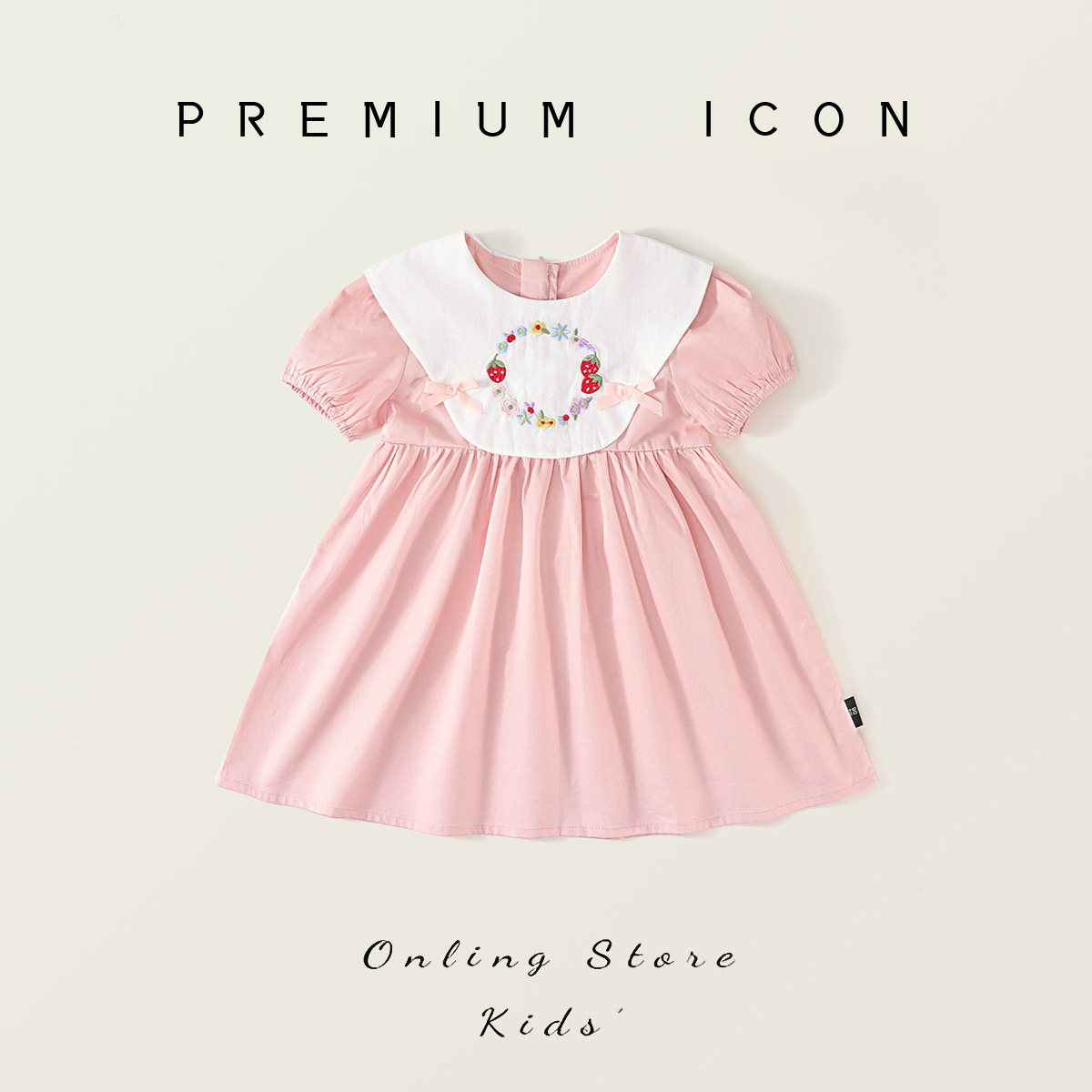 여자 프렌치 레트로 스타일 수 놓은 원피스 2025 여름 아이 핑크 긴 소매 면 공주 원피스스토어 가기