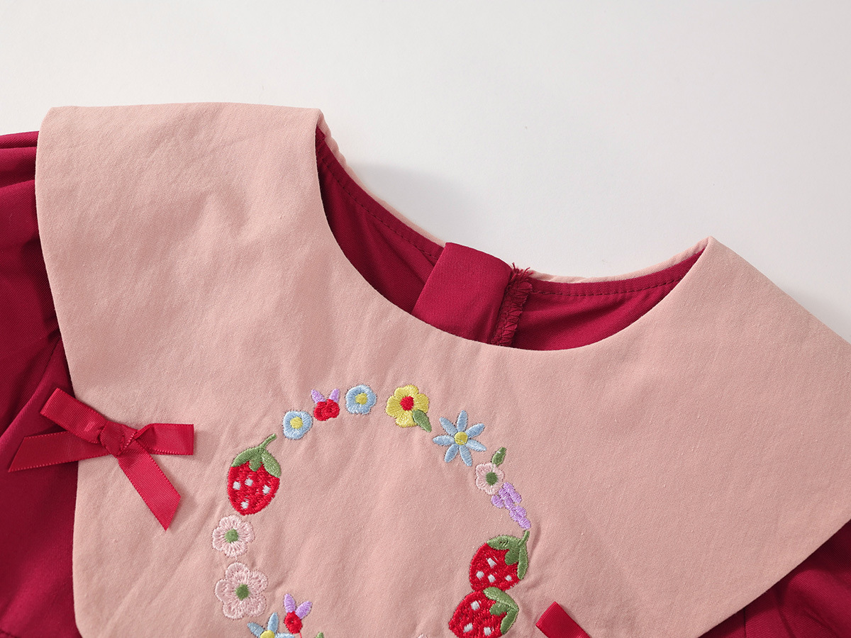 여자 프렌치 레트로 스타일 수 놓은 원피스 2025 여름 아이 핑크 긴 소매 면 공주 원피스