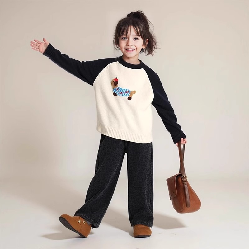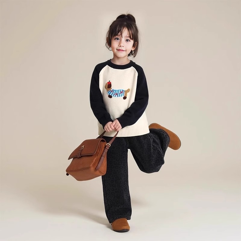 소녀 한국 스웨터 2024 새로운 어린이 패션 서양식 소녀 겨울 내베이스 셔츠 탑스토어 가기