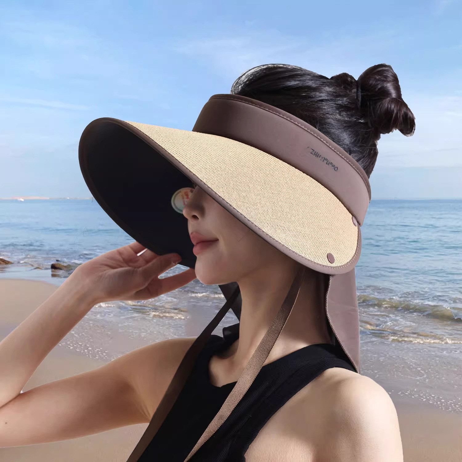 안티-UV 선 스크린 모자 아이들의 여름 햇빛 얼굴 덮힌 목 보호 야외 등산 밀짚 모자 큰 처마 및 빈 최고 어부 모자
