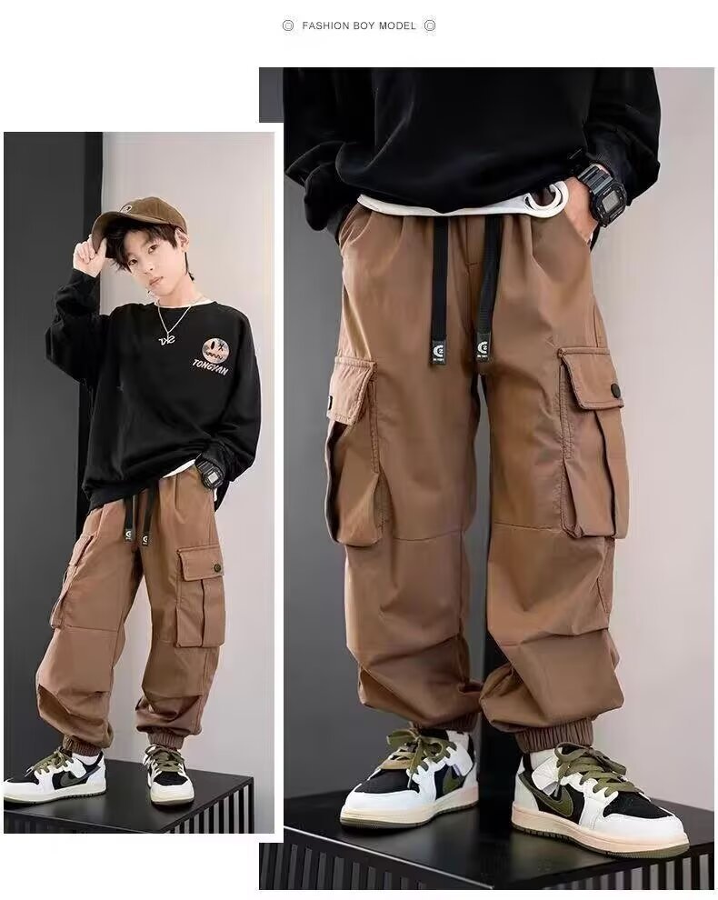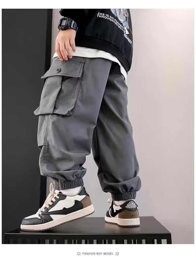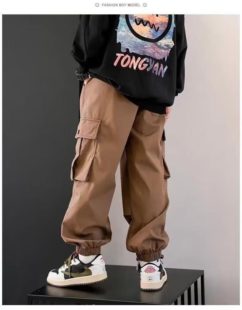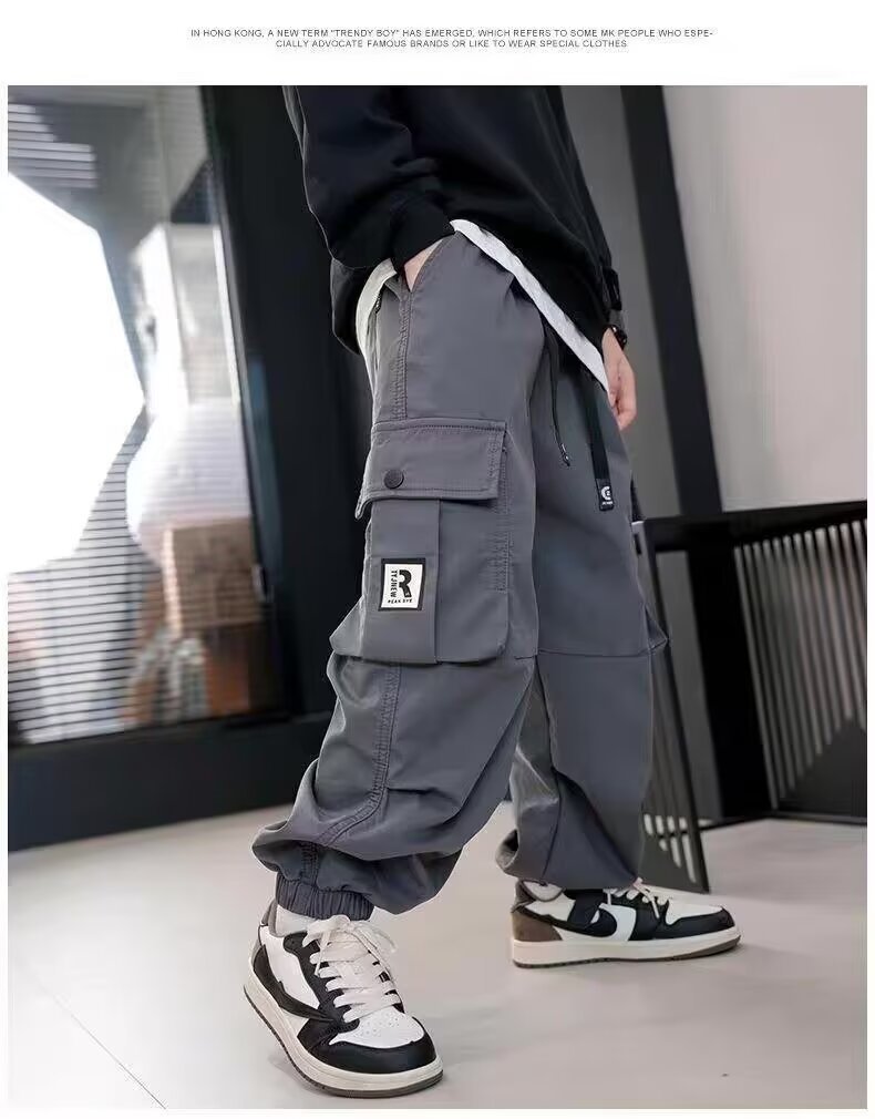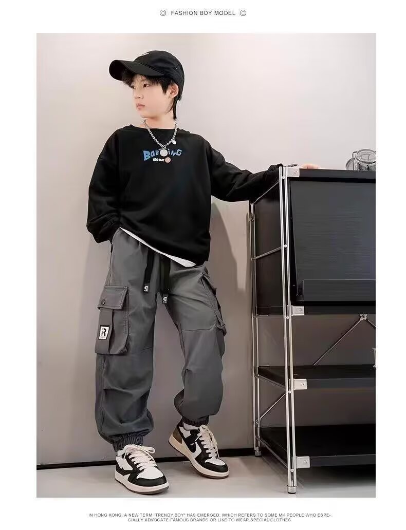 남학생화물 바지 2024 중 · 대형 어린이 봄 · 가을 바지 소년 캐주얼 바지 스타일리스트 트렌디 브랜드