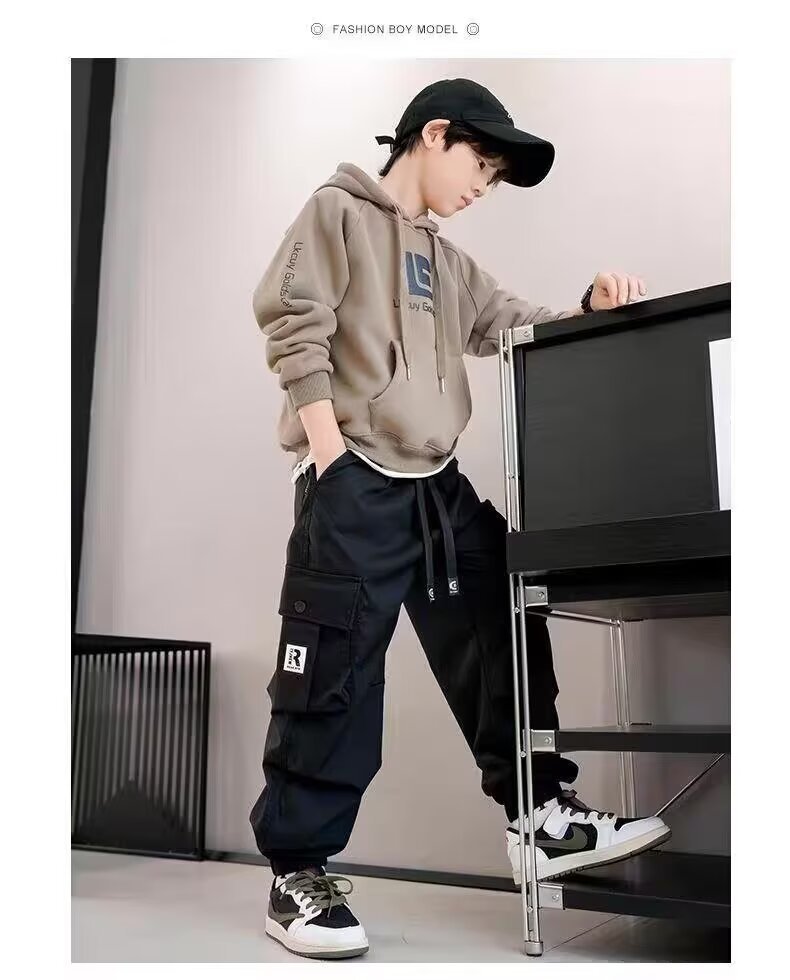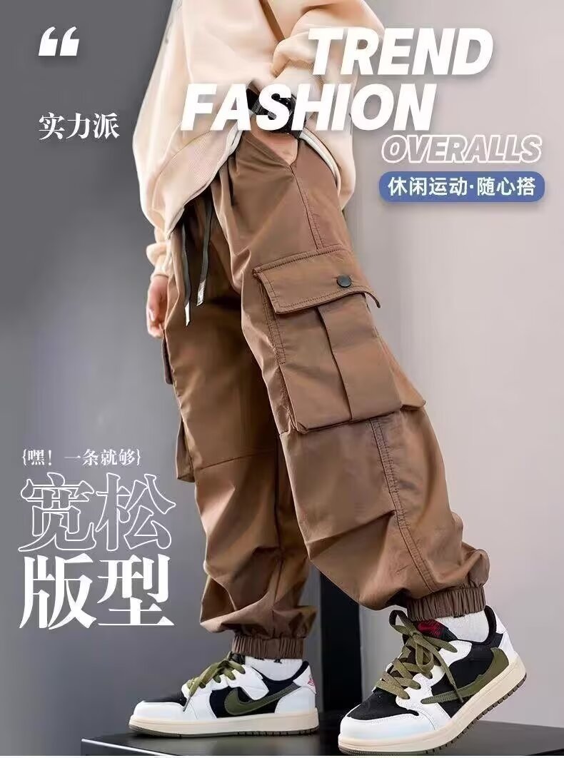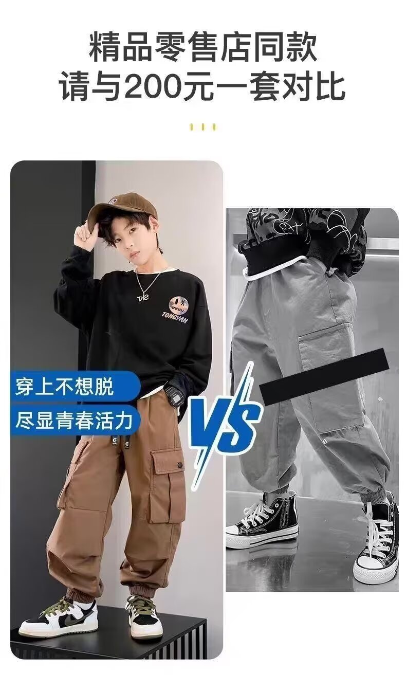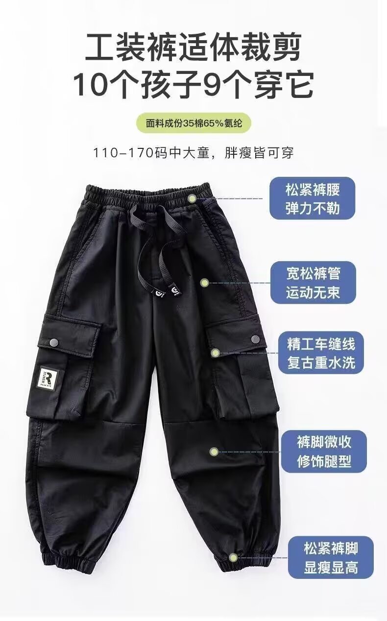 남학생화물 바지 2024 중 · 대형 어린이 봄 · 가을 바지 소년 캐주얼 바지 스타일리스트 트렌디 브랜드