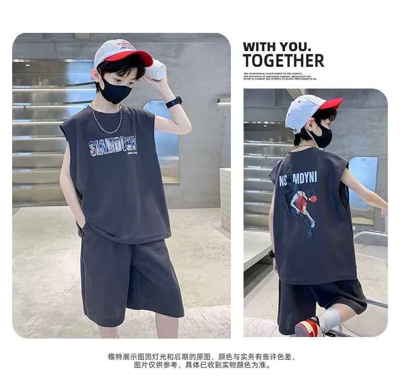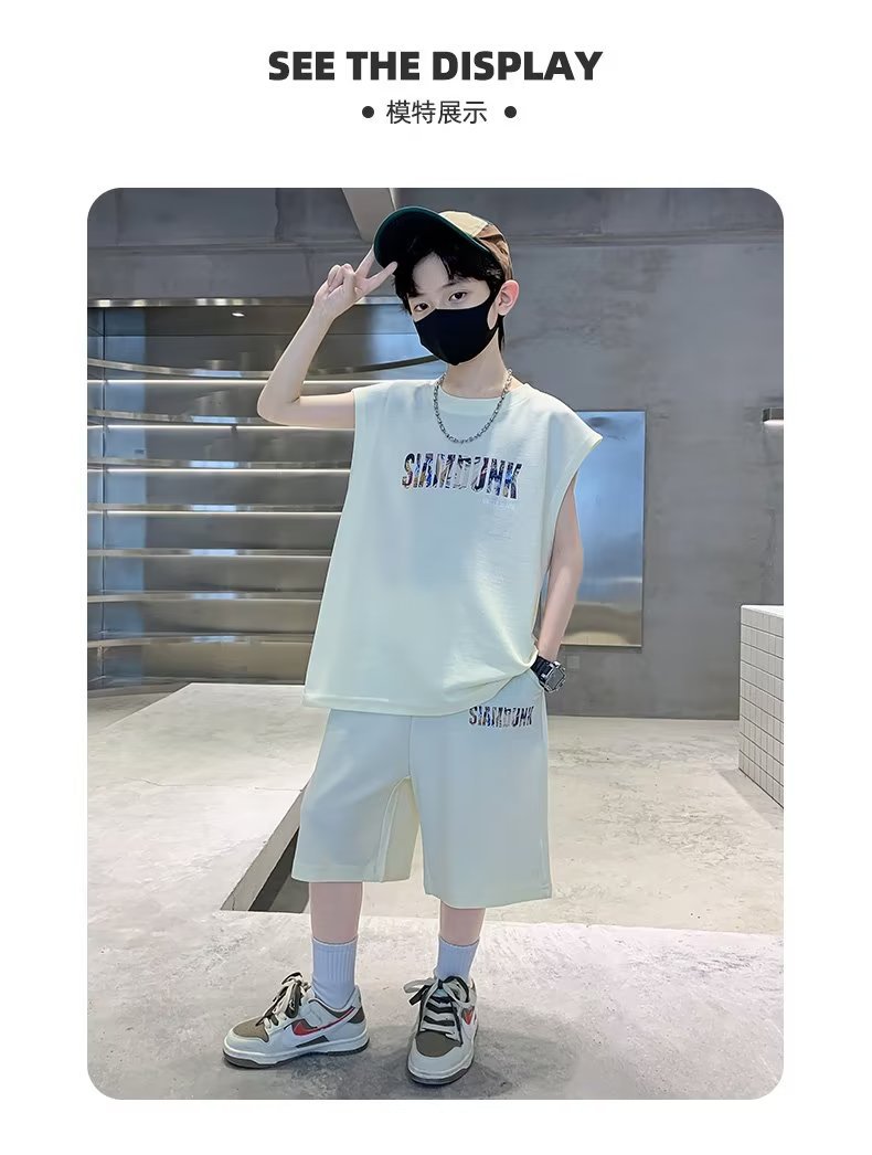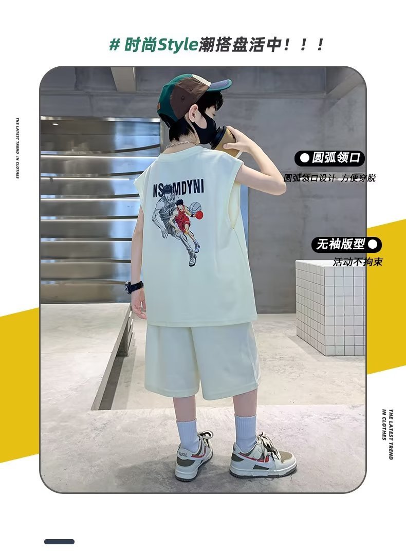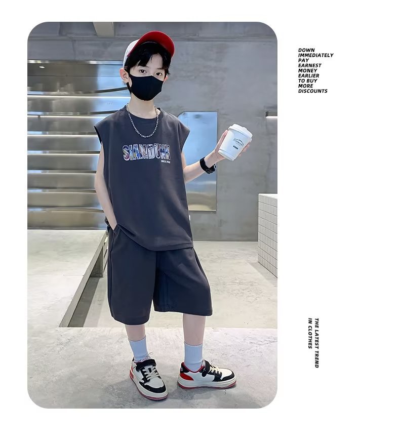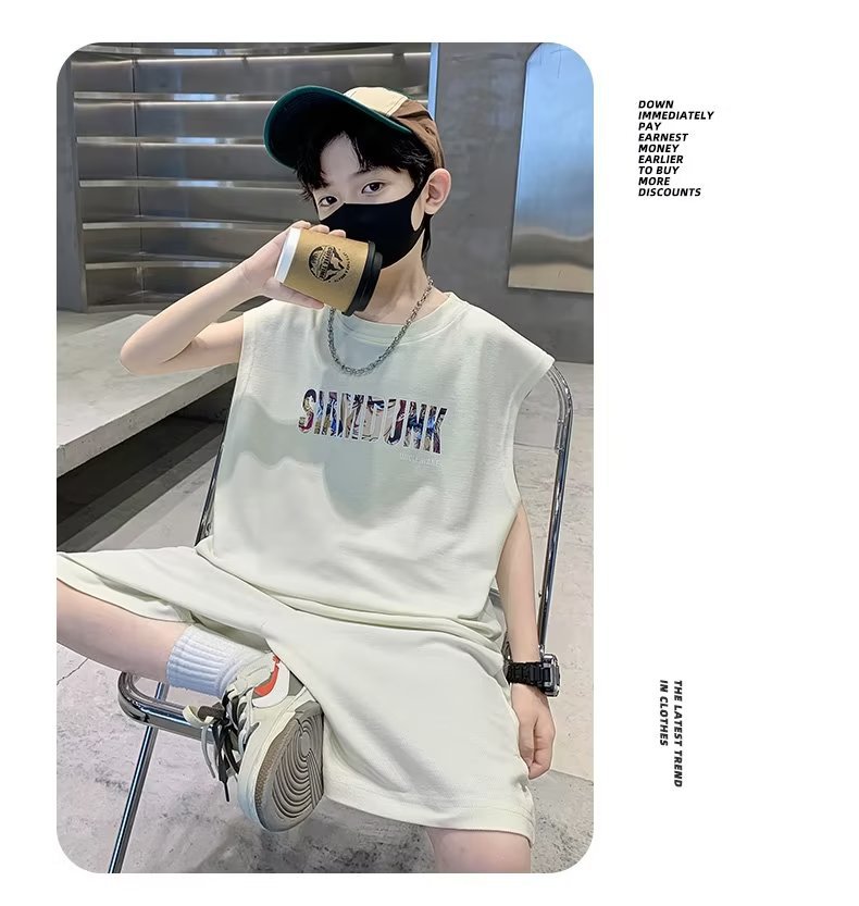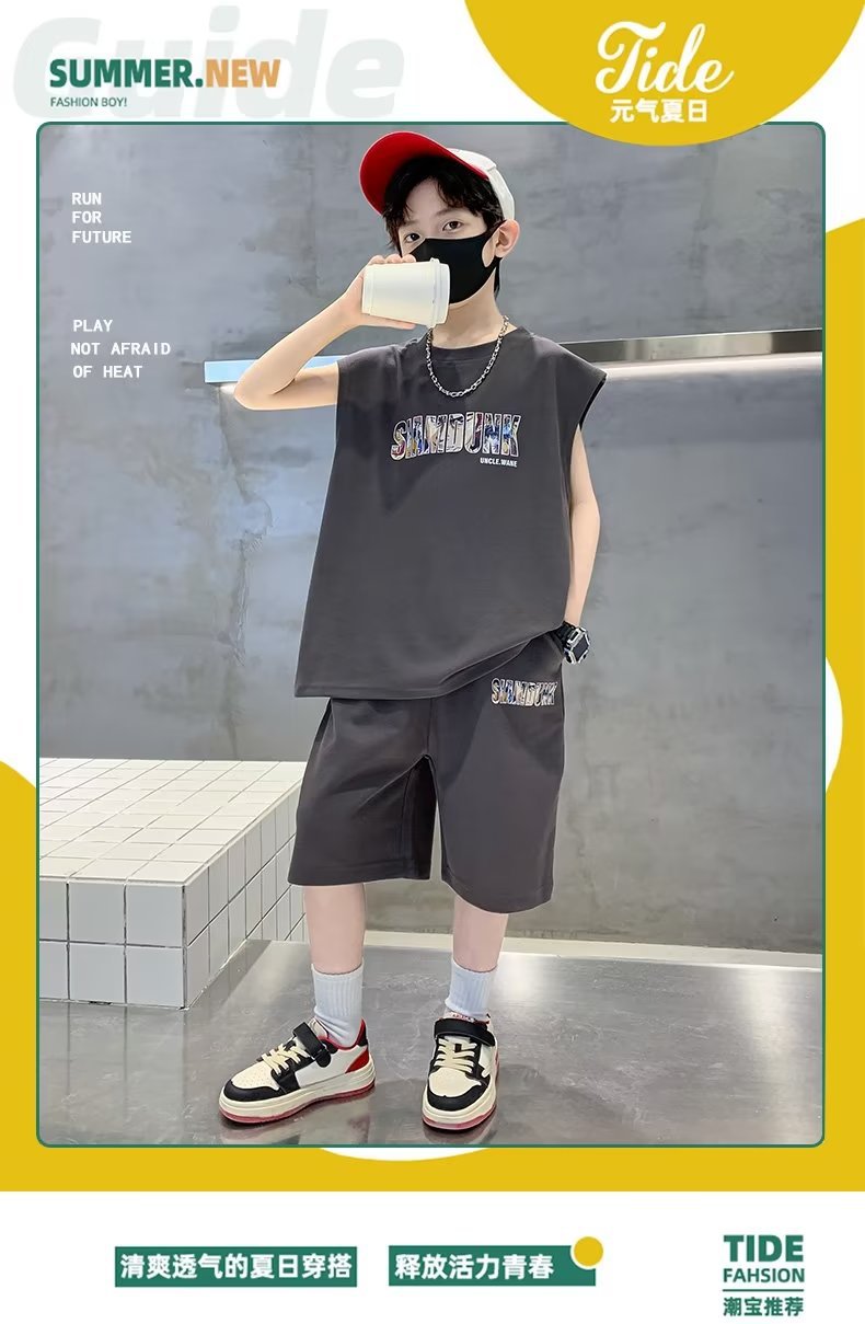 남학생 여름 세트 2023 년 새 어린이 스포츠 반바지 대형 어린이 얇은 반팔 소년 캐주얼 조끼 트렌디스토어 가기
