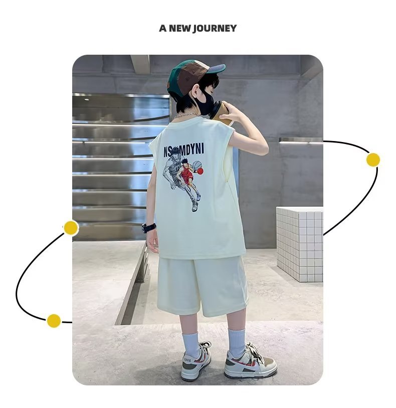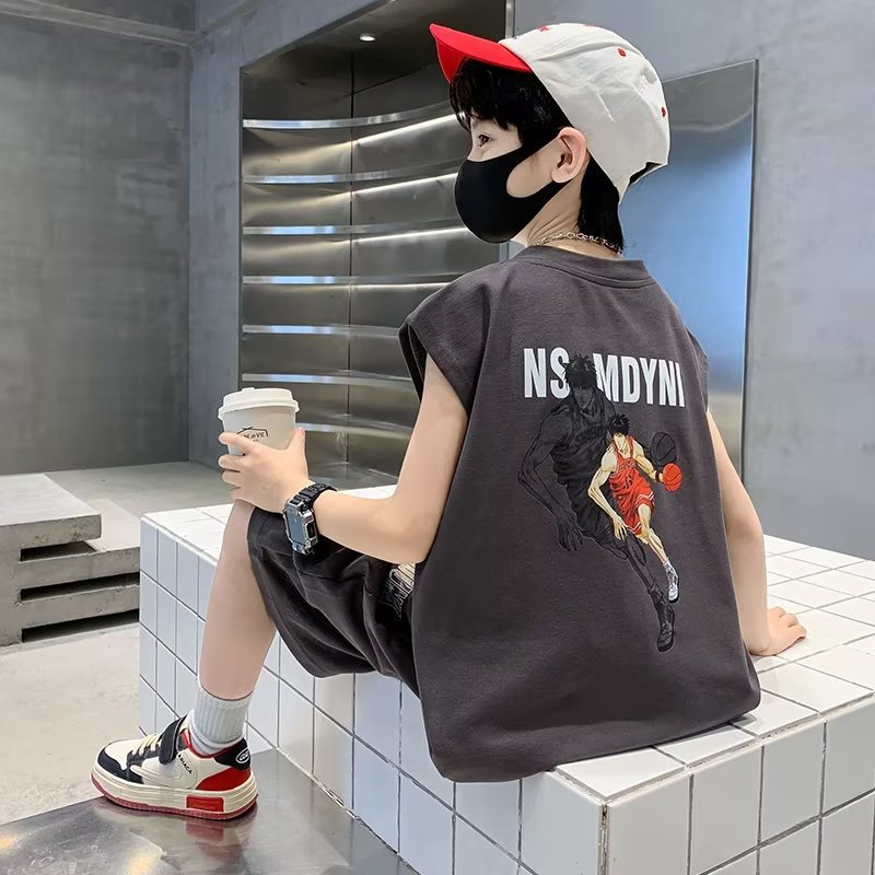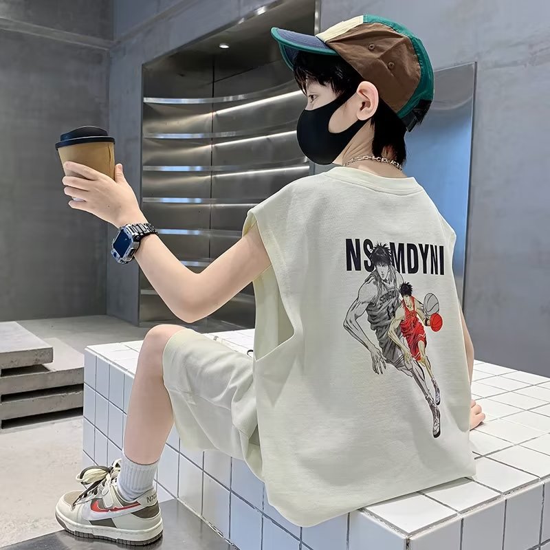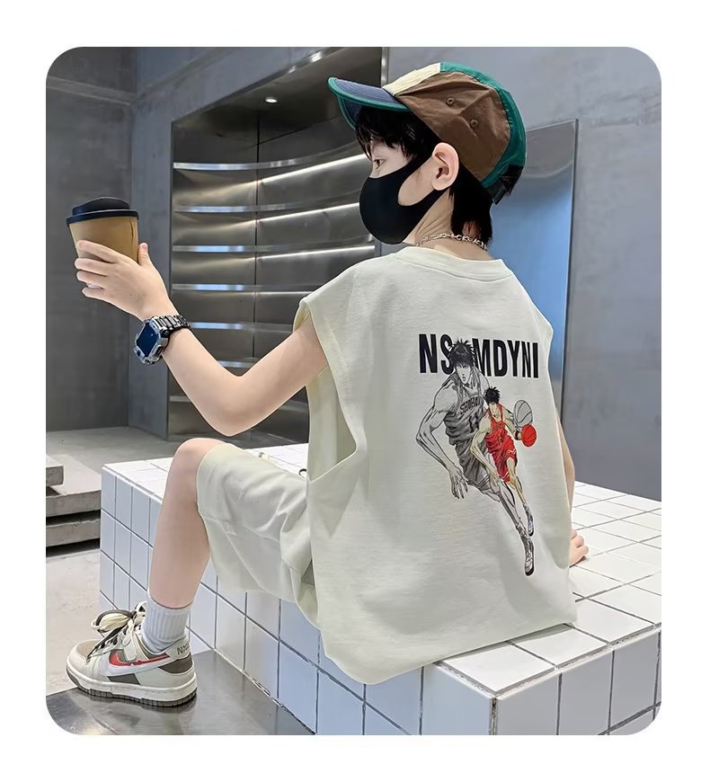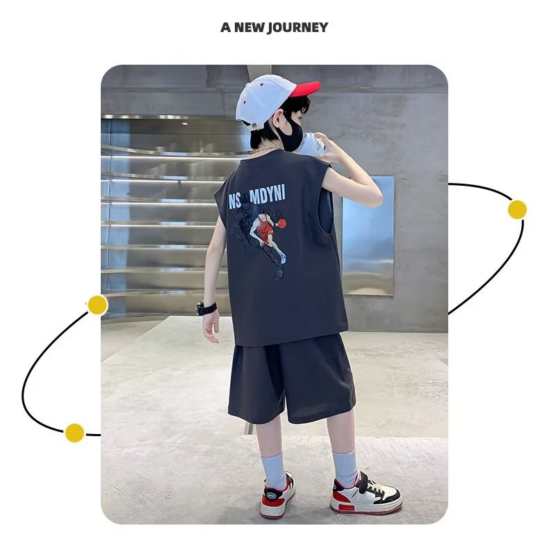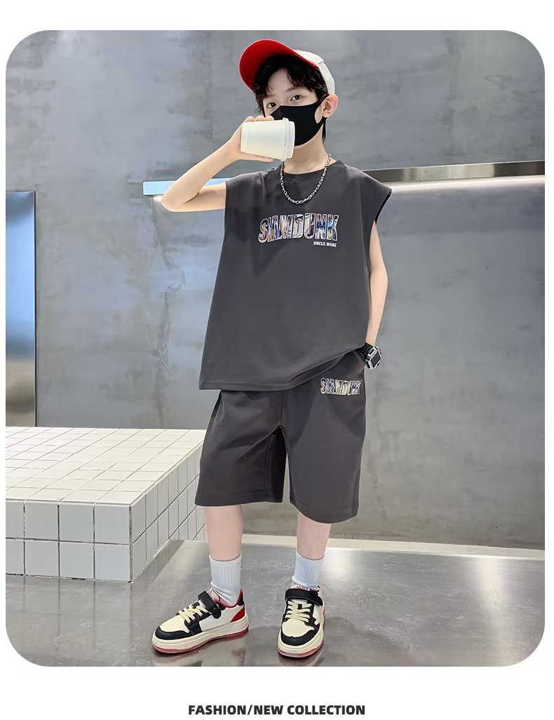 남학생 여름 세트 2023 년 새 어린이 스포츠 반바지 대형 어린이 얇은 반팔 소년 캐주얼 조끼 트렌디스토어 가기