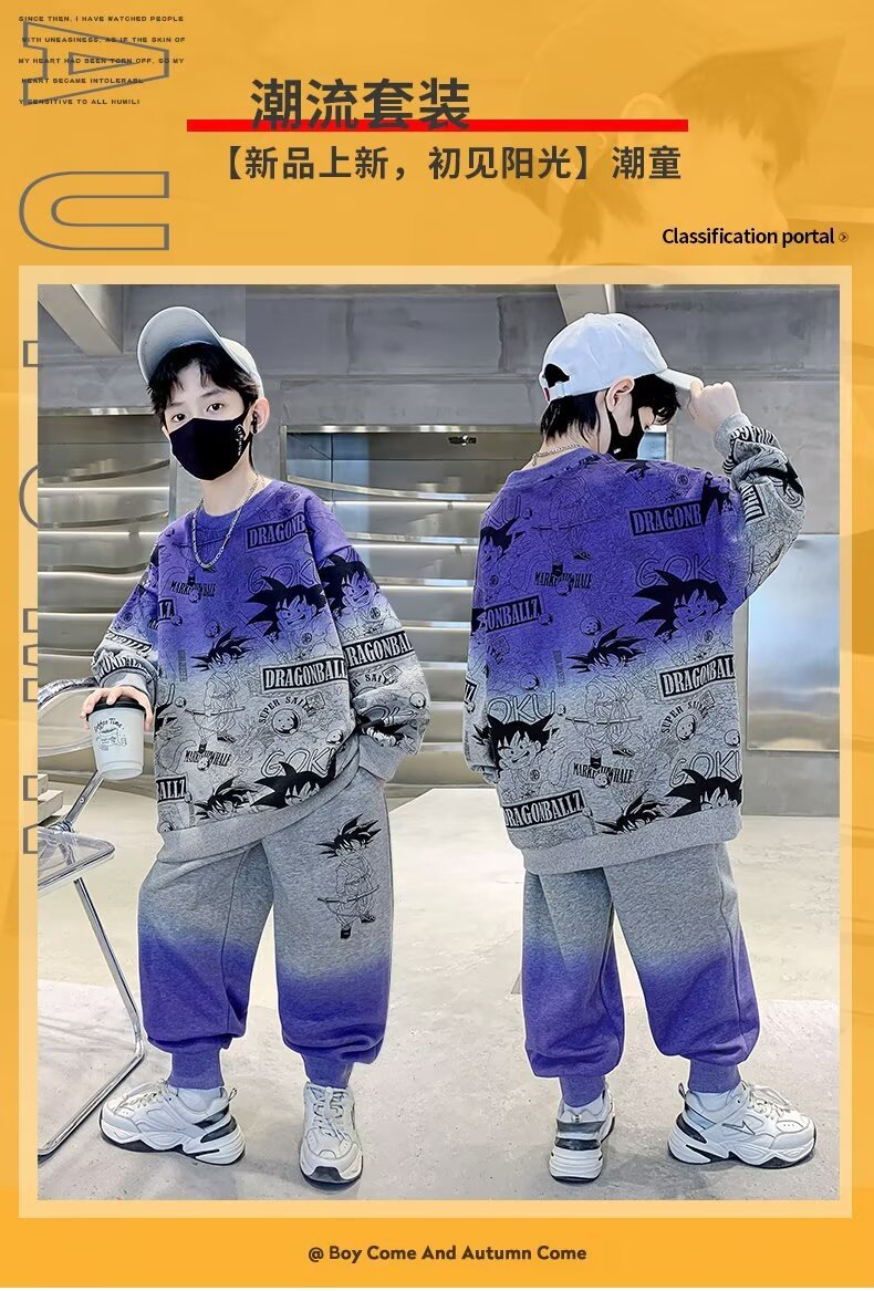 이피 잘 생긴 소년 가을 조끼 세트 만화 우콩 2024 새로운 어린이 튀긴 거리 운동복 봄과 가을 소년 조수스토어 가기