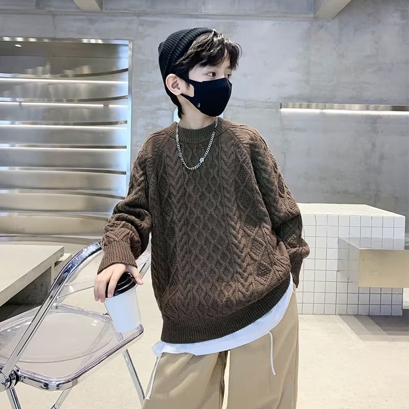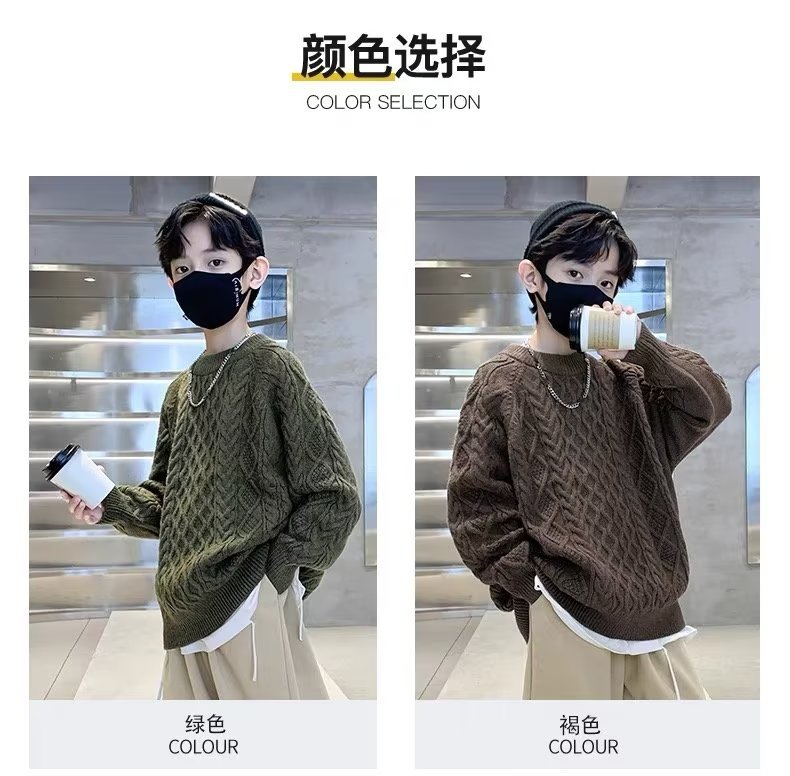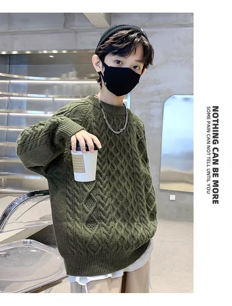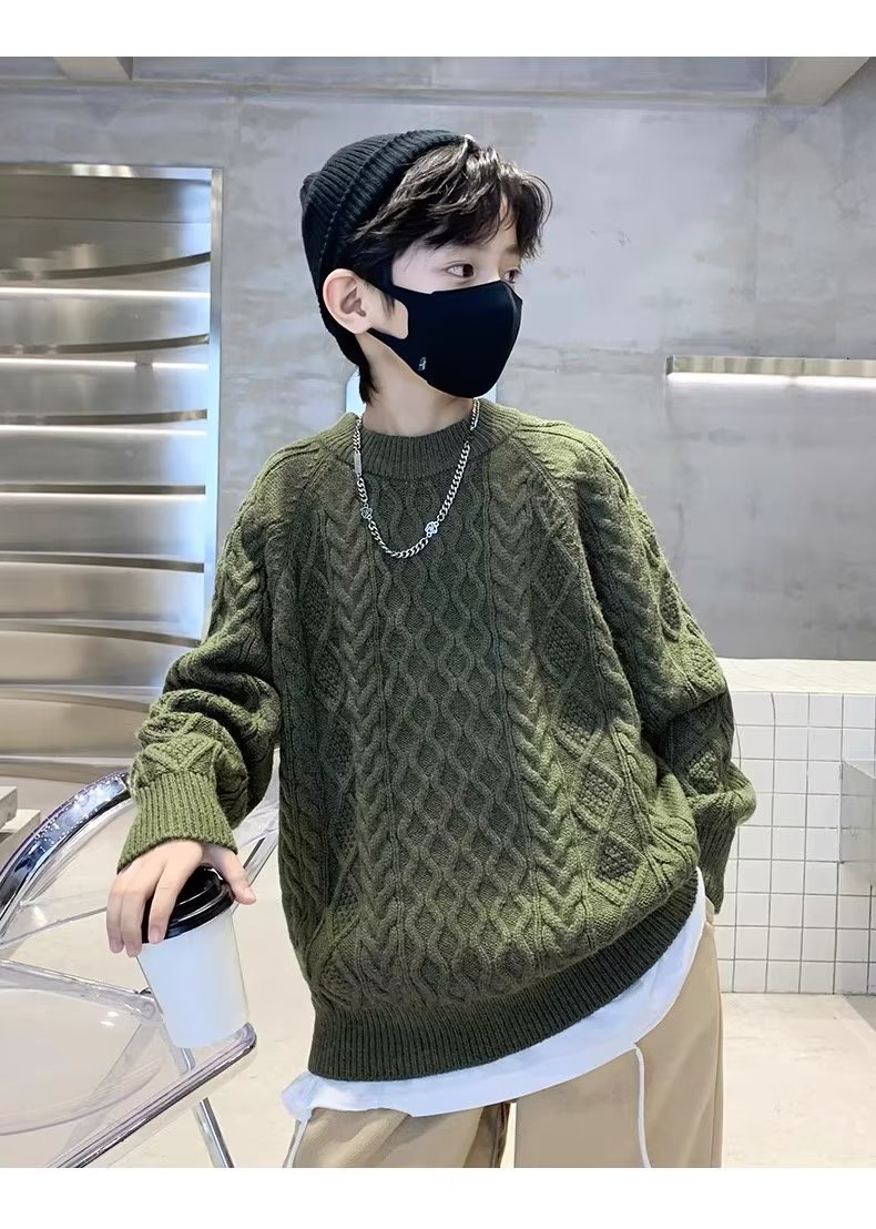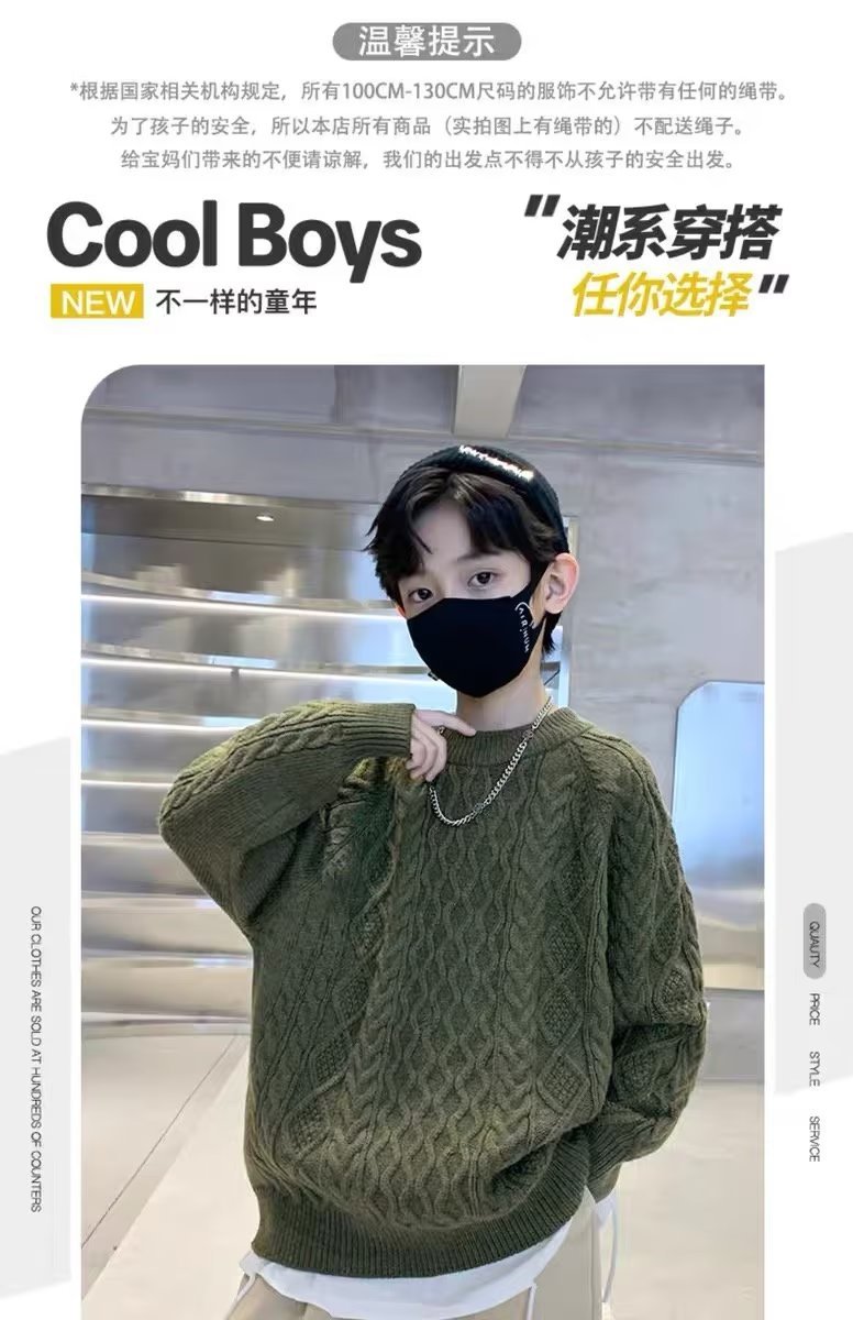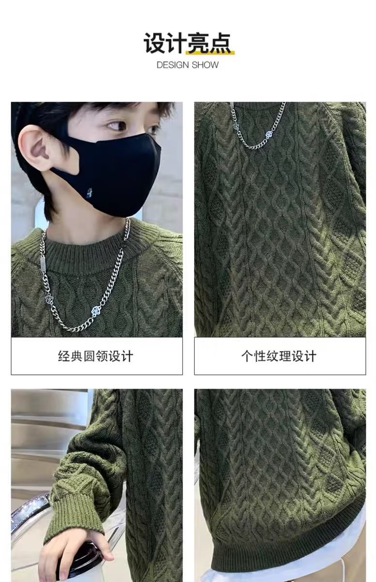 소년의 스웨터 풀오버 가을 2023 새로운 어린이의 봄과 가을 두꺼운 니트 스웨터 빅 보이의 겨울 패션