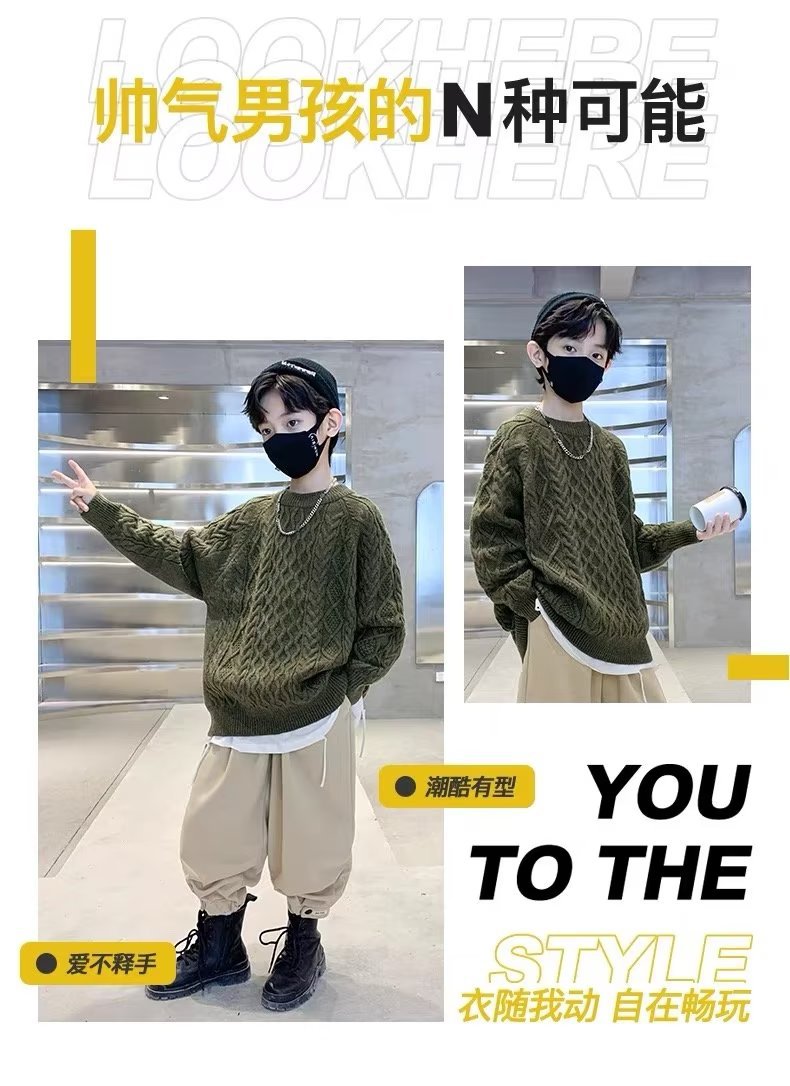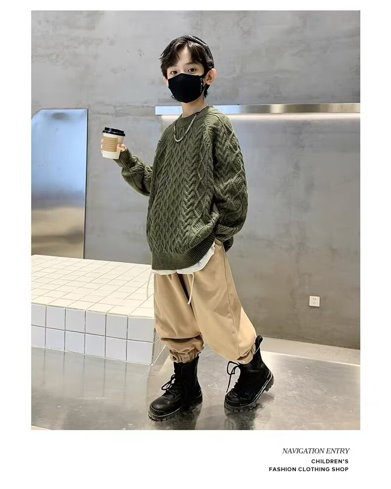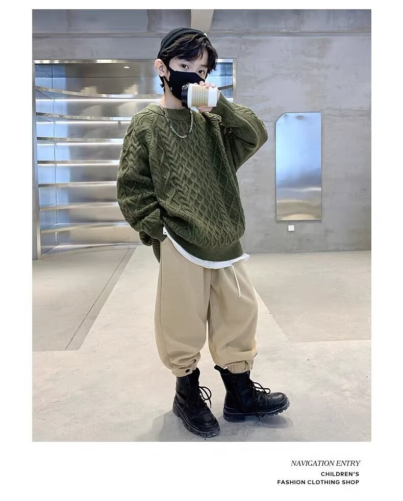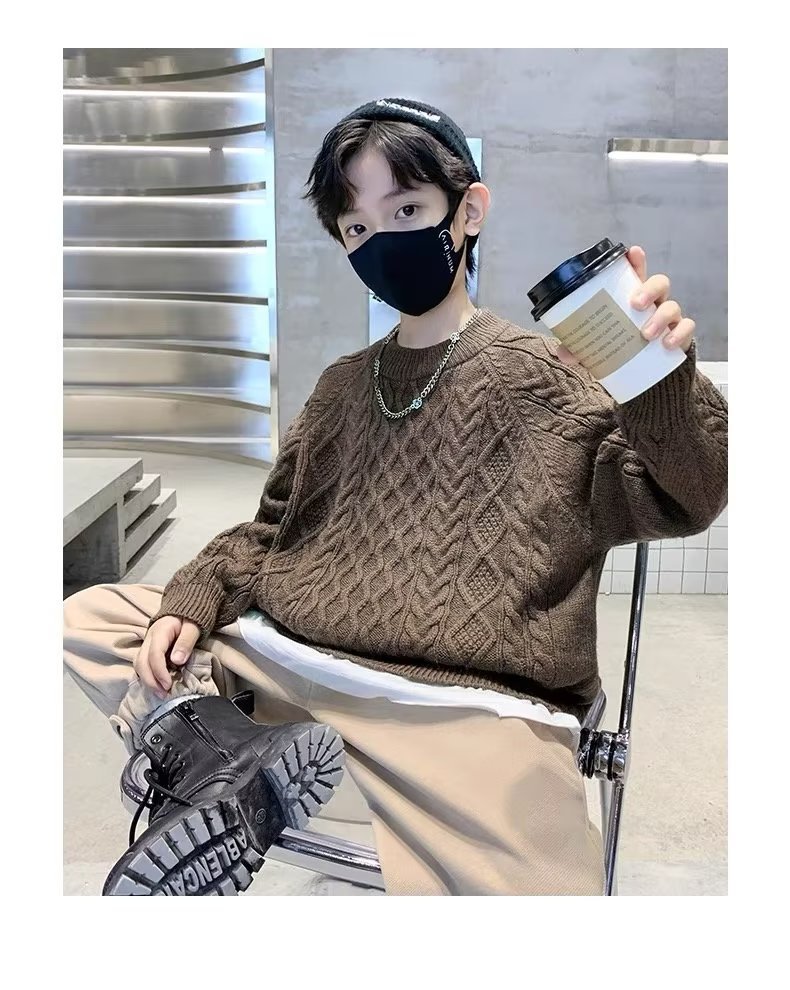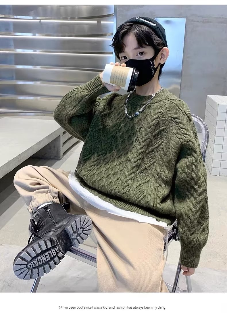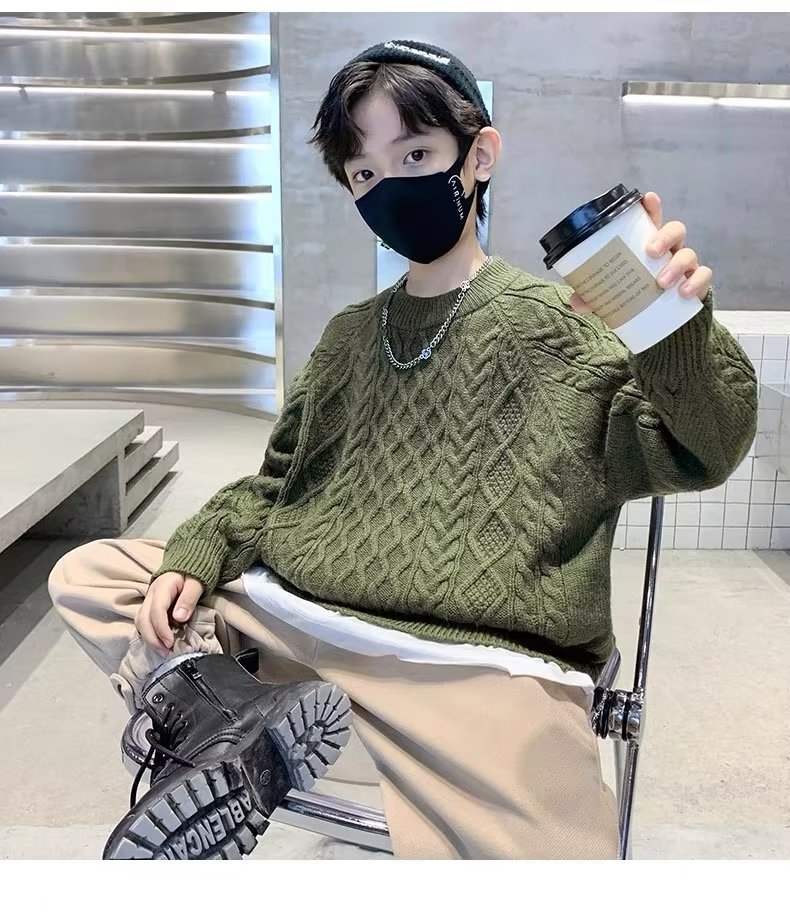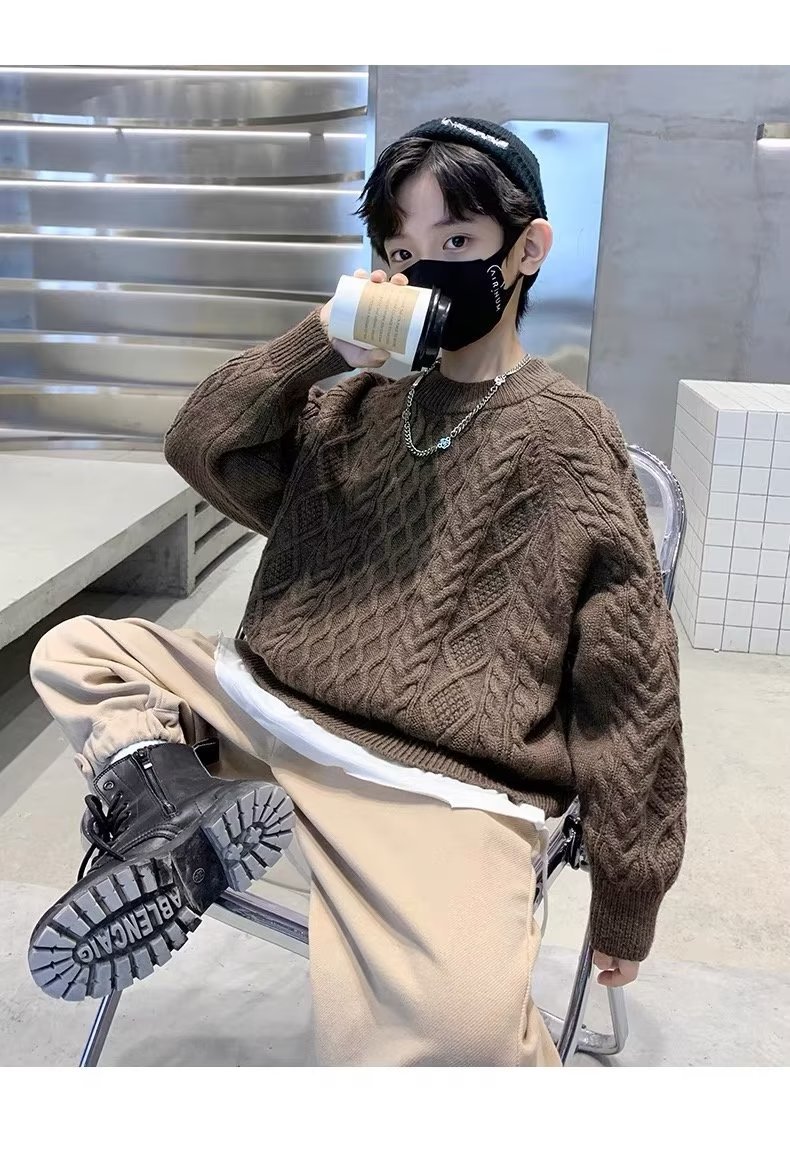 소년의 스웨터 풀오버 가을 2023 새로운 어린이의 봄과 가을 두꺼운 니트 스웨터 빅 보이의 겨울 패션