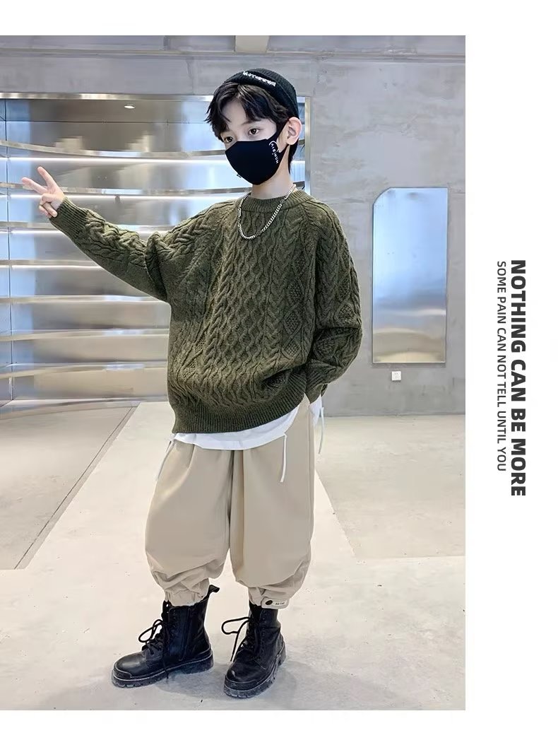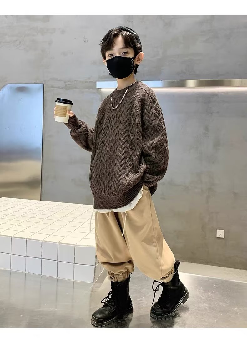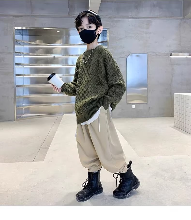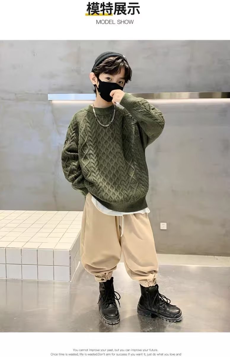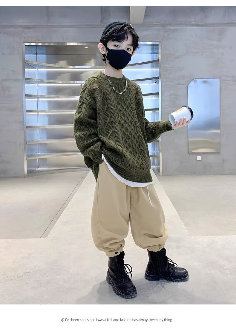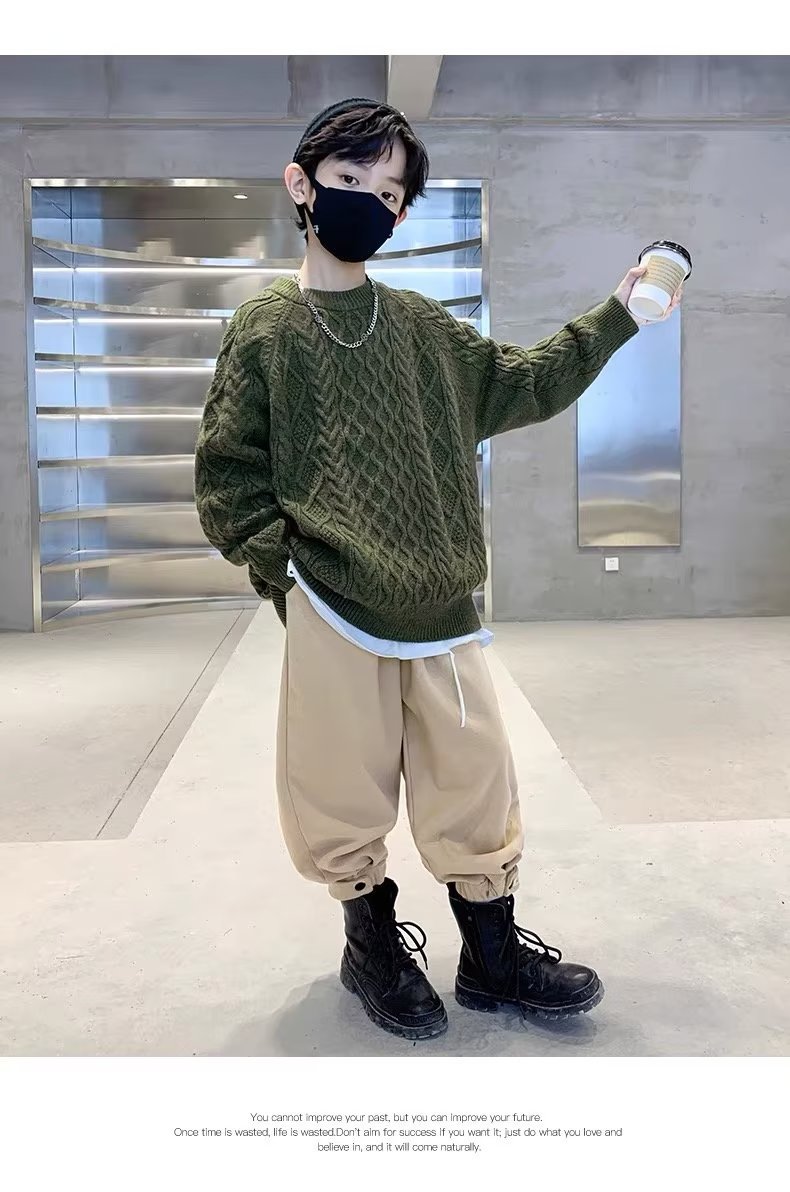 소년의 스웨터 풀오버 가을 2023 새로운 어린이의 봄과 가을 두꺼운 니트 스웨터 빅 보이의 겨울 패션