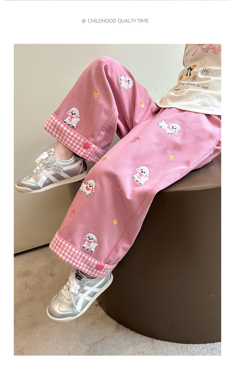 소녀의 바지 봄과 가을 2025 새로운 아기 소녀 만화 자수 봄 캐주얼 바지 소녀의 스트레이트 와이드 다리 바지스토어 가기