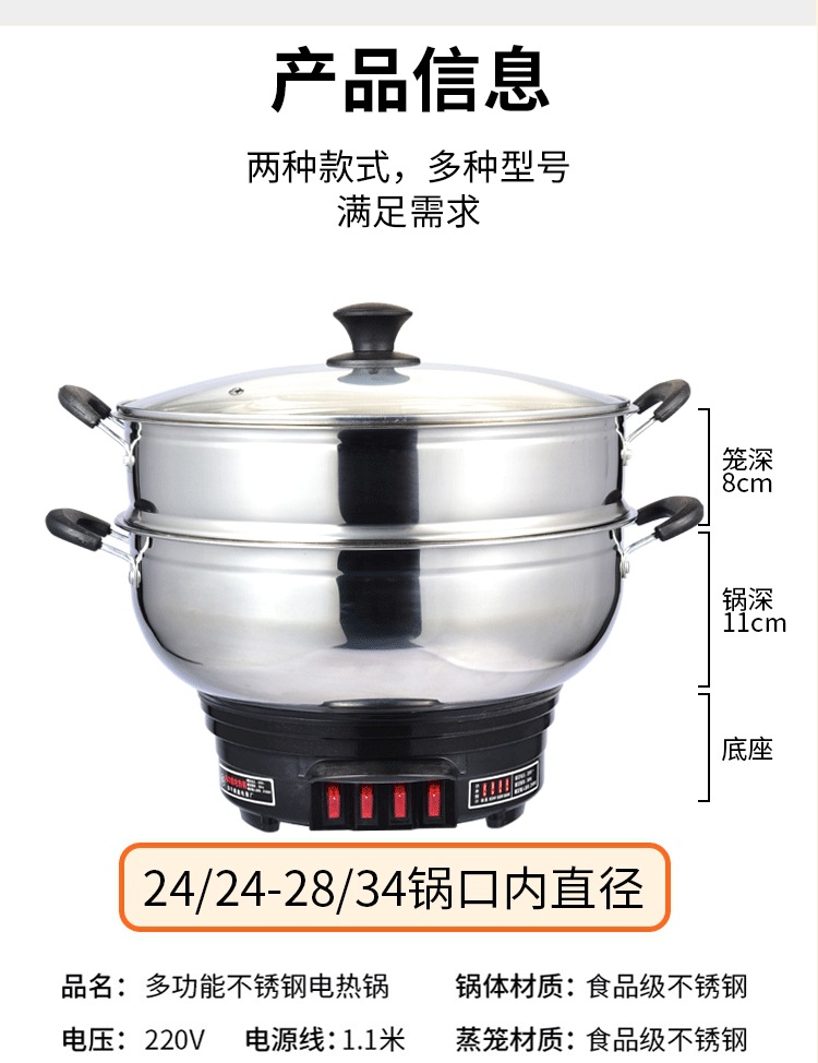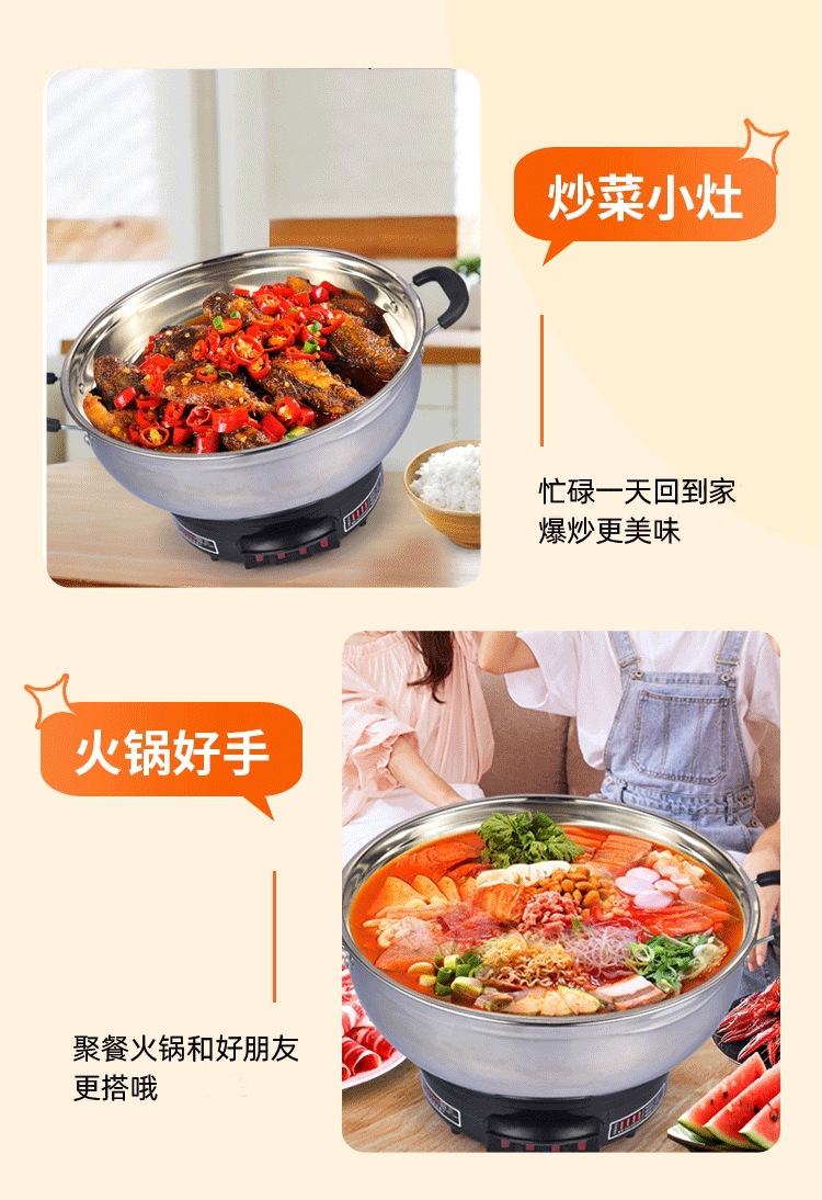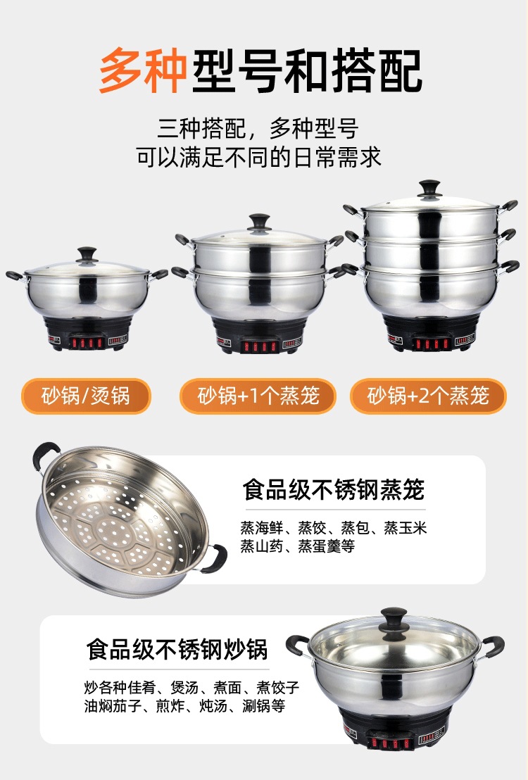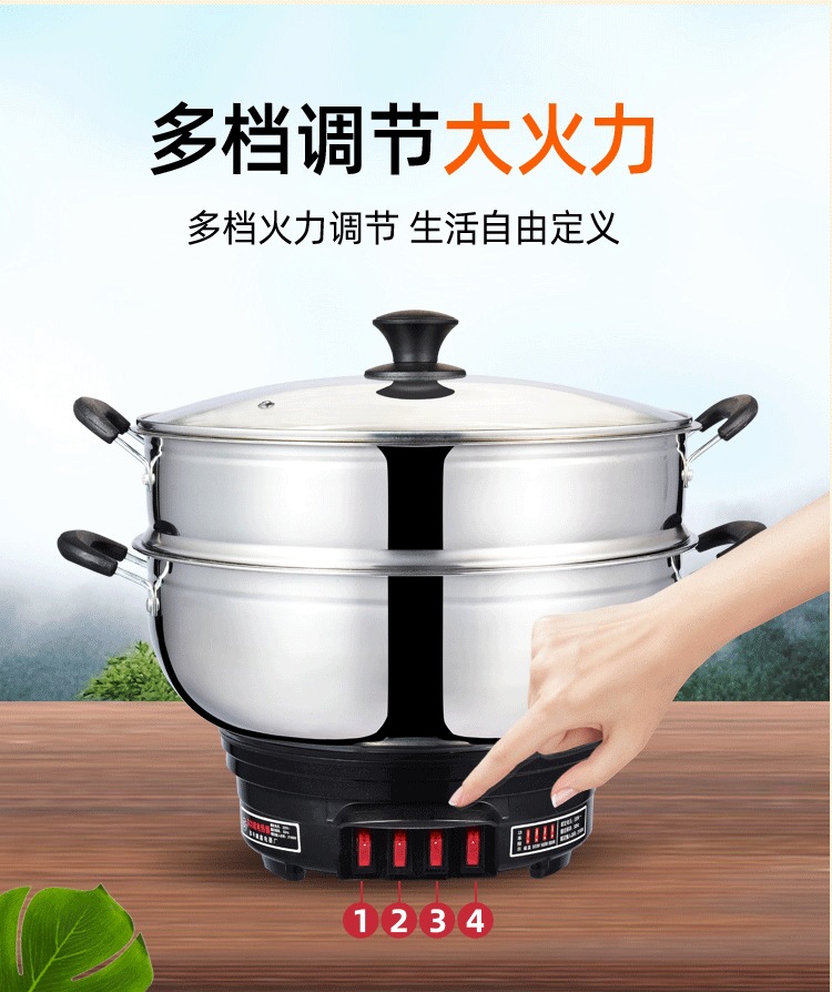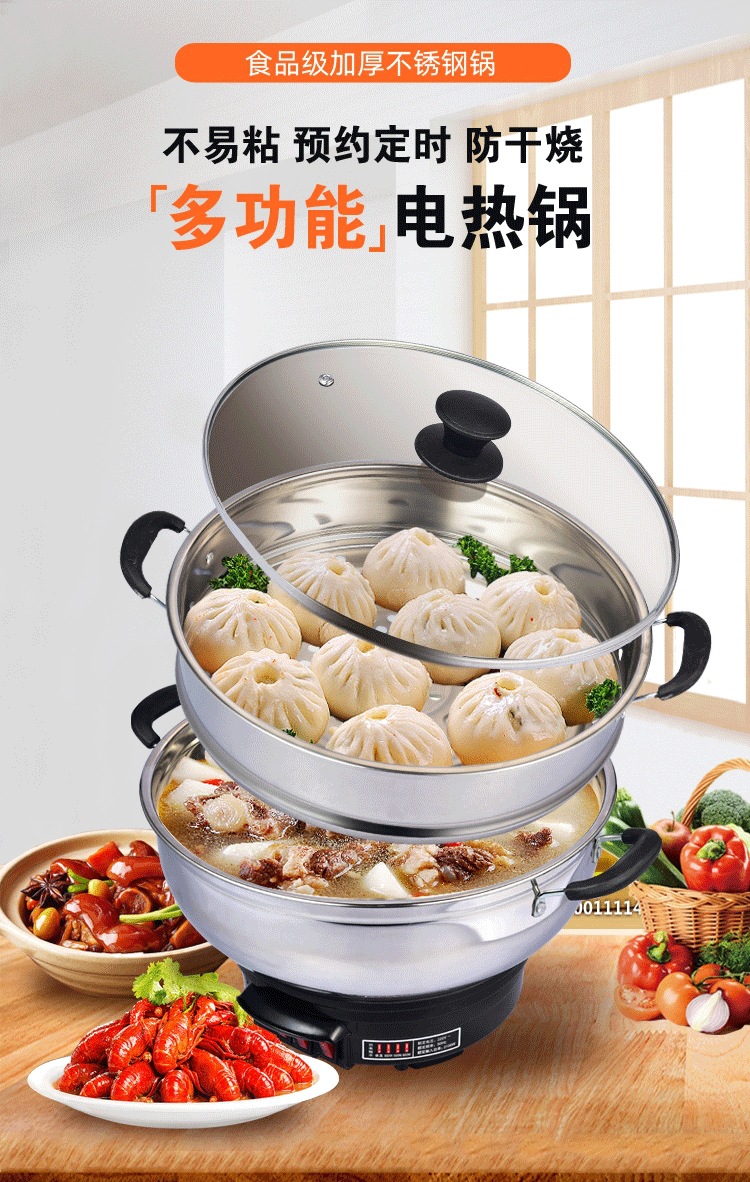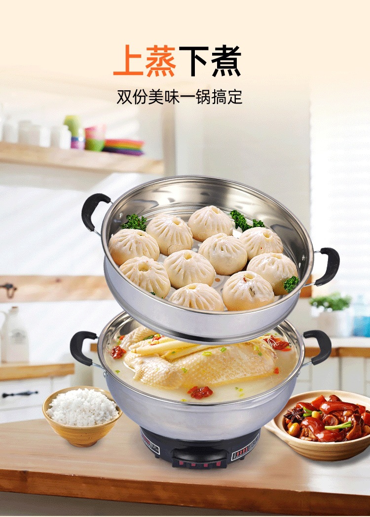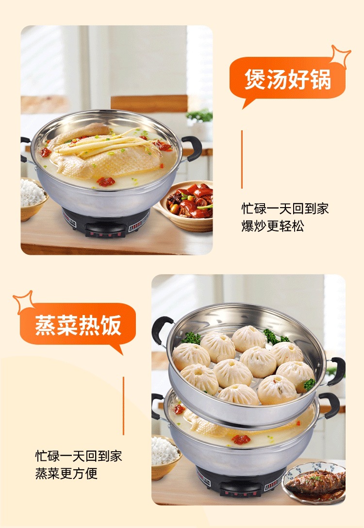 다기능 전기 냄비 스테인레스 스틸 볶음 냄비 전기 기선 전기 요리 냄비 냄비 가정용 고출력 전기 냄비 대용량스토어 가기