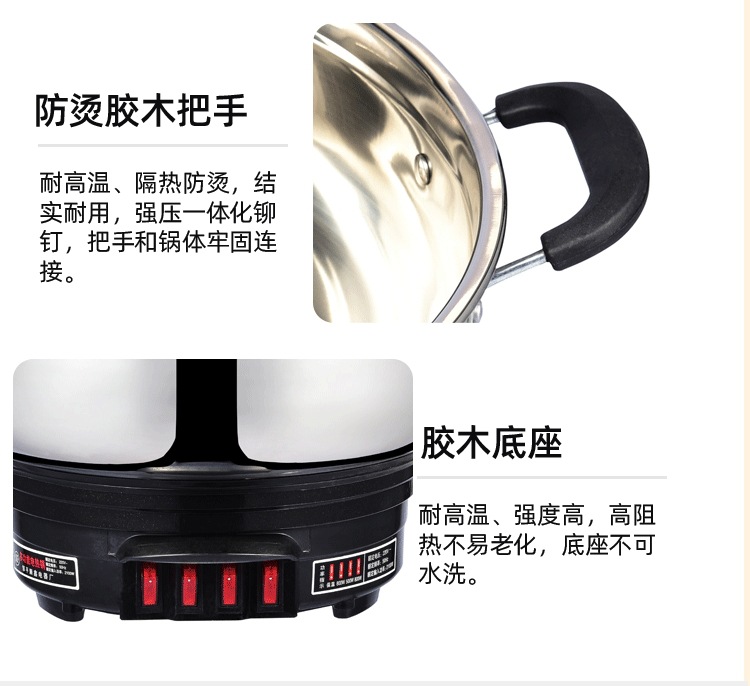 다기능 전기 냄비 스테인레스 스틸 볶음 냄비 전기 기선 전기 요리 냄비 냄비 가정용 고출력 전기 냄비 대용량