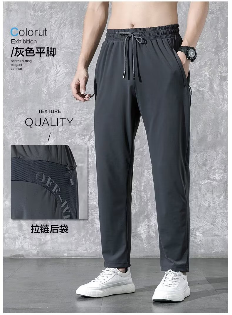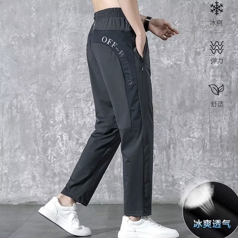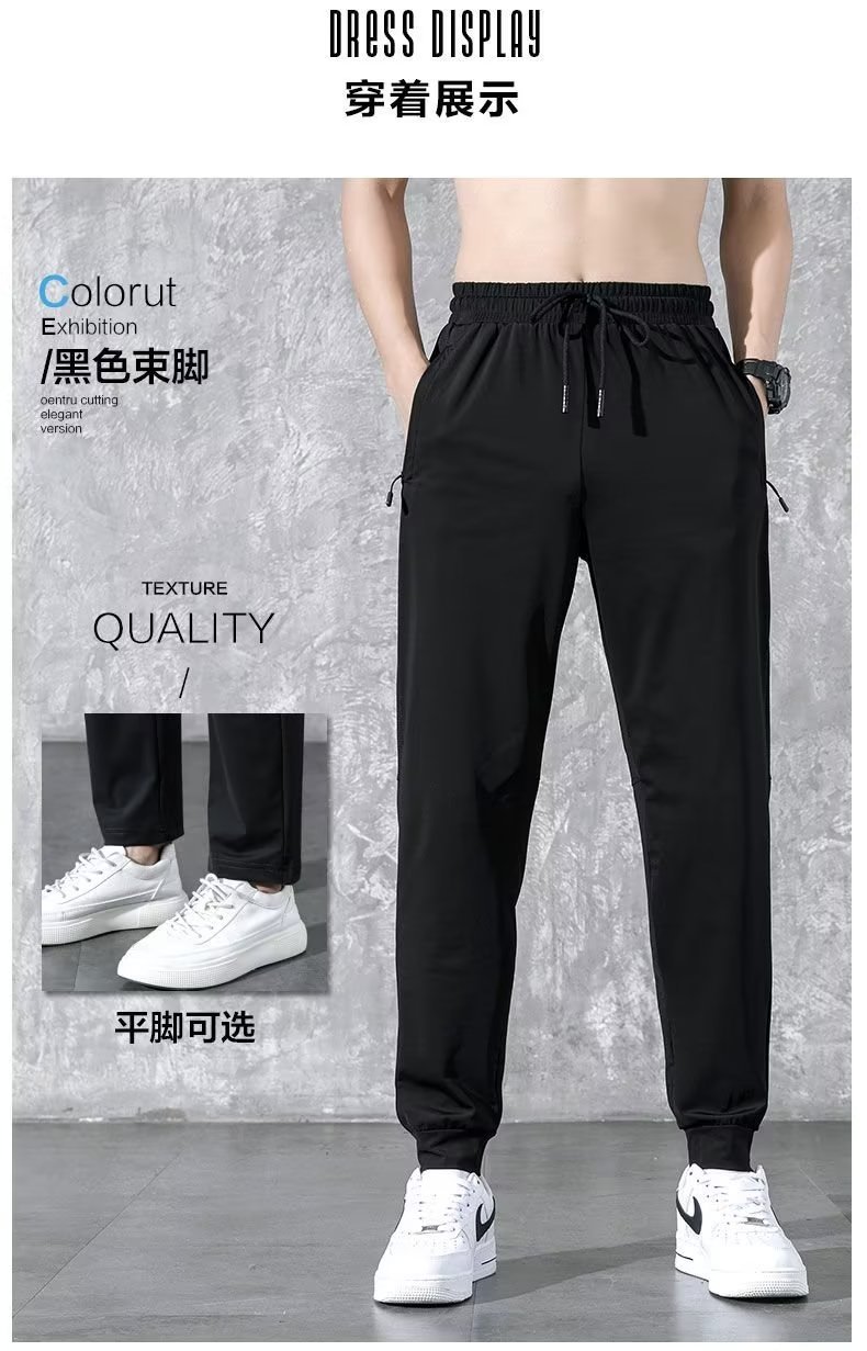 봄 올매치 작은 발 아이스 실크 캐주얼 바지 남자 패션 느슨한 스포츠 바지 바지 남자의 캐주얼 블랙 트렌디 바지스토어 가기
