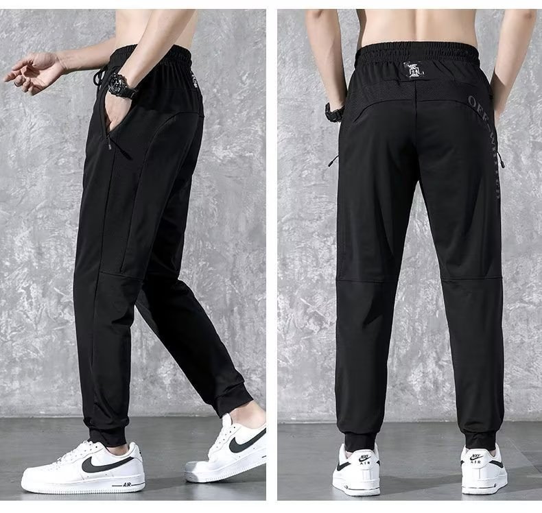 봄 올매치 작은 발 아이스 실크 캐주얼 바지 남자 패션 느슨한 스포츠 바지 바지 남자의 캐주얼 블랙 트렌디 바지