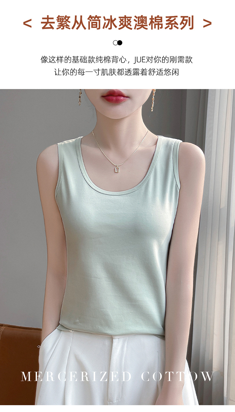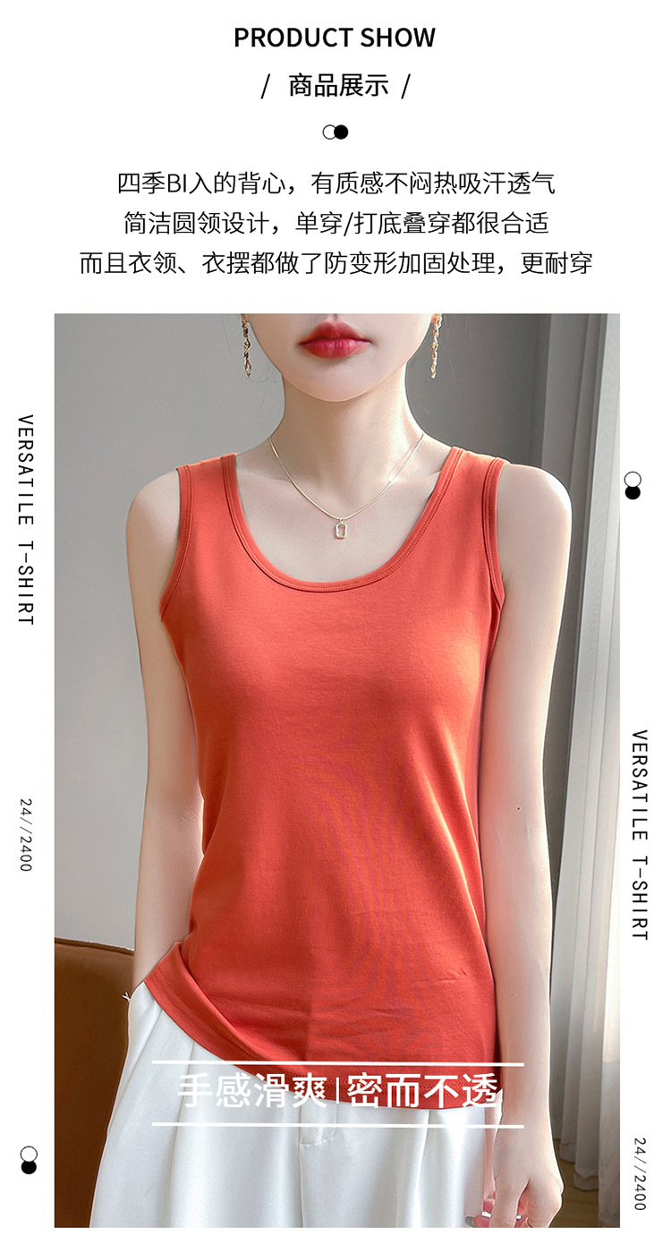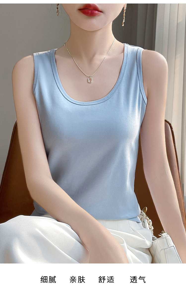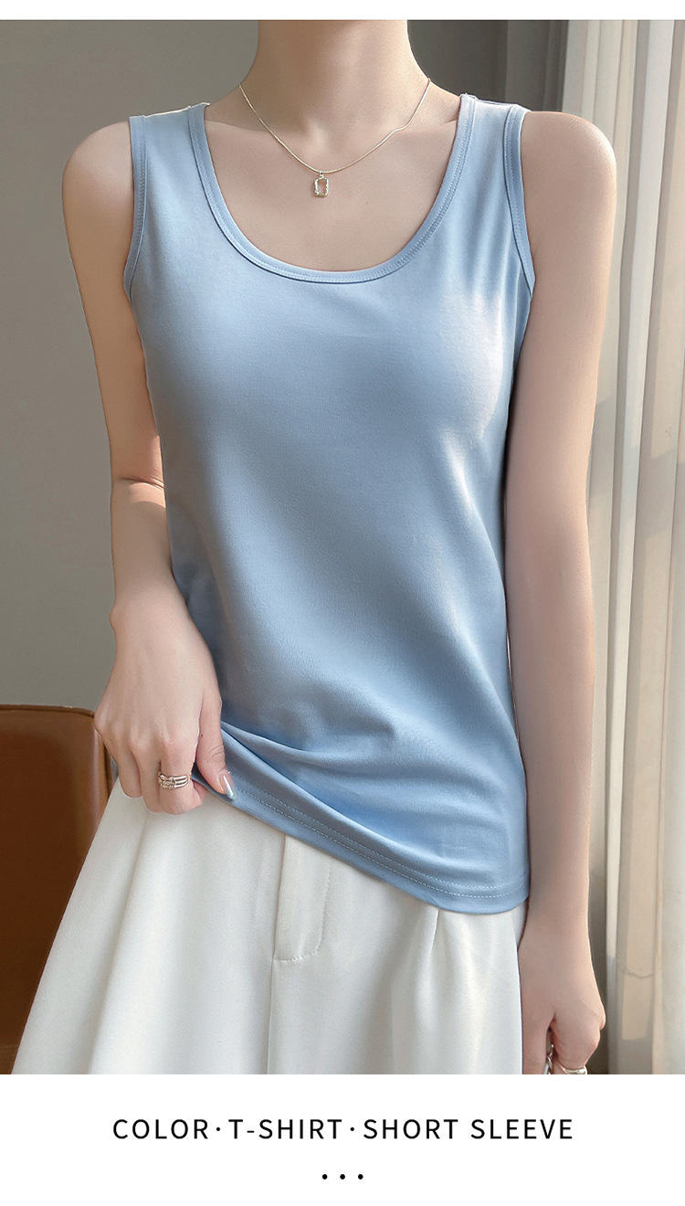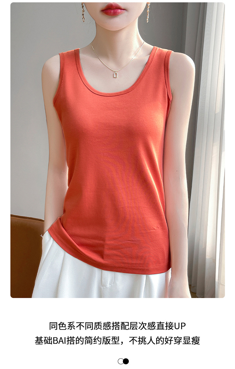 25 여름 여성용 코튼 조끼 라운드 넥 코튼 루즈 조끼 기본 솔리드 컬러 슬링과 민소매 탑