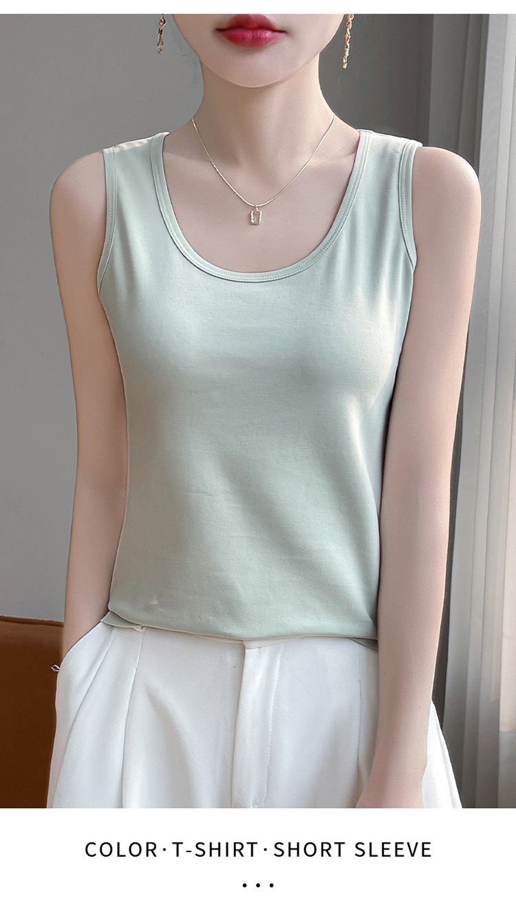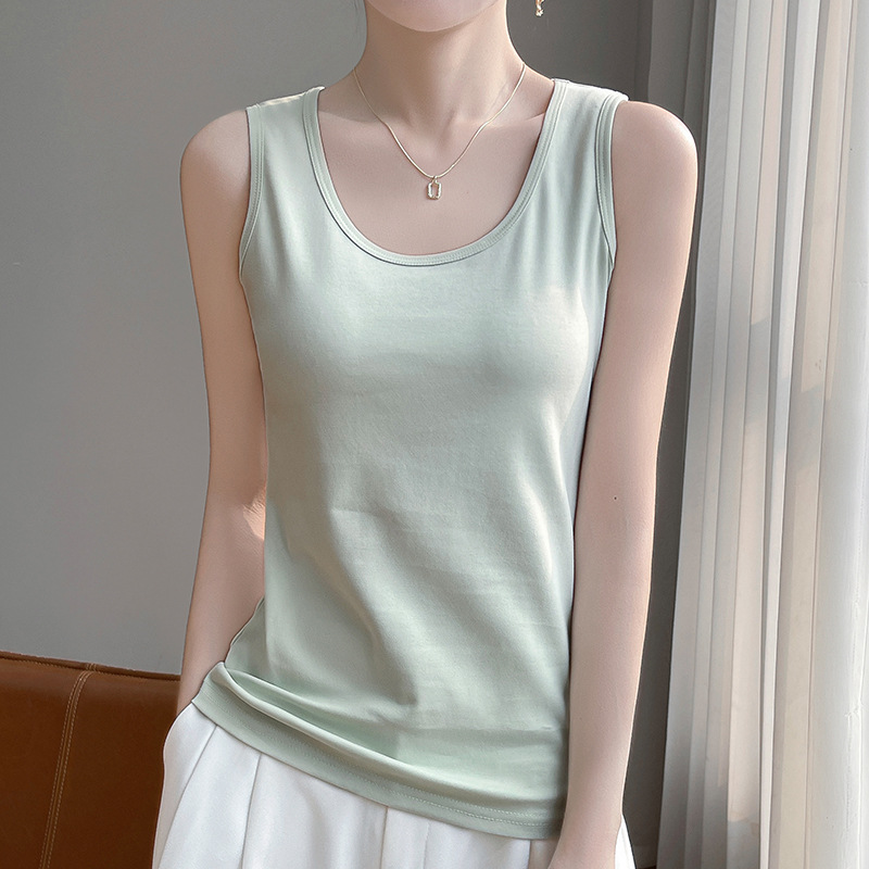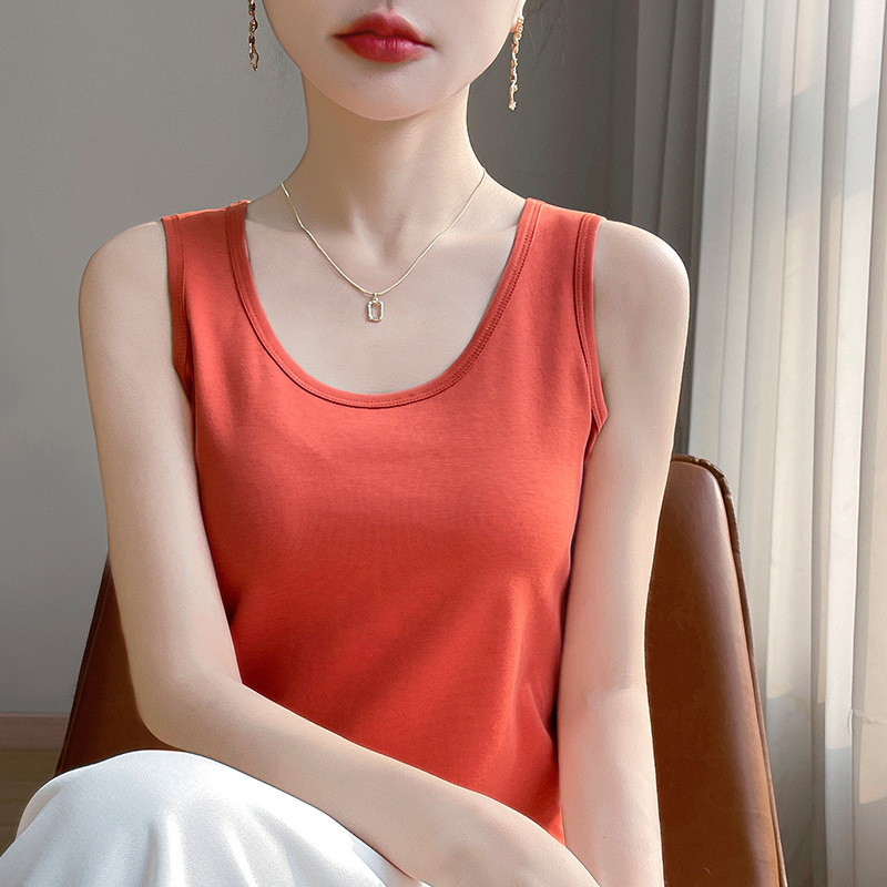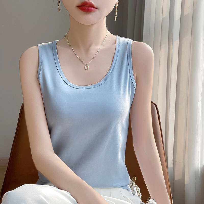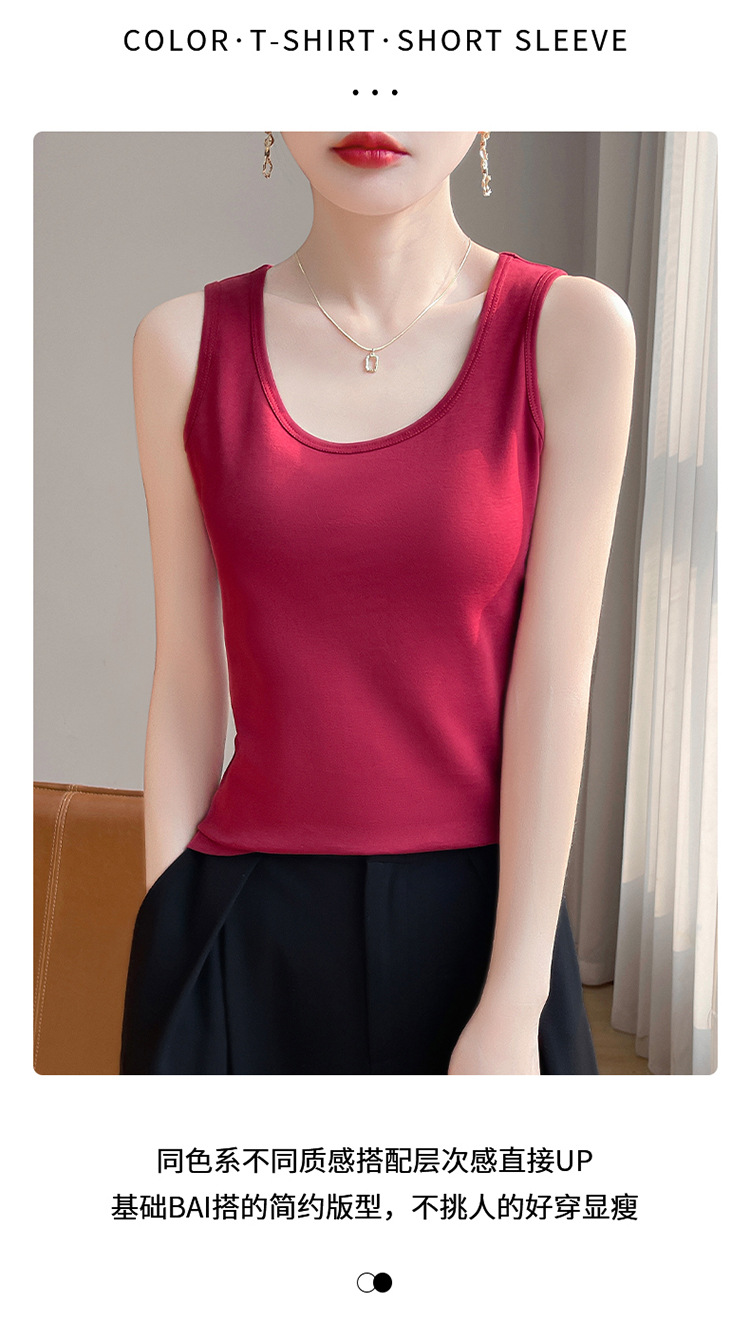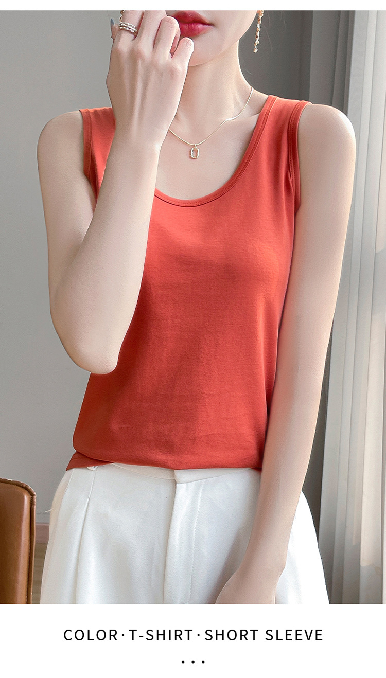 25 여름 여성용 코튼 조끼 라운드 넥 코튼 루즈 조끼 기본 솔리드 컬러 슬링과 민소매 탑