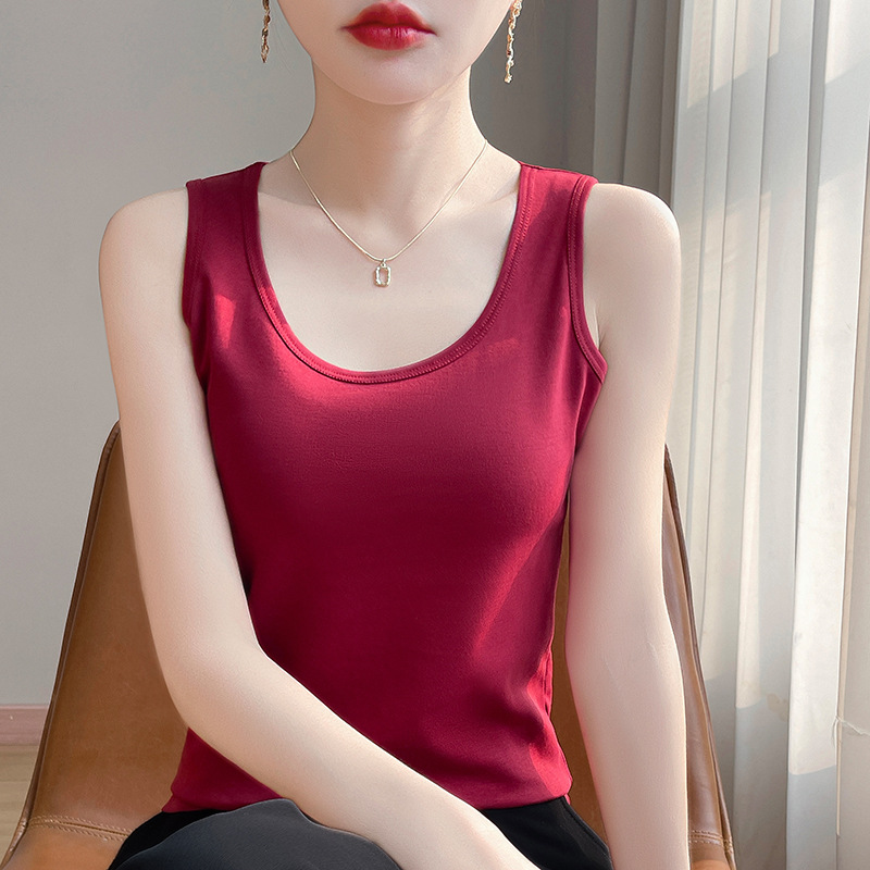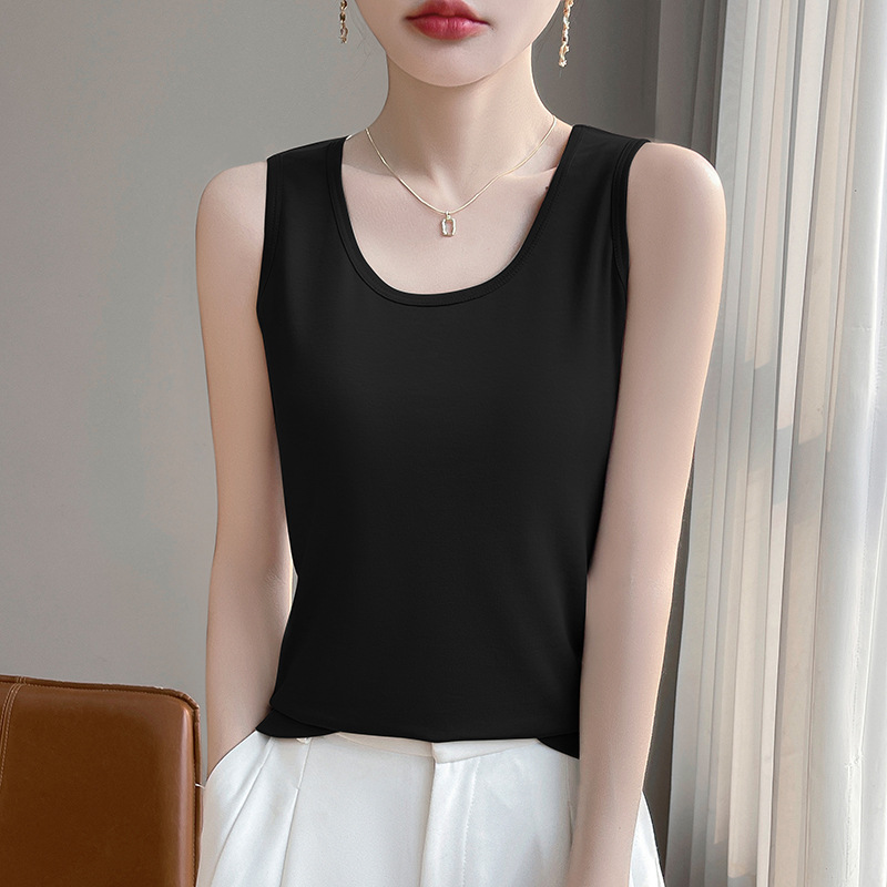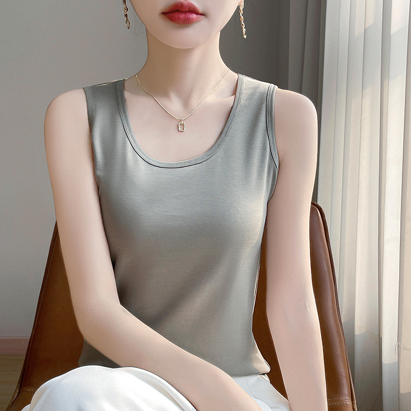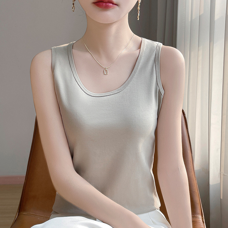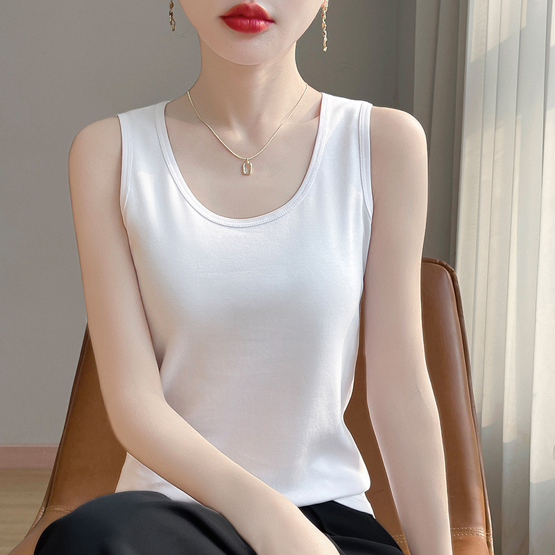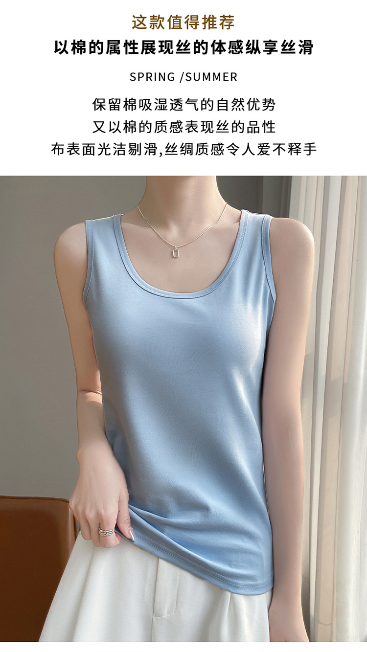 25 여름 여성용 코튼 조끼 라운드 넥 코튼 루즈 조끼 기본 솔리드 컬러 슬링과 민소매 탑
