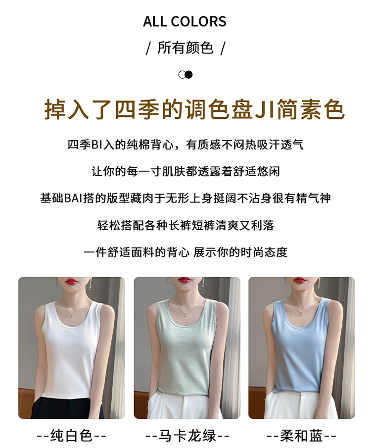 25 여름 여성용 코튼 조끼 라운드 넥 코튼 루즈 조끼 기본 솔리드 컬러 슬링과 민소매 탑스토어 가기