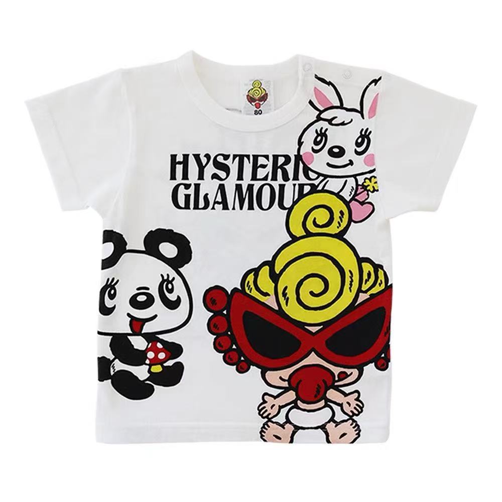 [조기배송] 고급 블랙 슈퍼 2025 여름 트렌드 브랜드 아기젖꼭지 곰과 토끼 반팔 티셔츠 + 6부 레깅스 세트스토어 가기