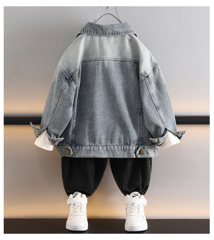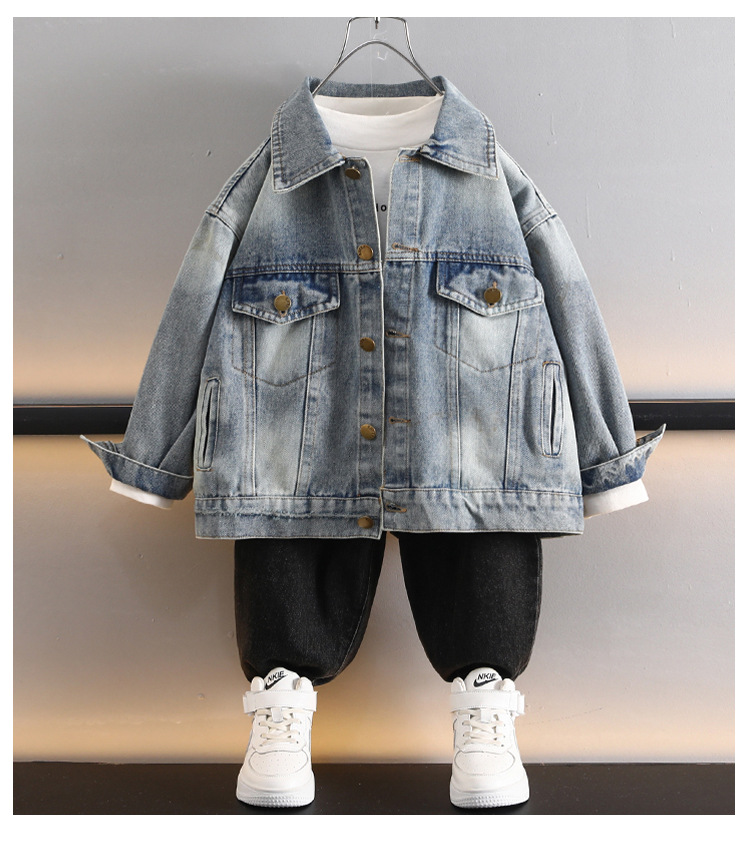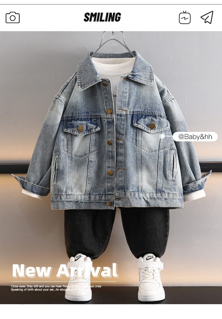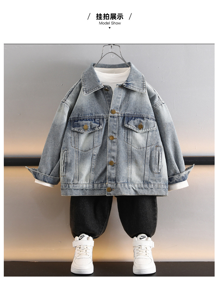 어린이 데님 코트 봄과 가을 2025 새로운 도착 소년 한국 스타일 가을 재킷 탑 아기 옷 가을 옷스토어 가기