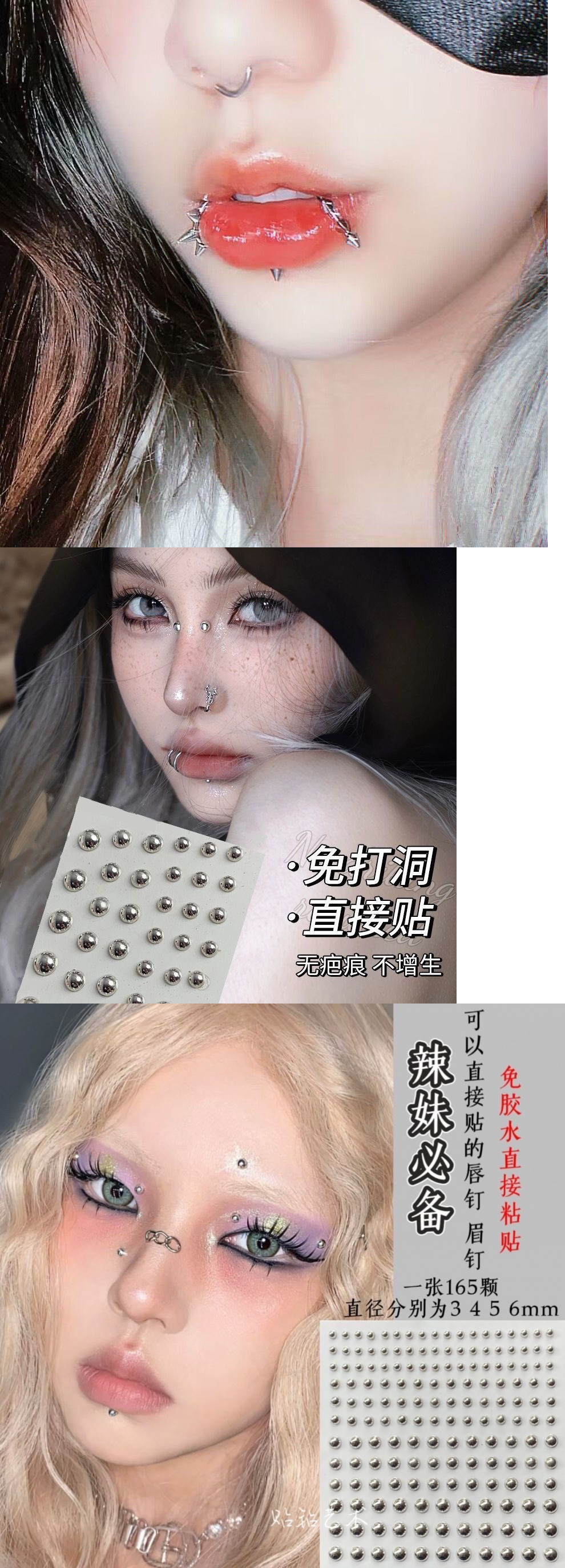 펀치없는 립 네일 립 링 스파이스 소녀 악마 네일 반구 페이스트 귀걸이 귀걸이 네일 립 네일 티타늄 스틸 거짓 립 링