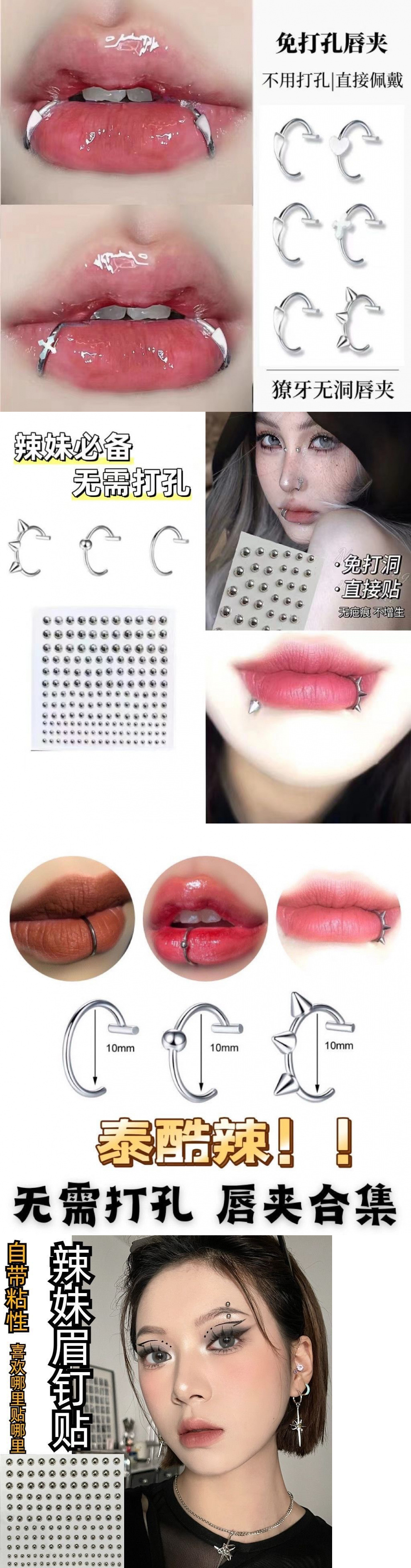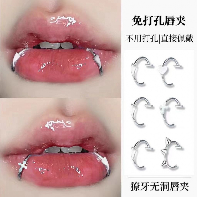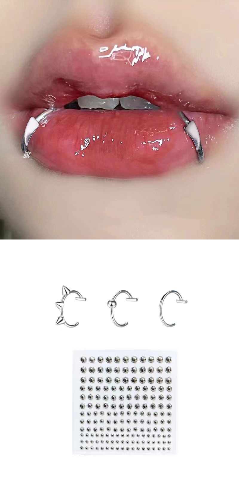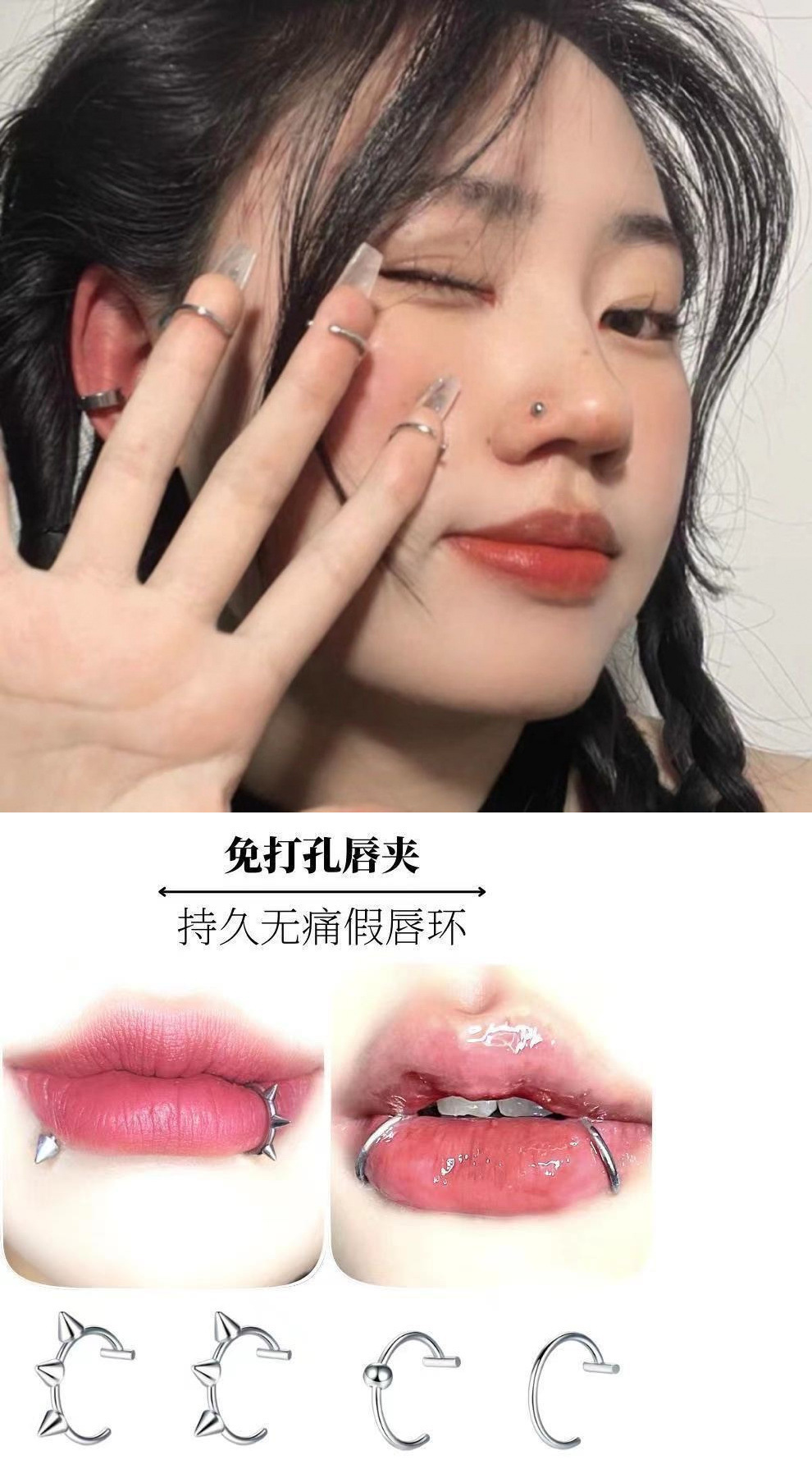 펀치없는 립 네일 립 링 스파이스 소녀 악마 네일 반구 페이스트 귀걸이 귀걸이 네일 립 네일 티타늄 스틸 거짓 립 링스토어 가기