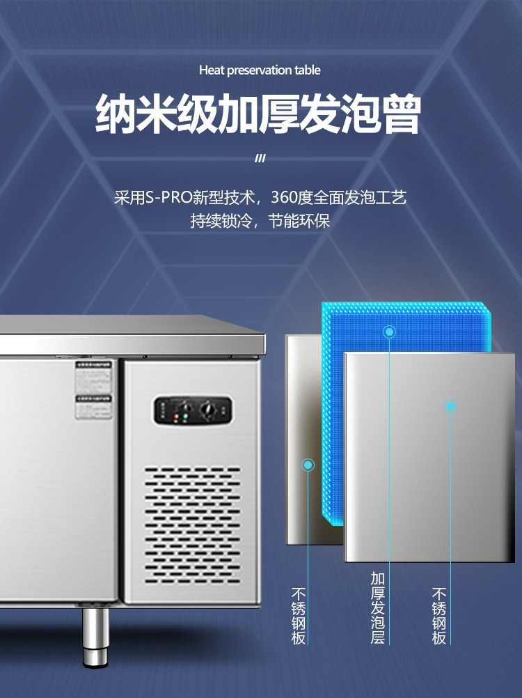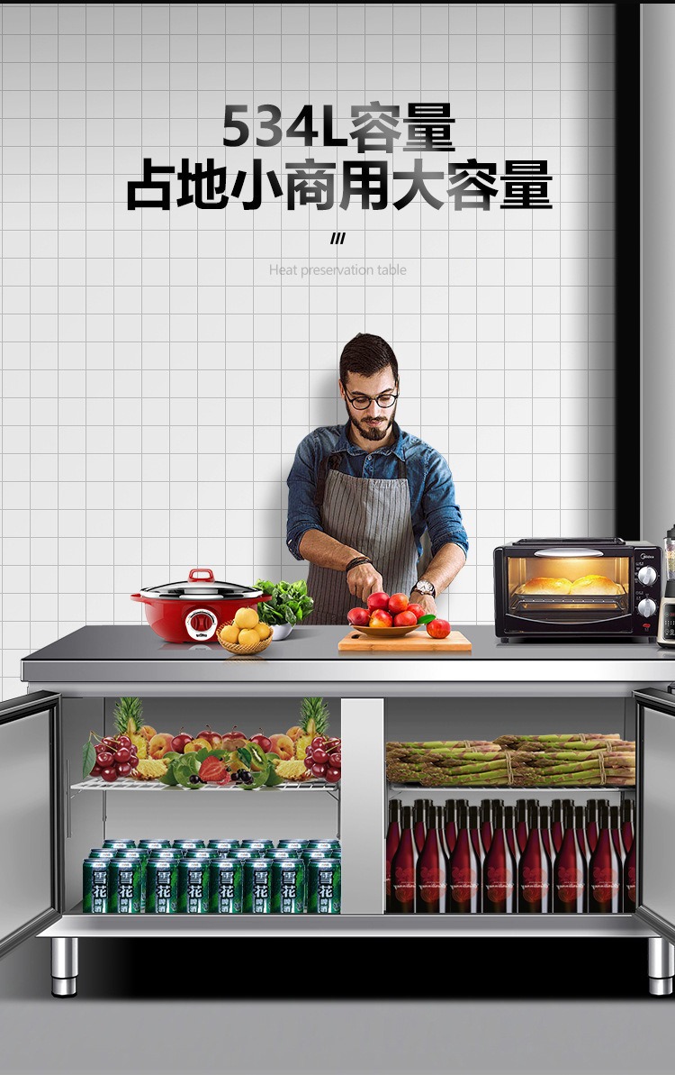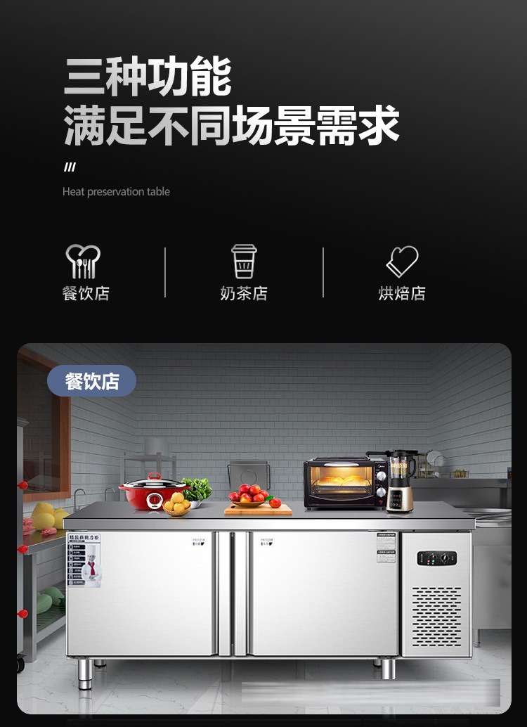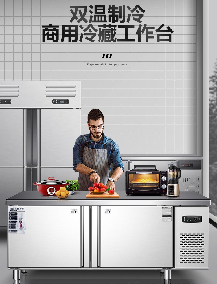 냉장 작업대, 밀크티 가게 장비, 수평 냉장고, 주방 평면 냉장 작업대, 스테인레스 스틸 상업용 냉동고
