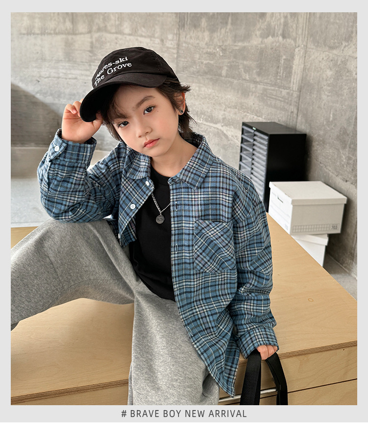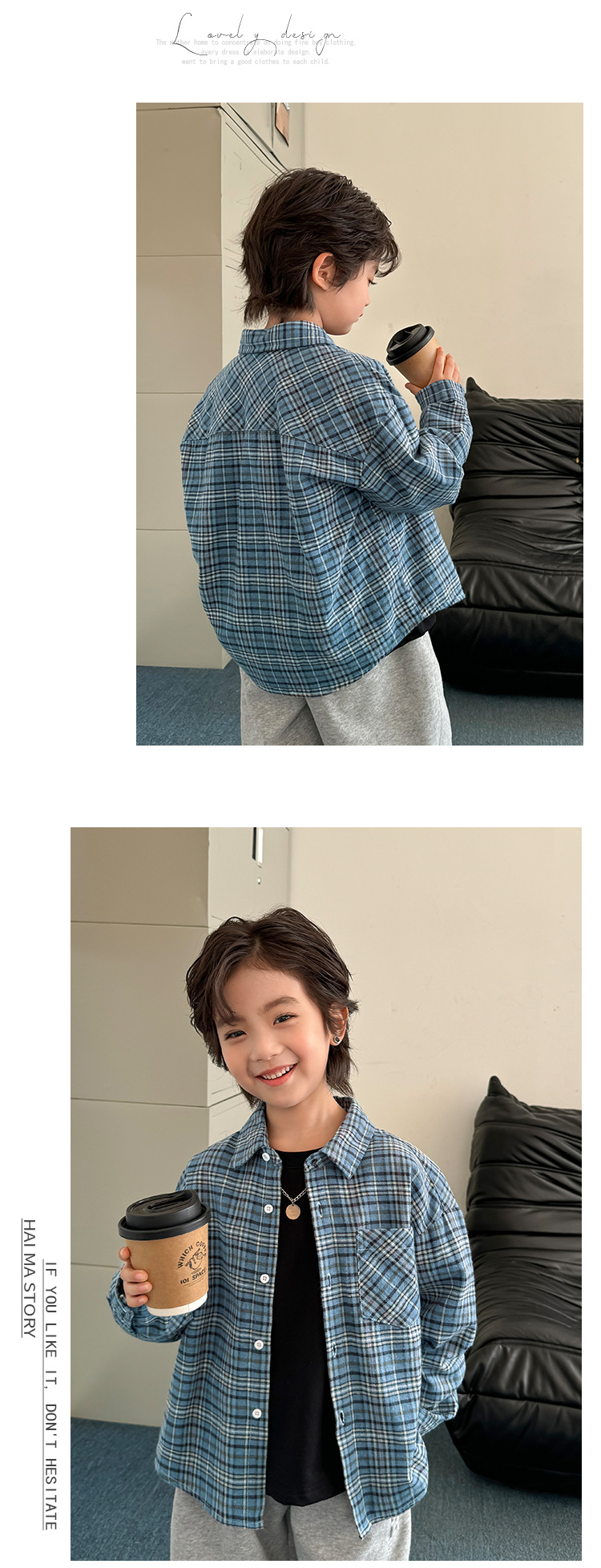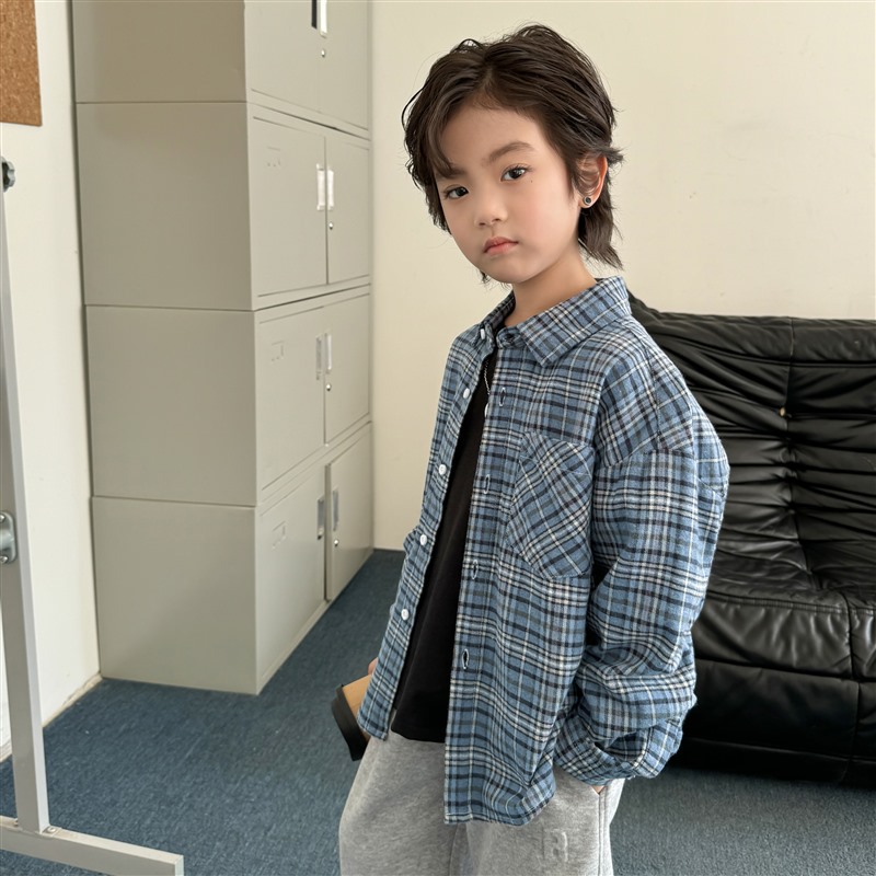 Haima의 2025 봄, 가을 새 소년 한국 스타일 가을 격자 무늬 셔츠 순수 면화 아동 의류 캐주얼 중대형 어린이스토어 가기