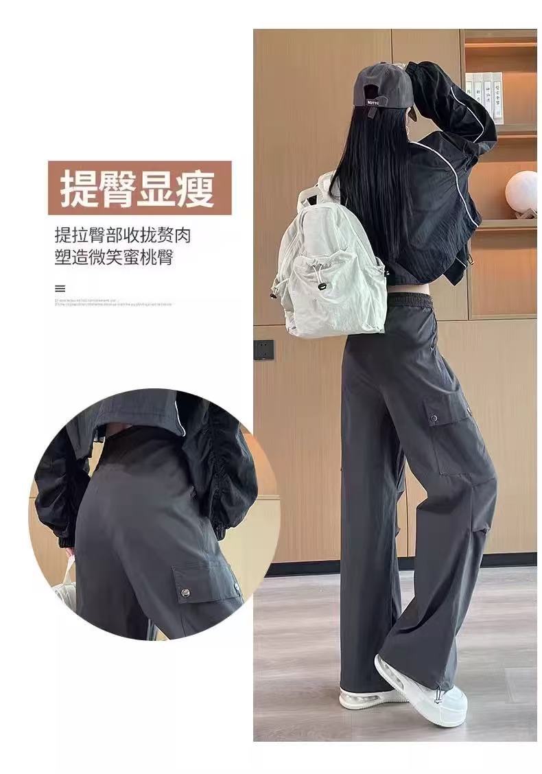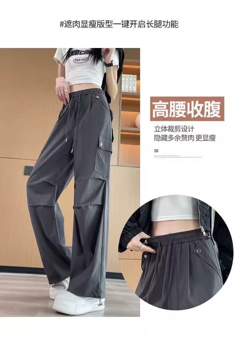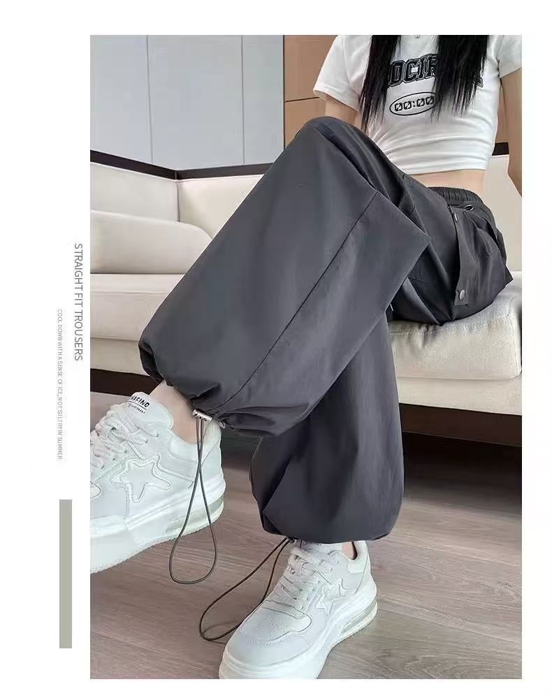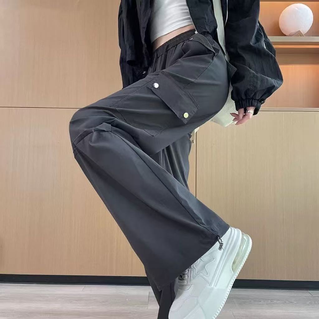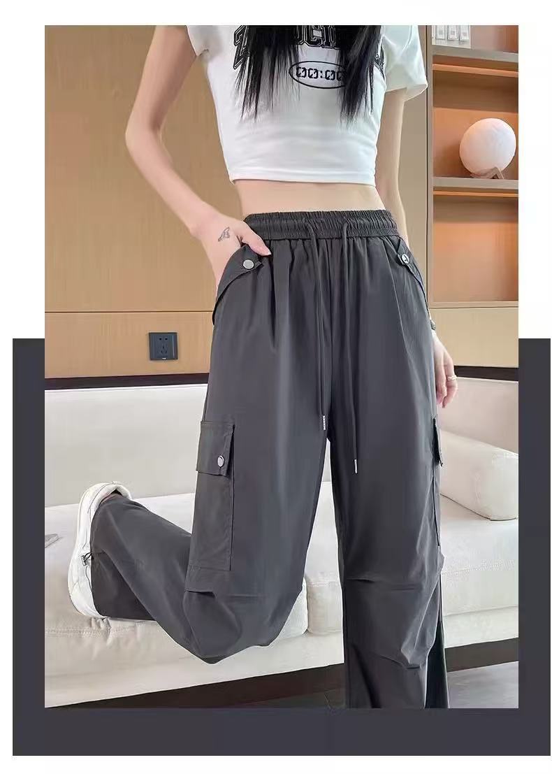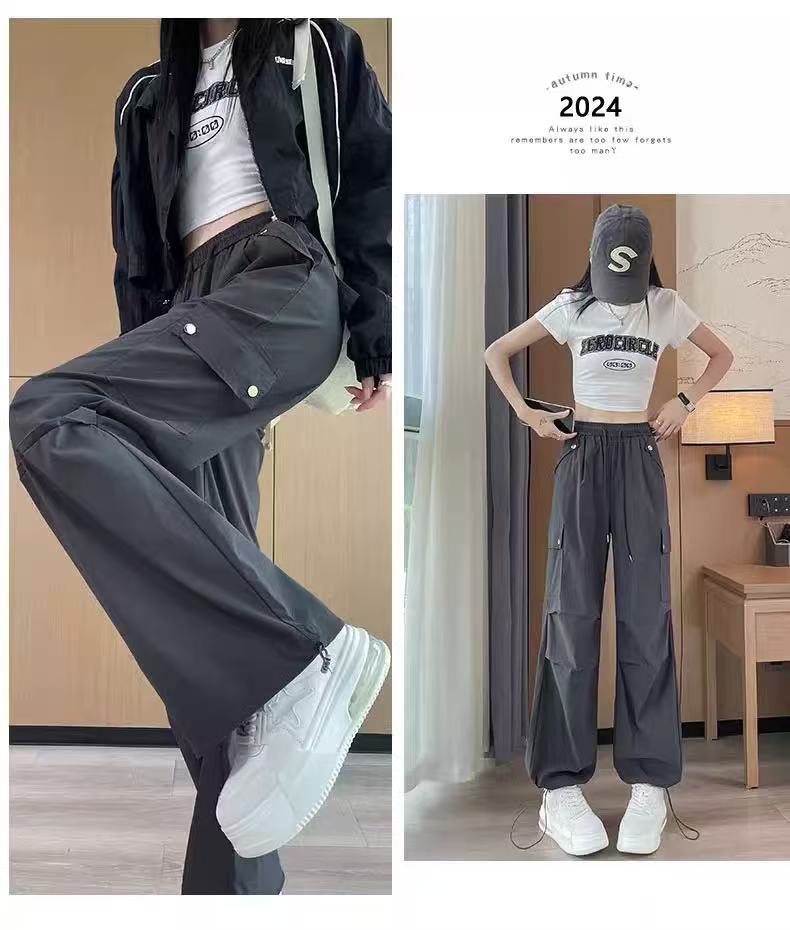 미국 스타일 작업복 여성용 2025 여름 쿨하고 세련된 루즈핏 봄 여름 회색 등산용 스트레이트 와이드 팬츠 캐주얼스토어 가기