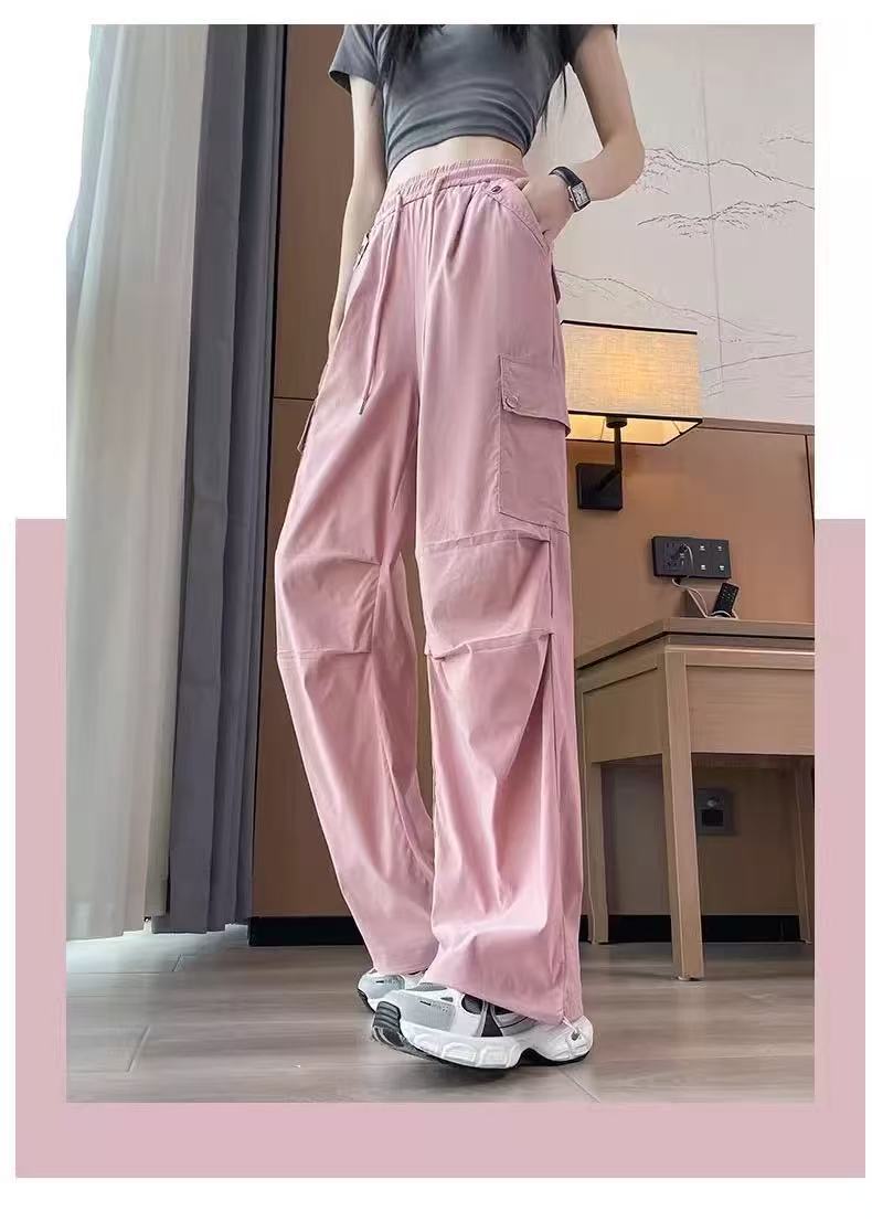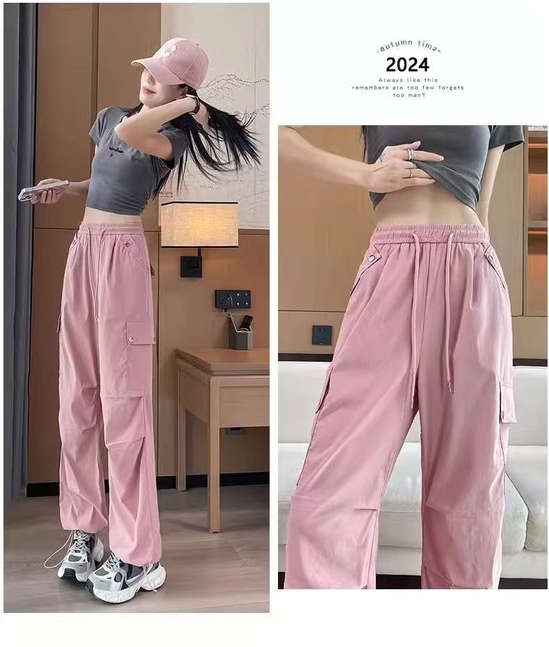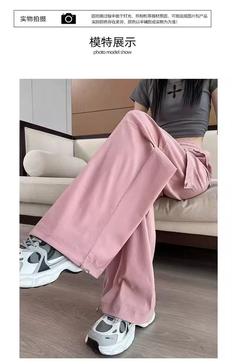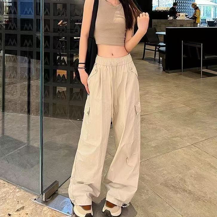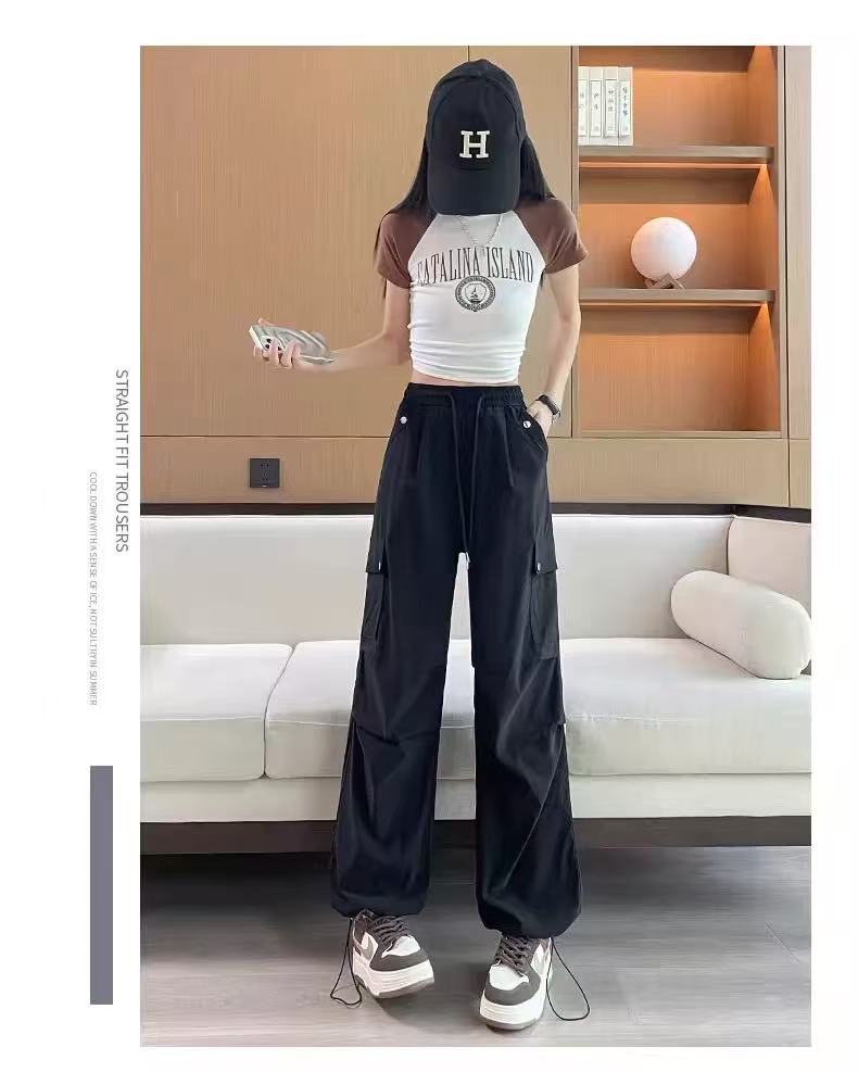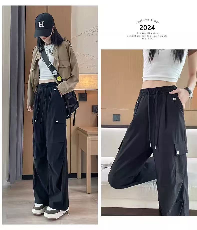 미국 스타일 작업복 여성용 2025 여름 쿨하고 세련된 루즈핏 봄 여름 회색 등산용 스트레이트 와이드 팬츠 캐주얼스토어 가기