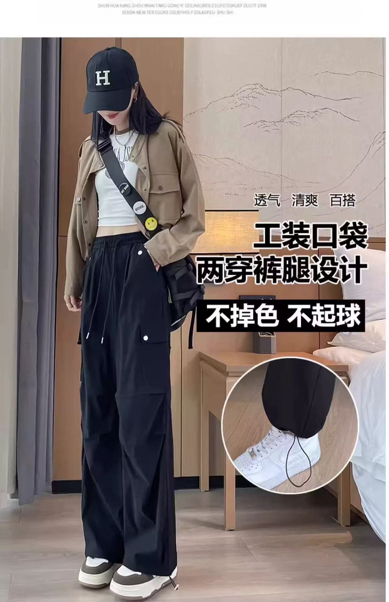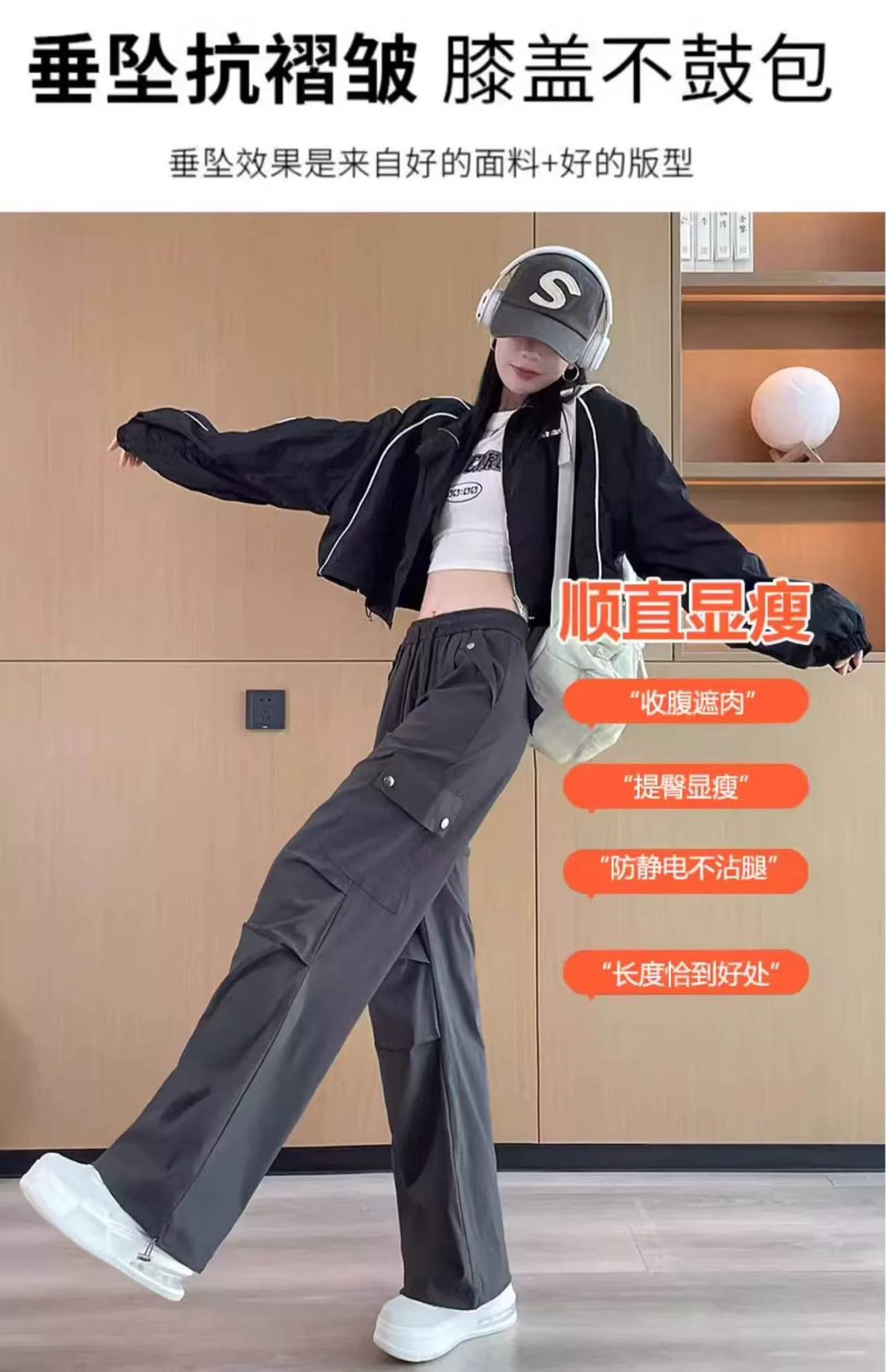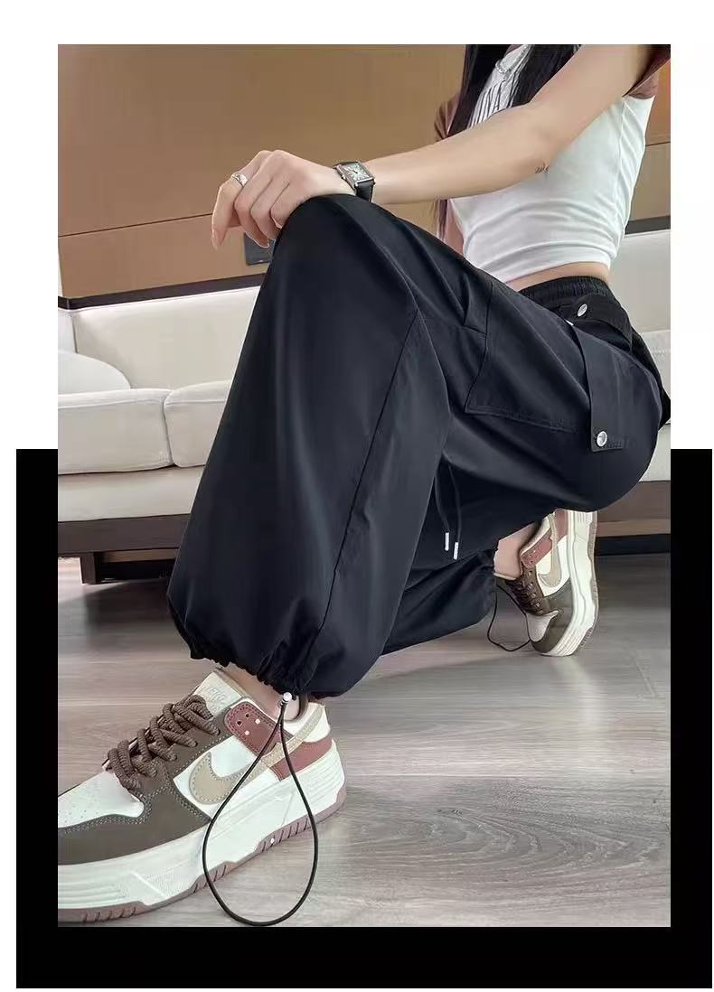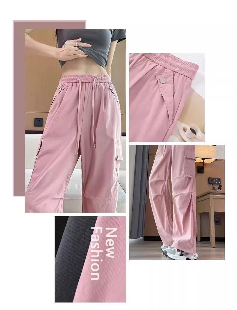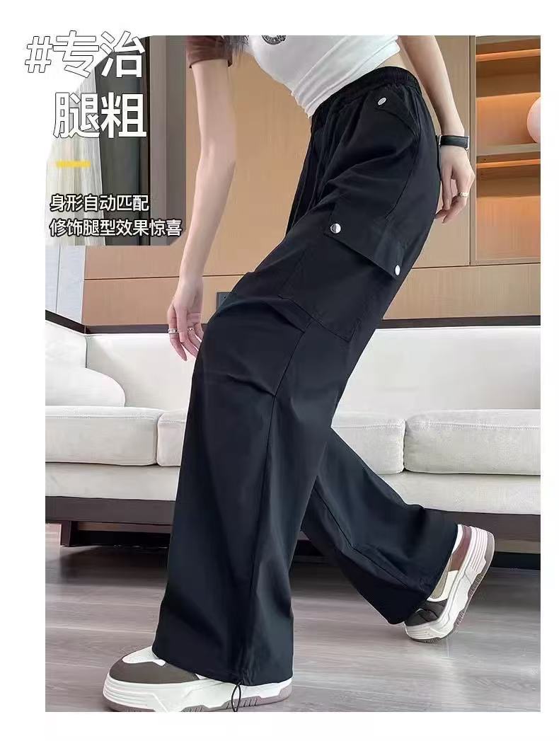 미국 스타일 작업복 여성용 2025 여름 쿨하고 세련된 루즈핏 봄 여름 회색 등산용 스트레이트 와이드 팬츠 캐주얼스토어 가기
