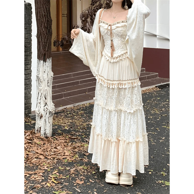• 구름과 안개가 숨은 바다코트+멜빵+스커트 쓰리피스수트