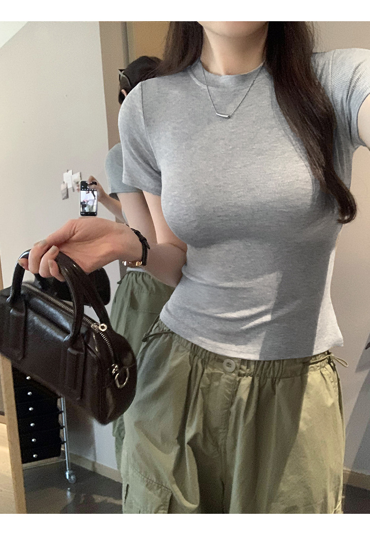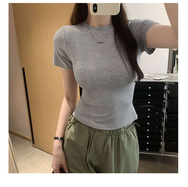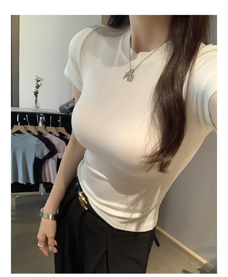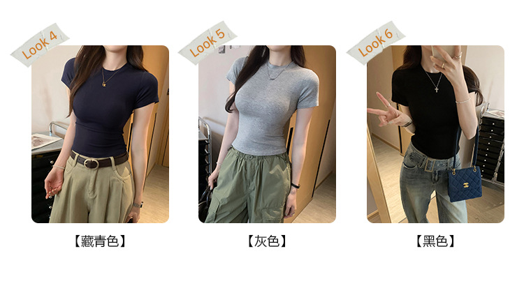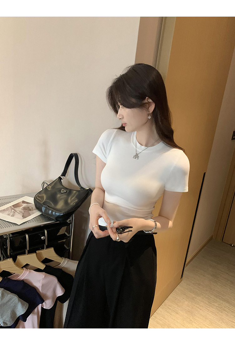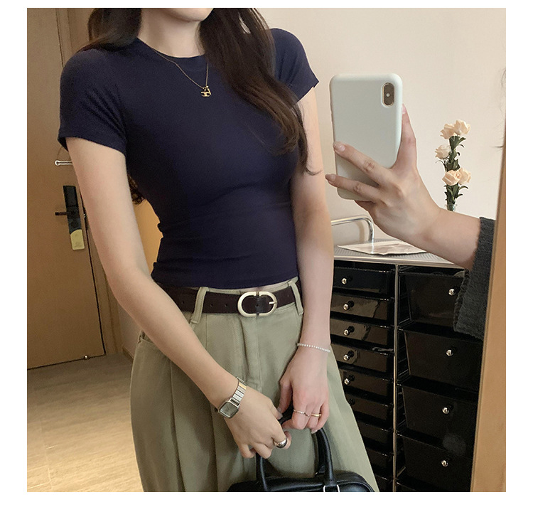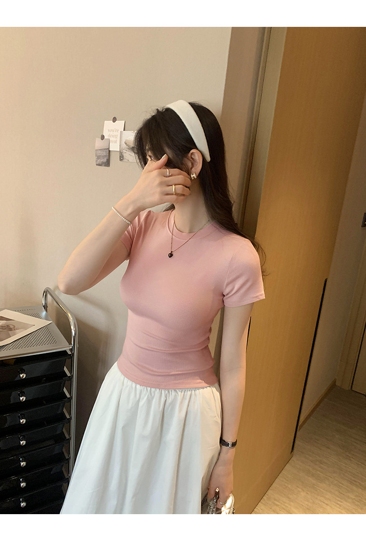 모달 슬림 룩 라운드 넥 솔리드 컬러 숄더 반팔 티셔츠 여성용 2025 년 여름 새로운 퓨어 스파이스 걸스 슬림 핏 탑스토어 가기