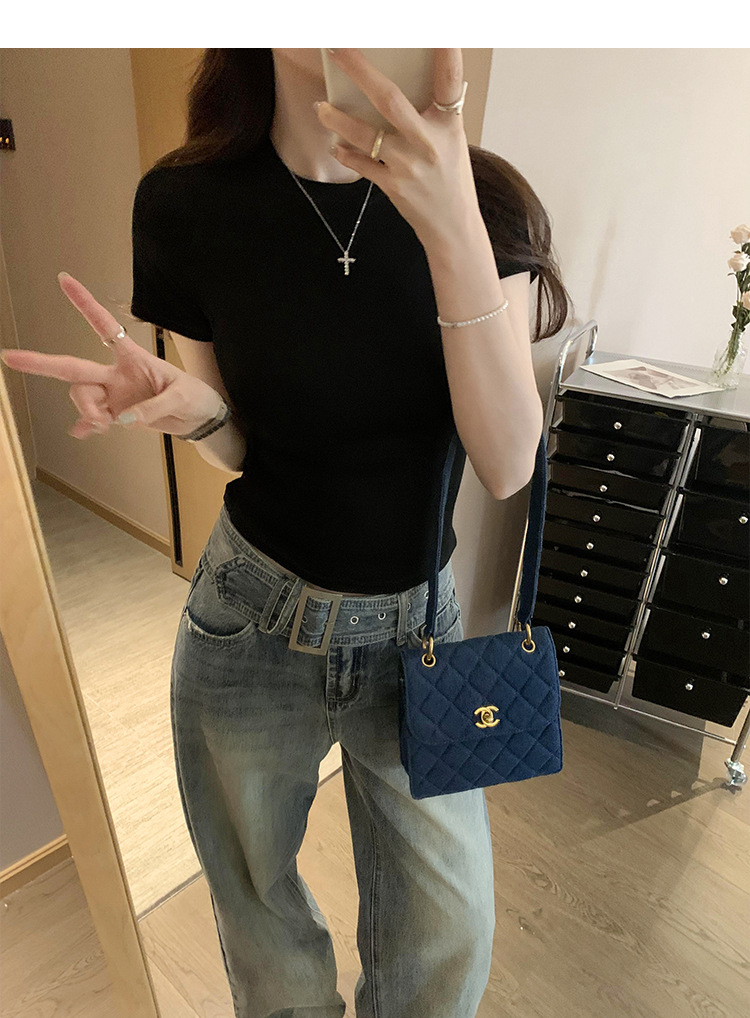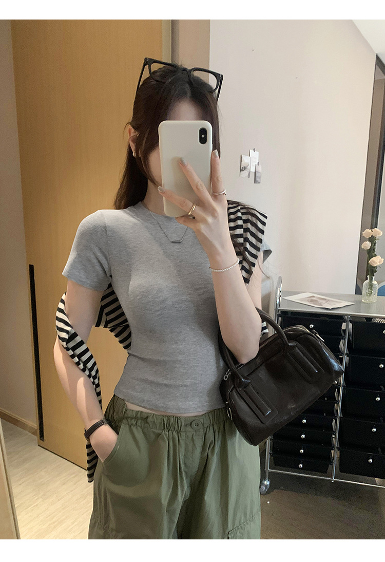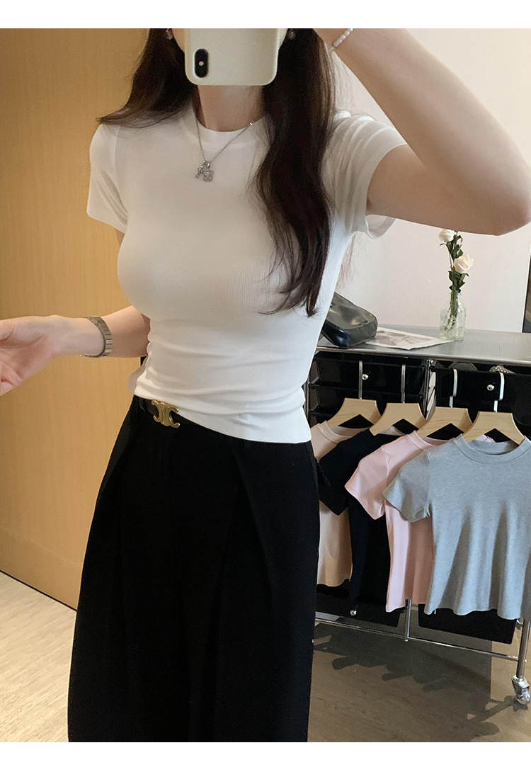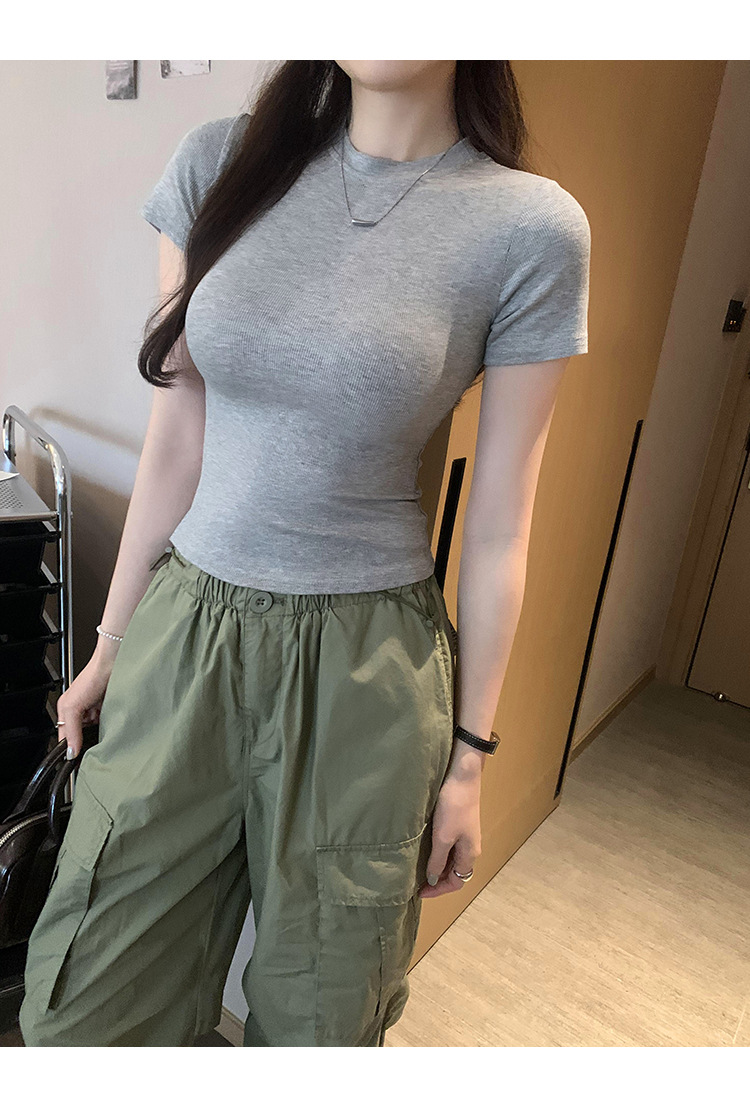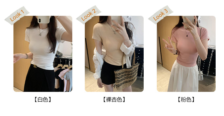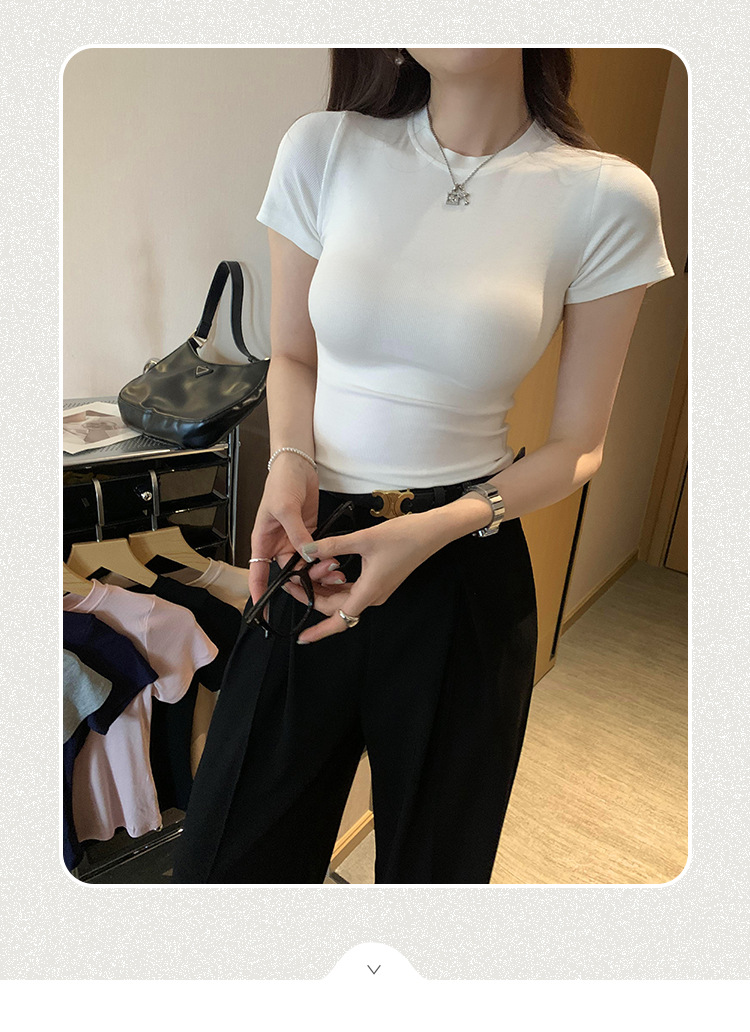 모달 슬림 룩 라운드 넥 솔리드 컬러 숄더 반팔 티셔츠 여성용 2025 년 여름 새로운 퓨어 스파이스 걸스 슬림 핏 탑스토어 가기