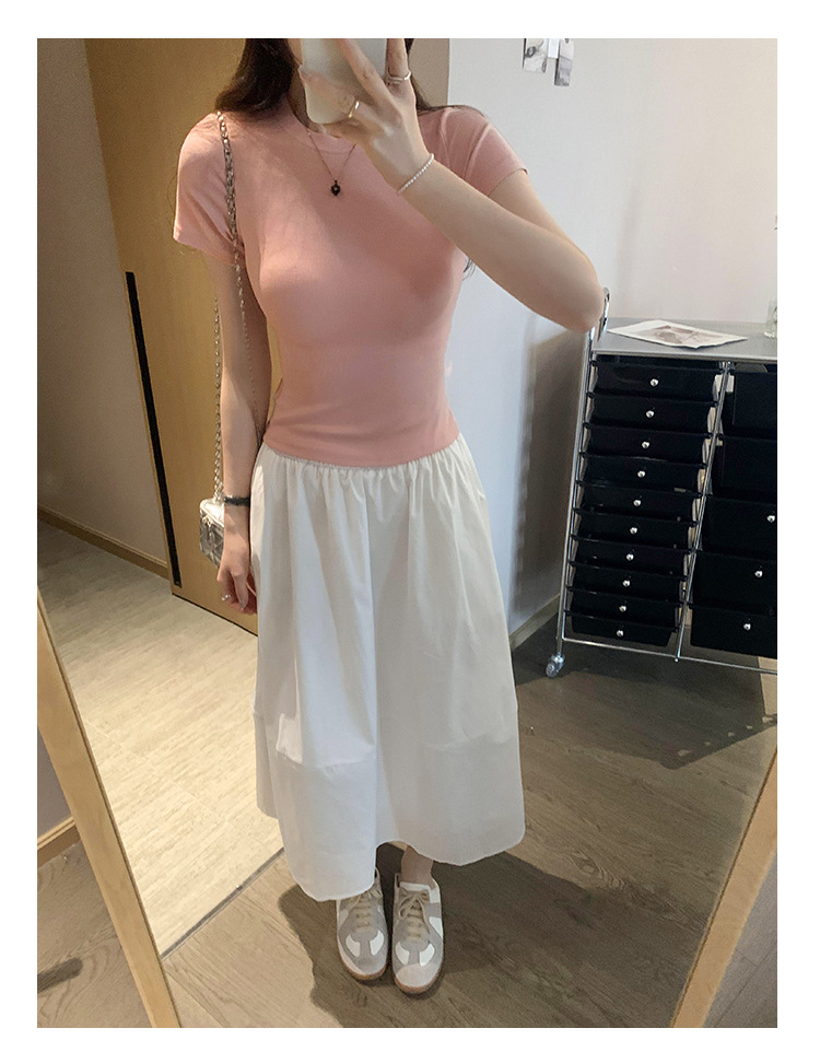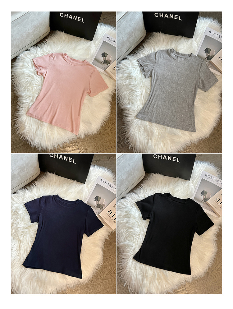 모달 슬림 룩 라운드 넥 솔리드 컬러 숄더 반팔 티셔츠 여성용 2025 년 여름 새로운 퓨어 스파이스 걸스 슬림 핏 탑